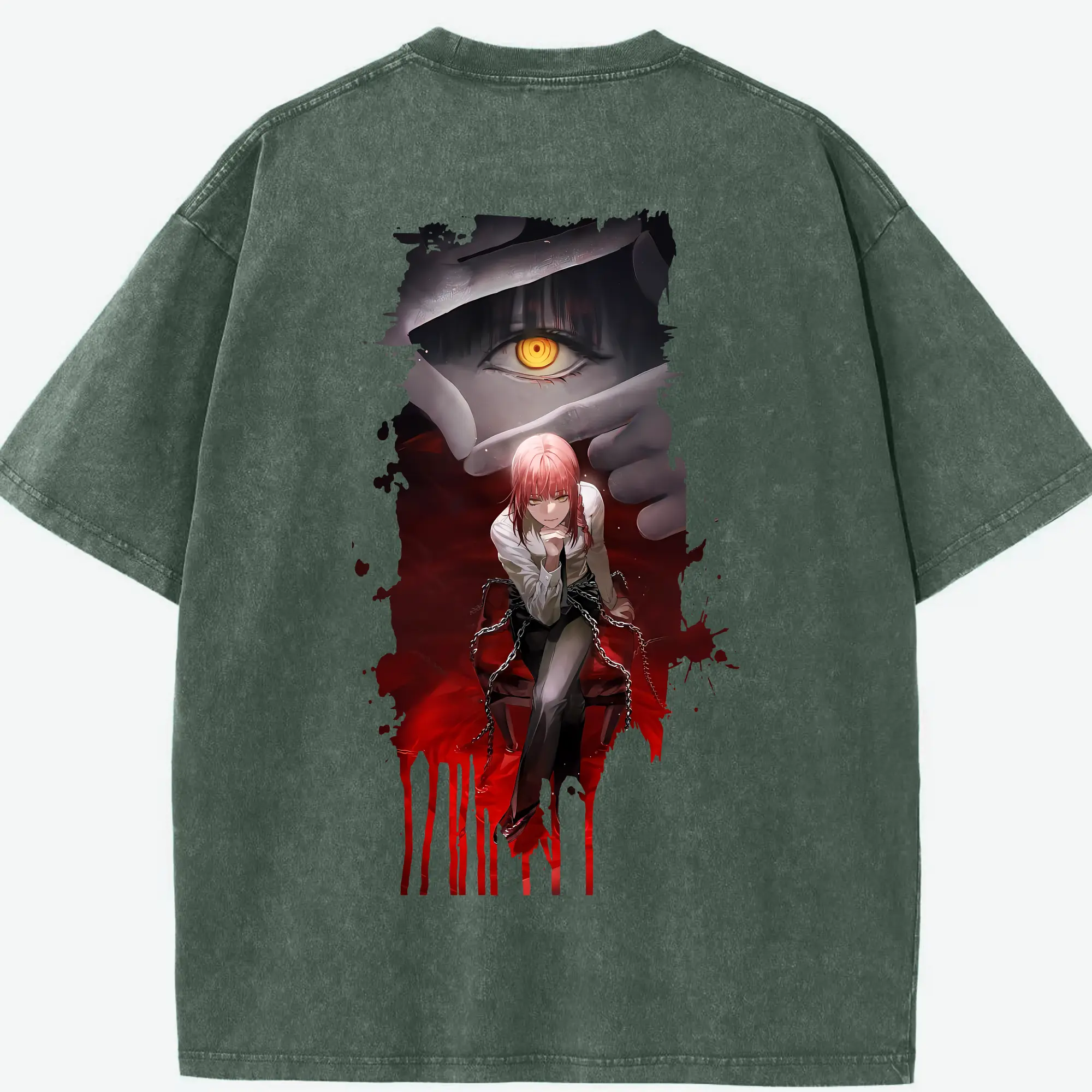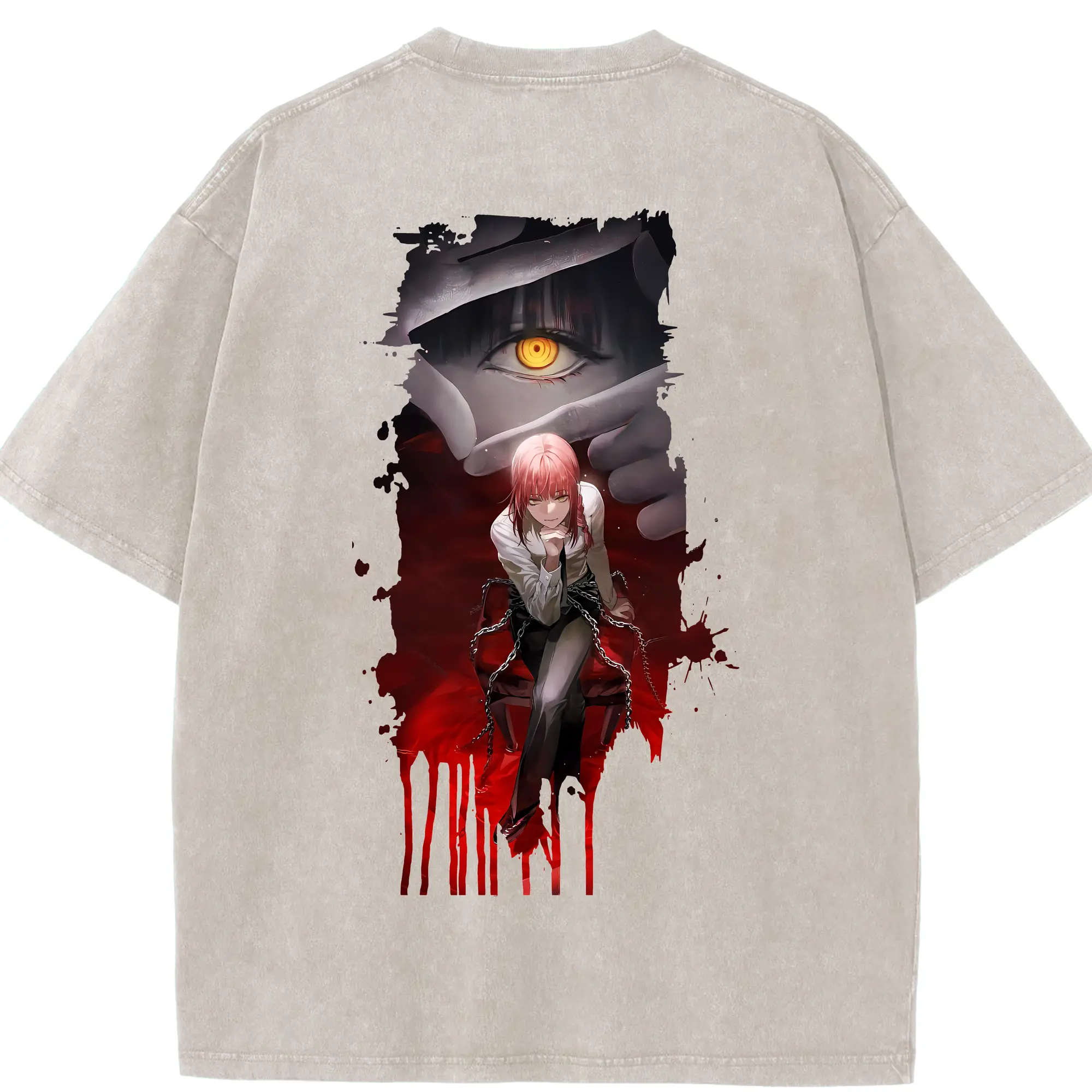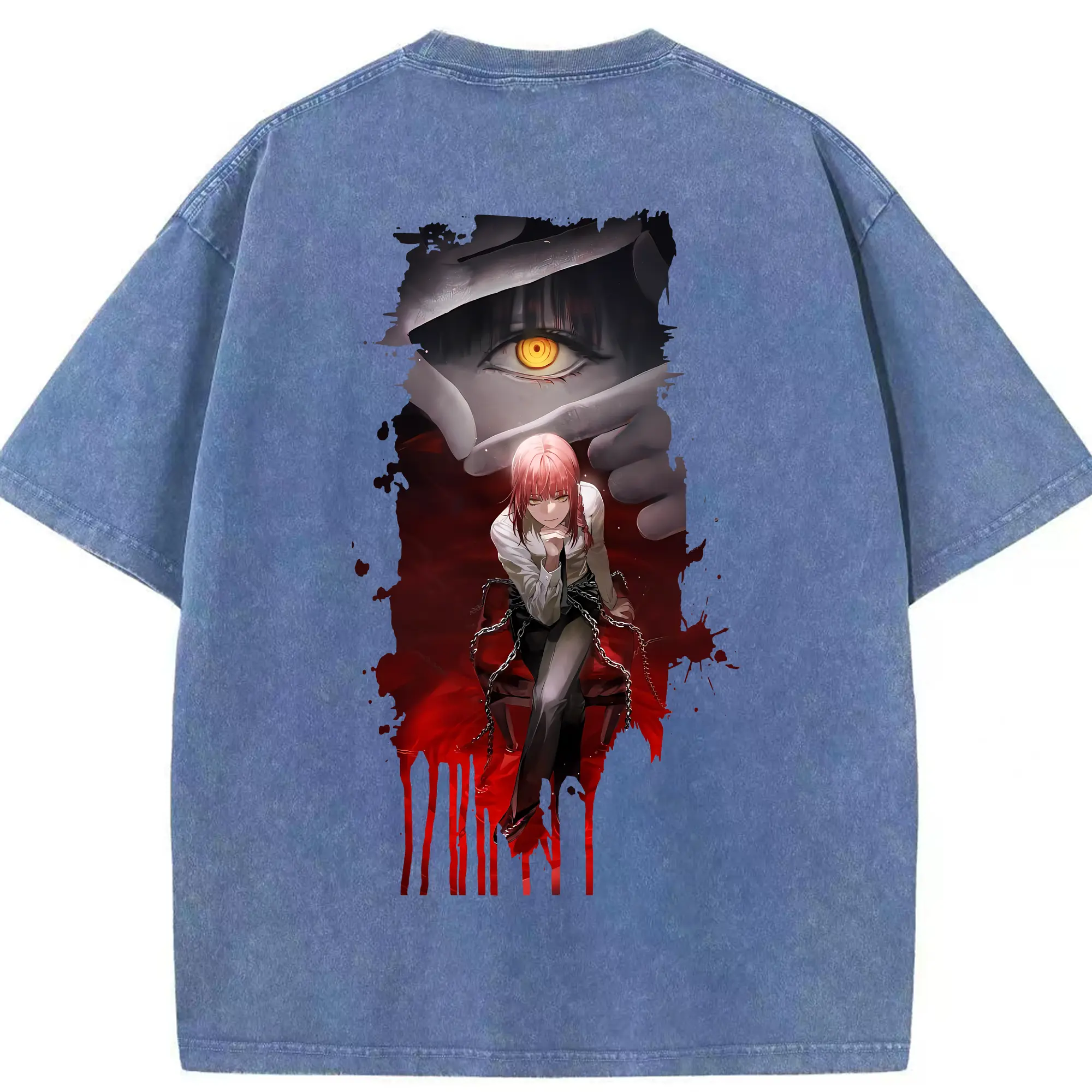 チェンソーマン グッズ,マキマ - 綿100% ヴィンテージ風 半袖Tシャツ ・ フロントプリント ・ 柔らか肌触り ・ 通気性 快適 ・ スポーツ カジュアル 外出用