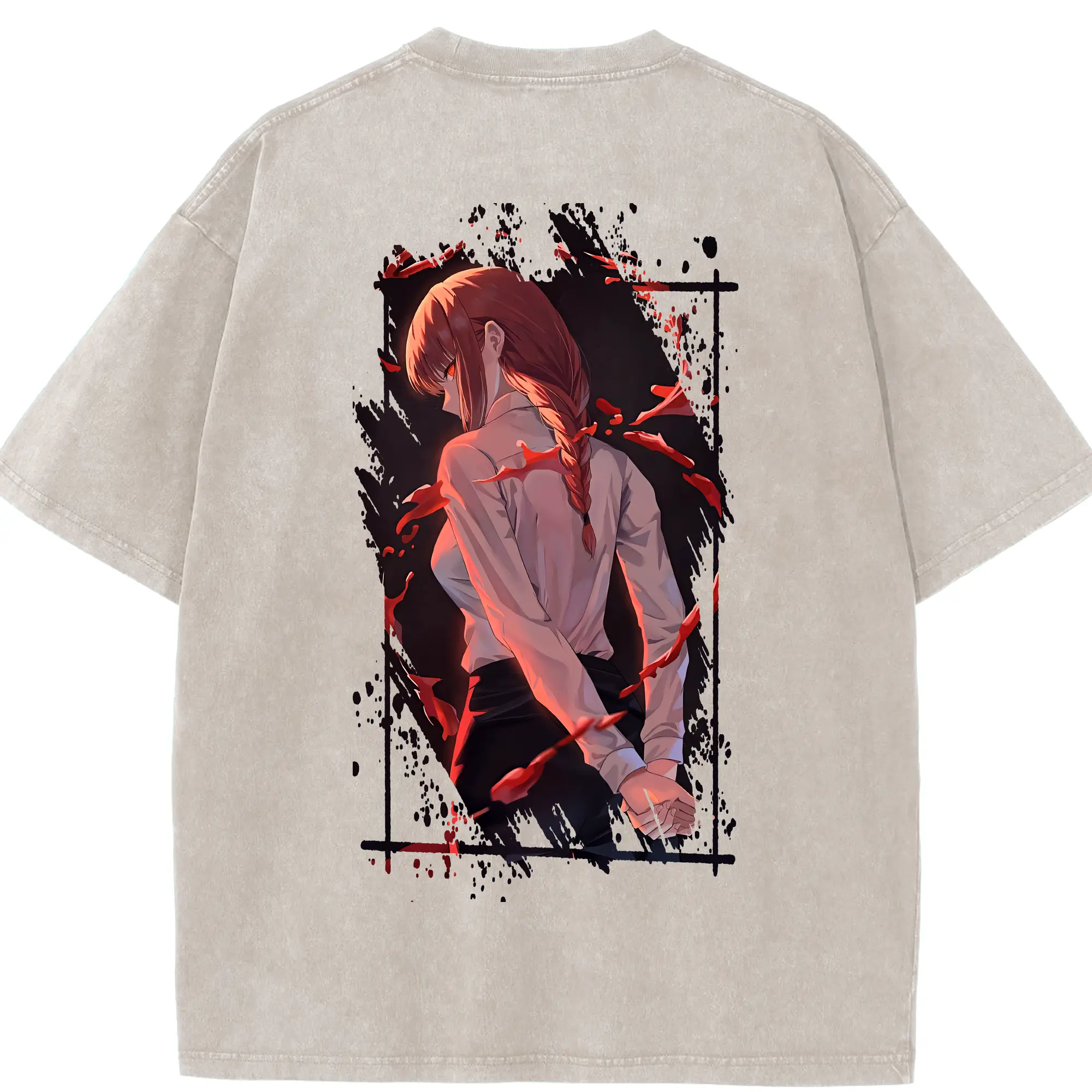 チェンソーマン グッズ,マキマ - 綿100% ヴィンテージ風 半袖Tシャツ ・ フロントプリント ・ 柔らか肌触り ・ 通気性 快適 ・ スポーツ カジュアル 外出用