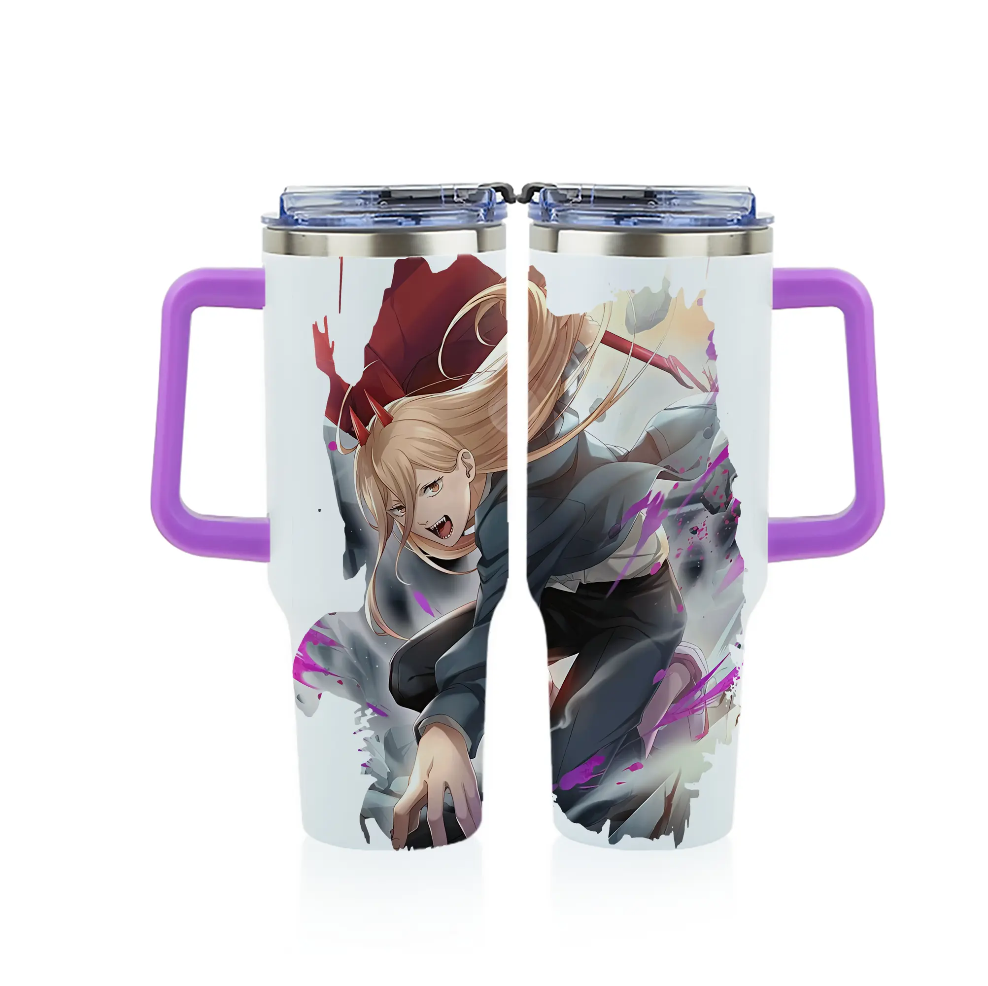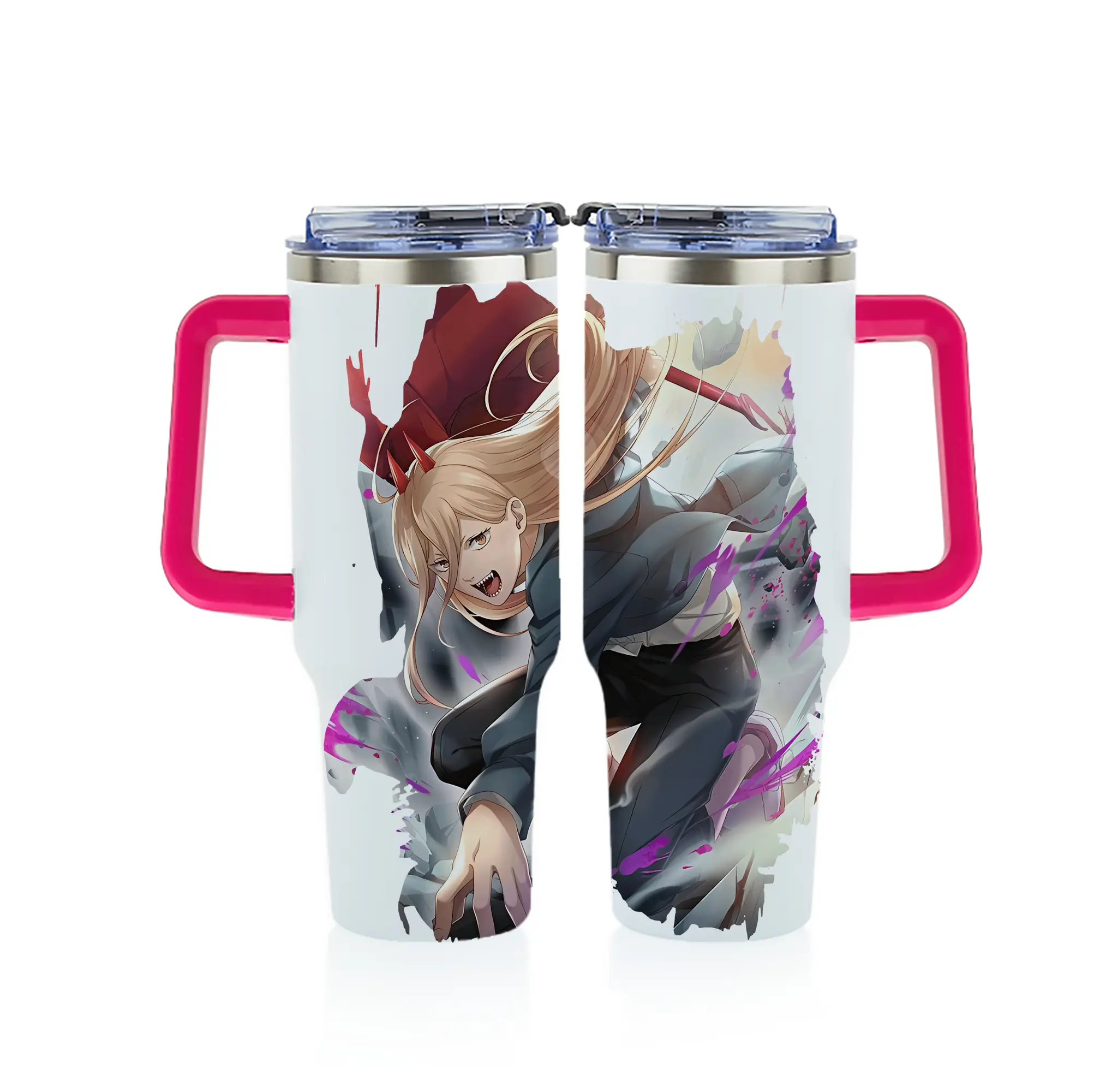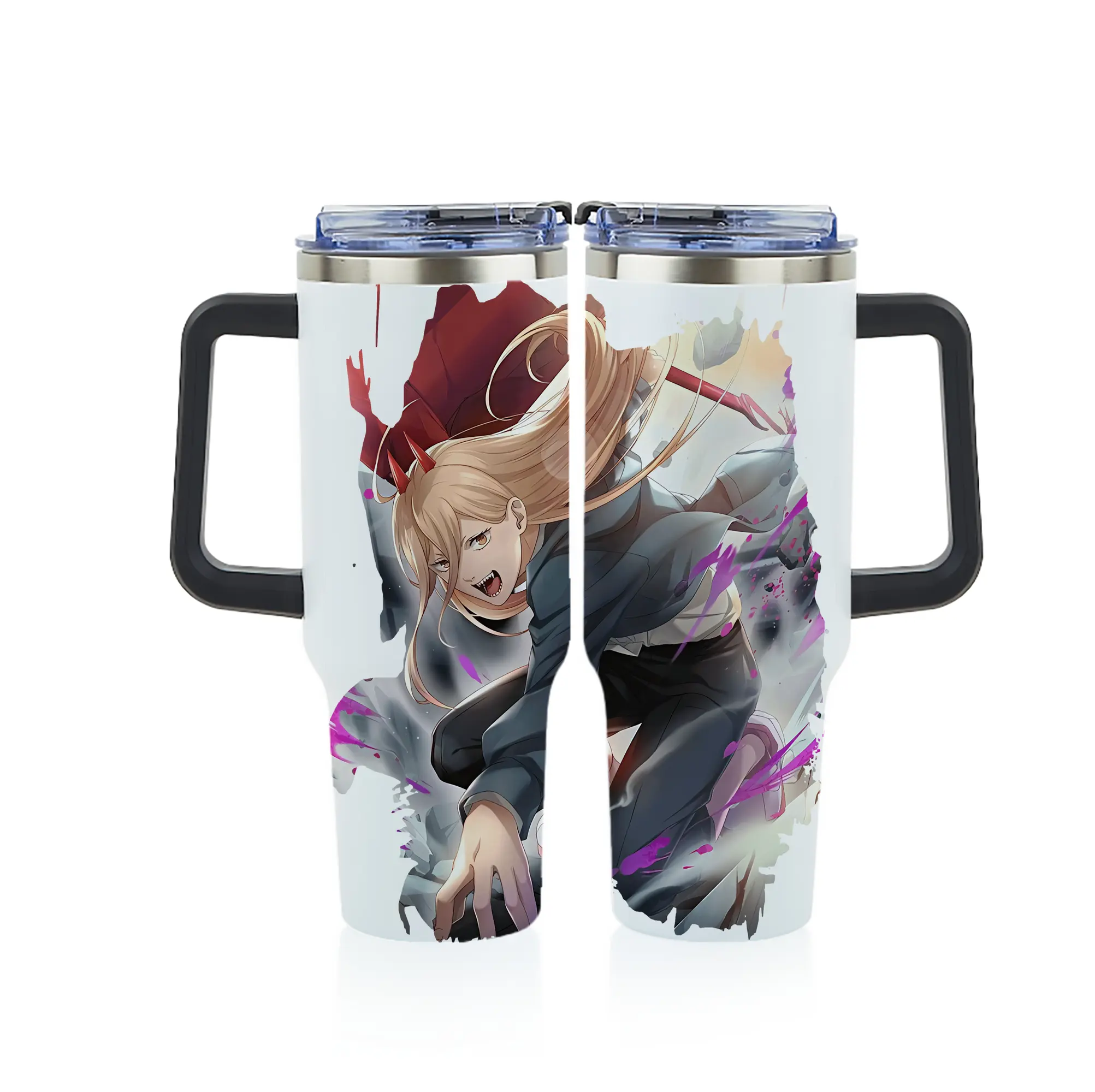 チェンソーマン グッズ,パワー - 1200mL フルプリント車用タンブラー ・ 304ステンレス 内側 ・ 201ステンレス 外側 ・ 保温 保冷 ・ 通勤 ドライブ アウトドア用