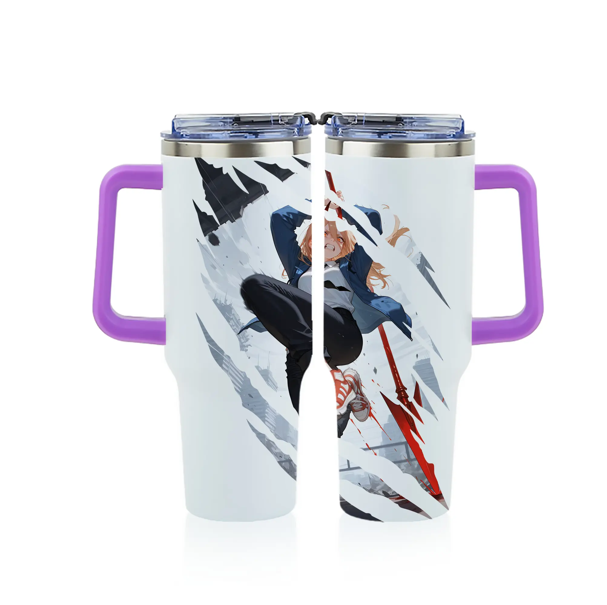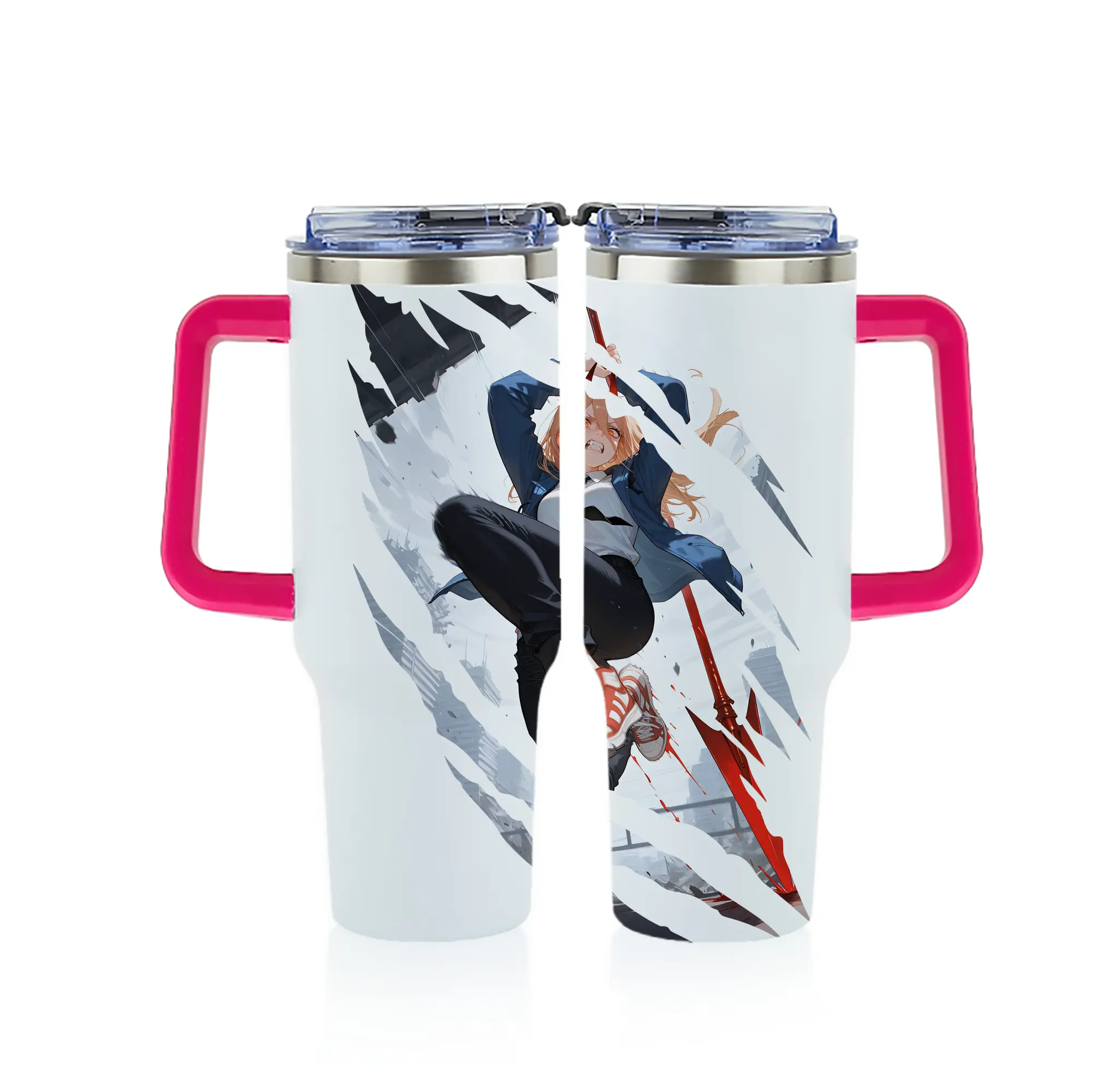 チェンソーマン グッズ,パワー - 1200mL フルプリント車用タンブラー ・ 304ステンレス 内側 ・ 201ステンレス 外側 ・ 保温 保冷 ・ 通勤 ドライブ アウトドア用