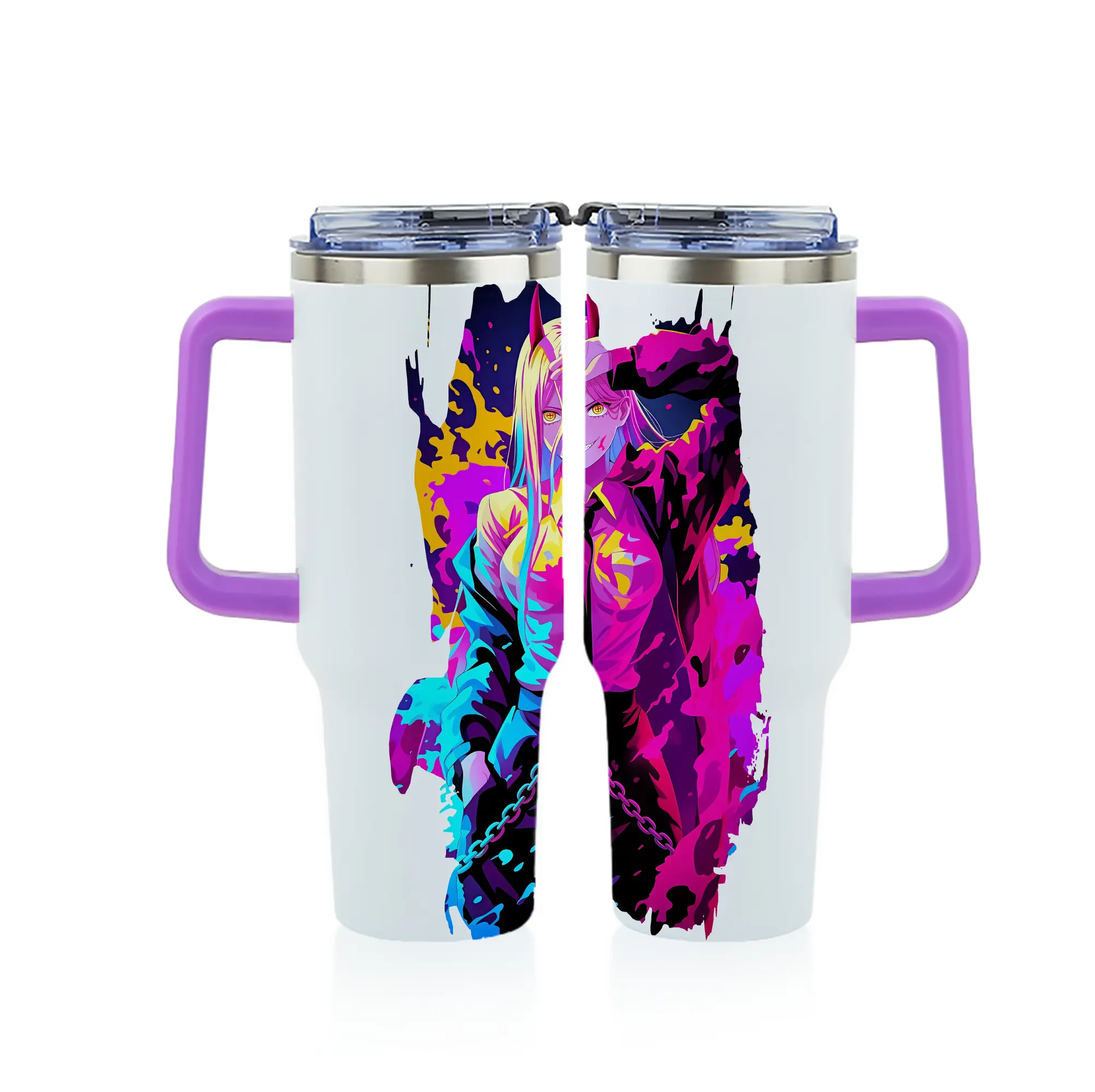 チェンソーマン グッズ,パワー - 1200mL フルプリント車用タンブラー ・ 304ステンレス 内側 ・ 201ステンレス 外側 ・ 保温 保冷 ・ 通勤 ドライブ アウトドア用