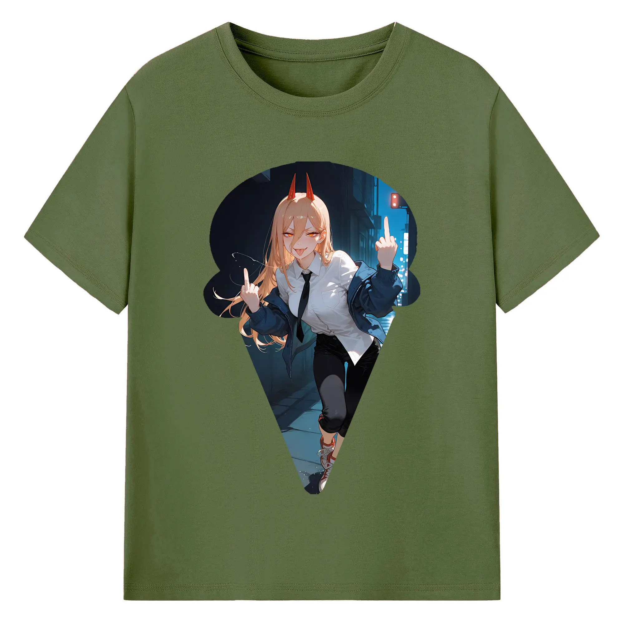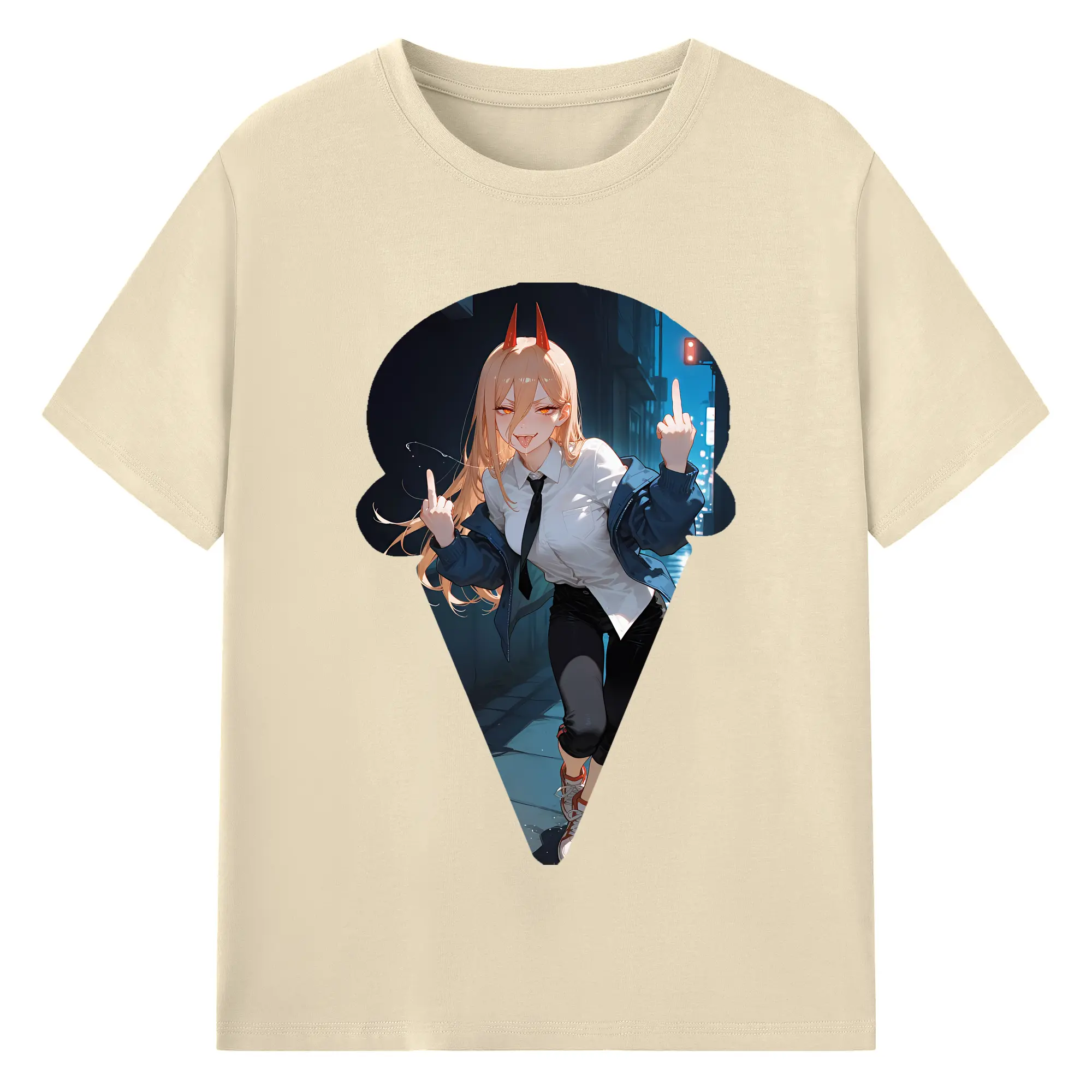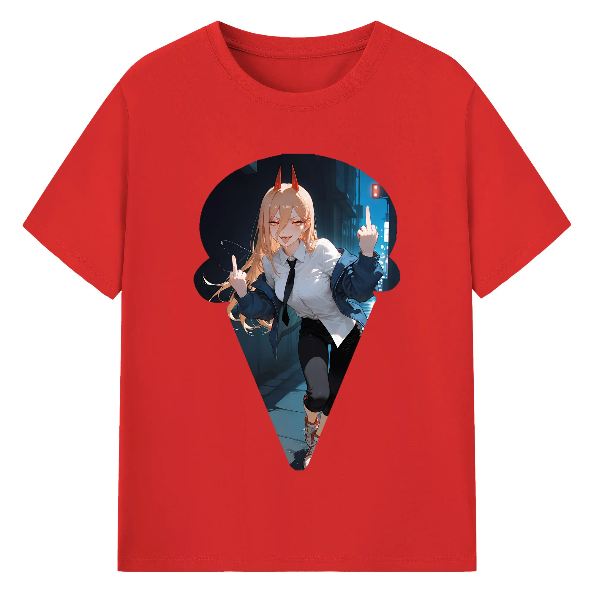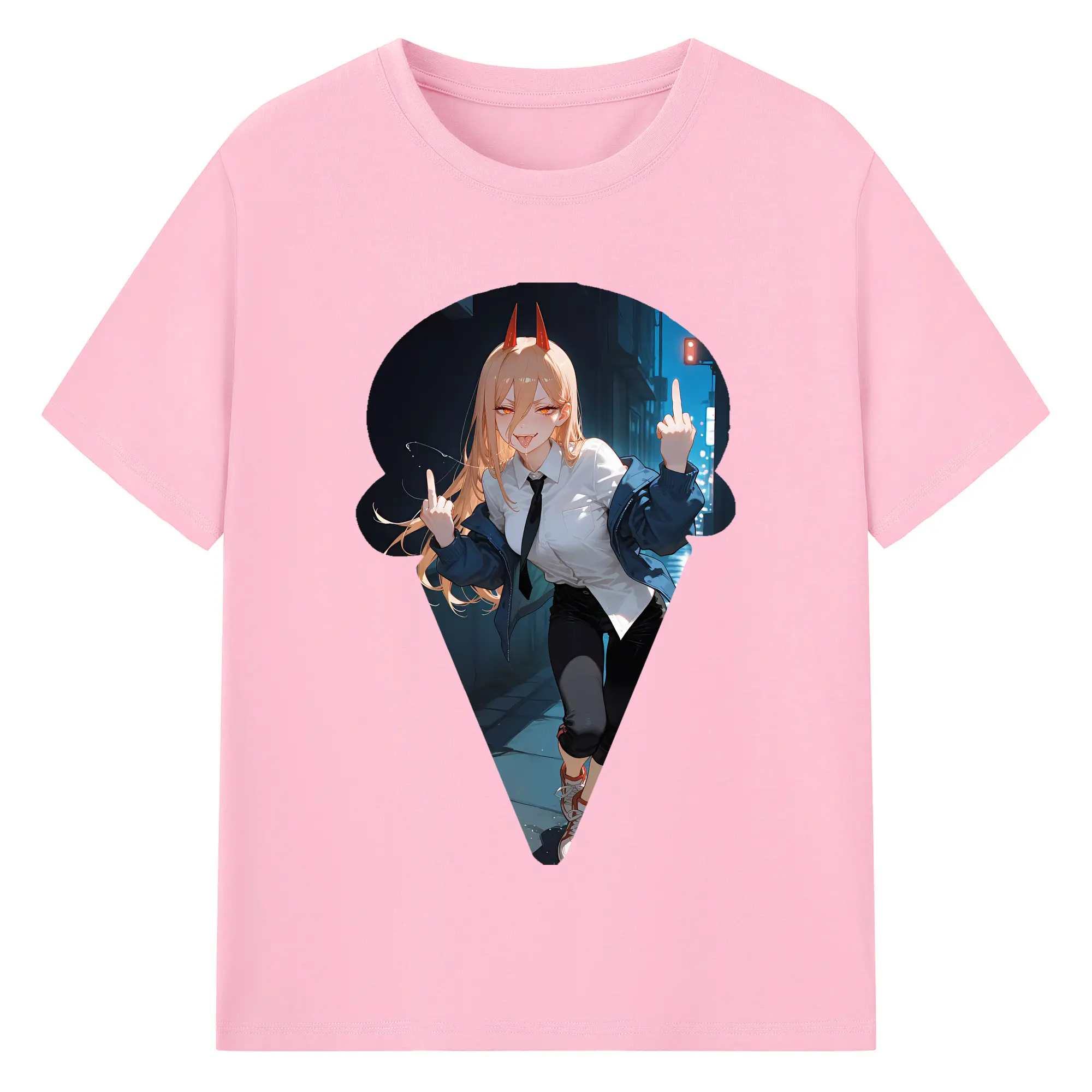 チェンソーマン グッズ,パワー - 綿100% ヴィンテージ風 半袖Tシャツ ・ フロントプリント ・ 柔らか肌触り ・ 通気性 快適 ・ スポーツ カジュアル 外出用