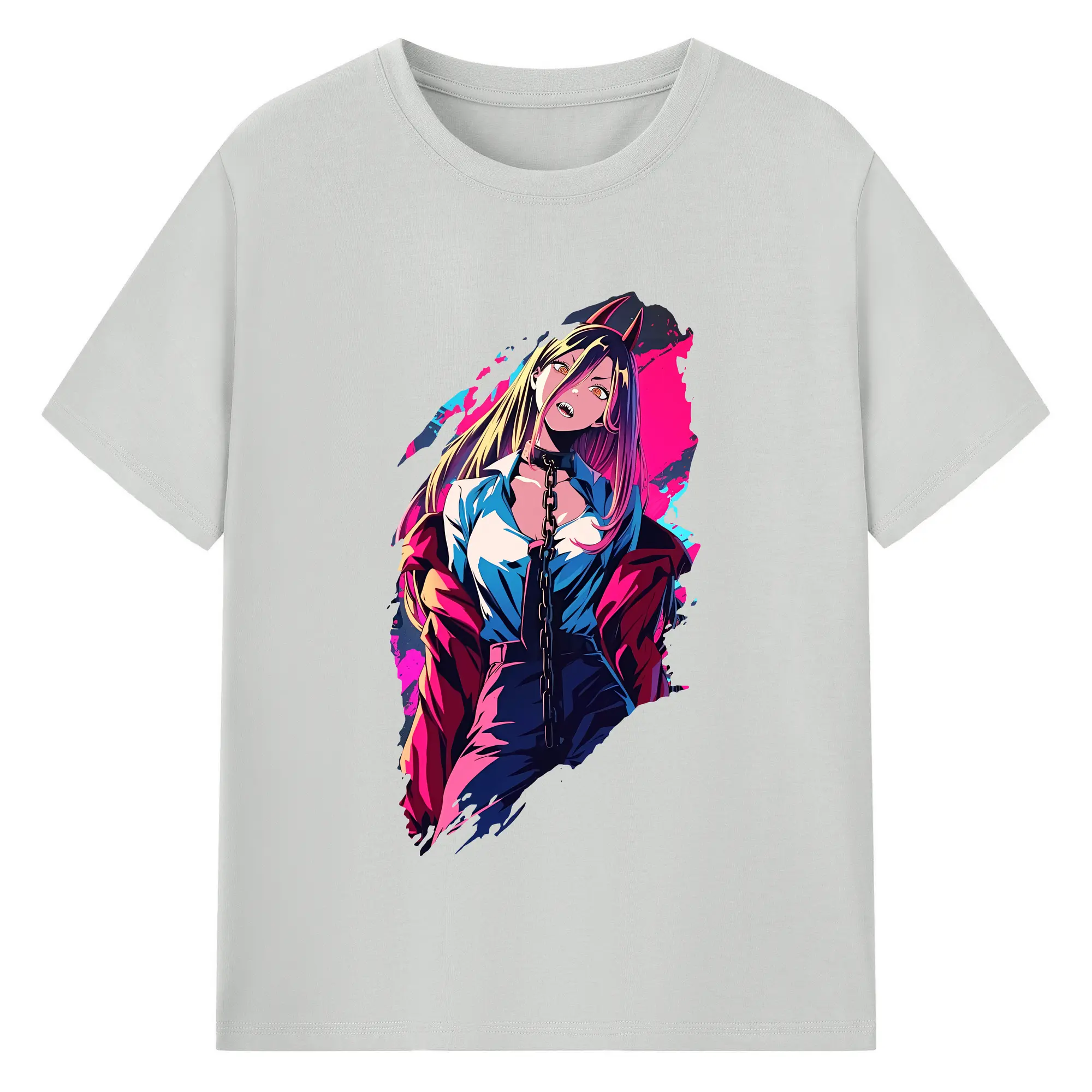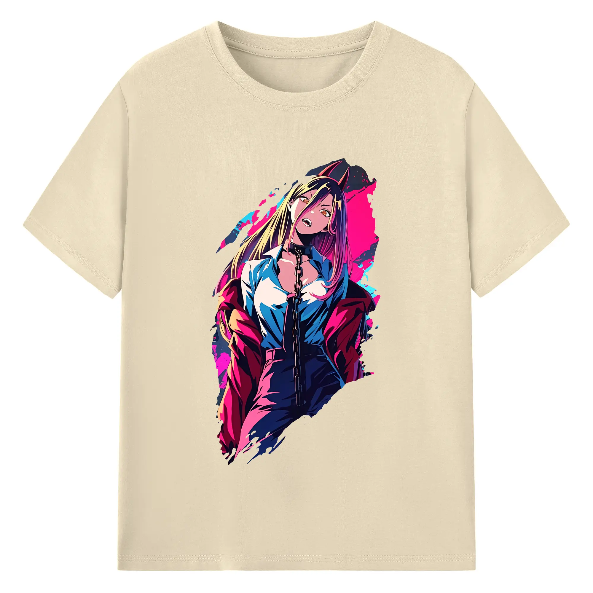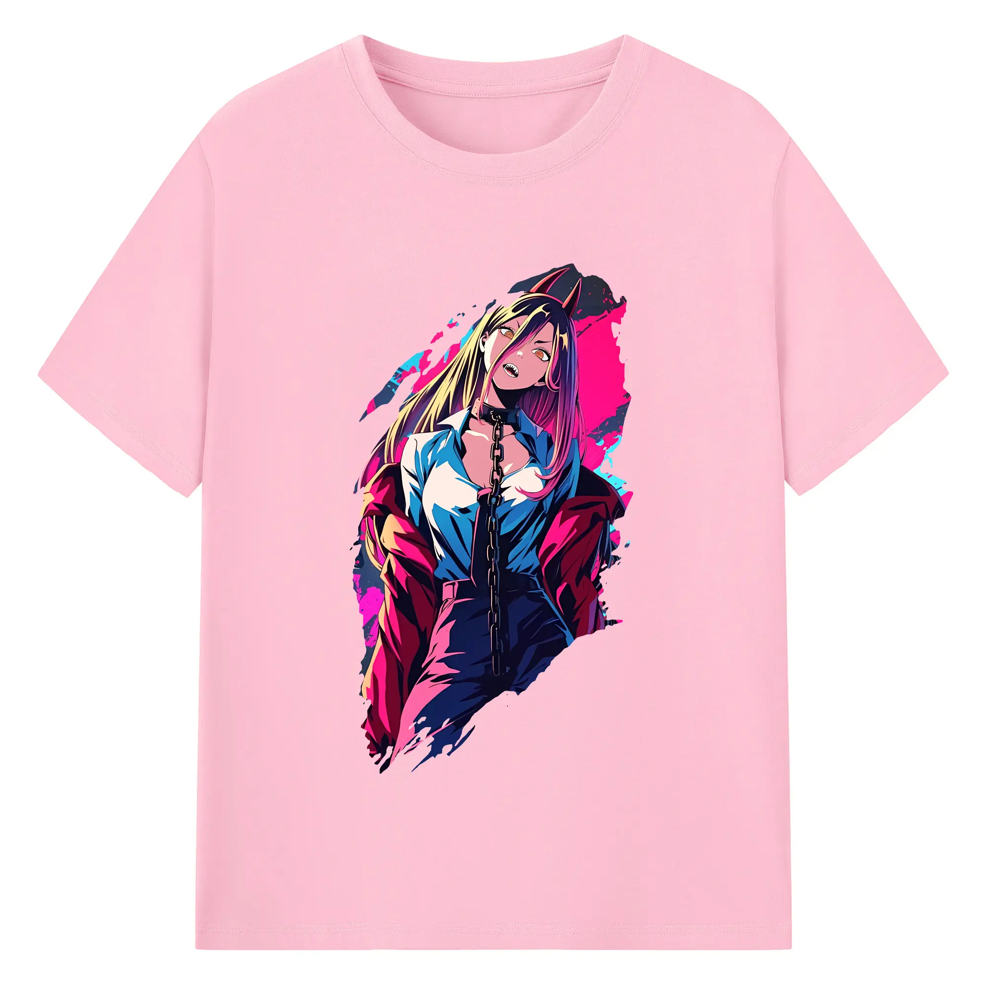 チェンソーマン グッズ,パワー - 綿100% ヴィンテージ風 半袖Tシャツ ・ フロントプリント ・ 柔らか肌触り ・ 通気性 快適 ・ スポーツ カジュアル 外出用
