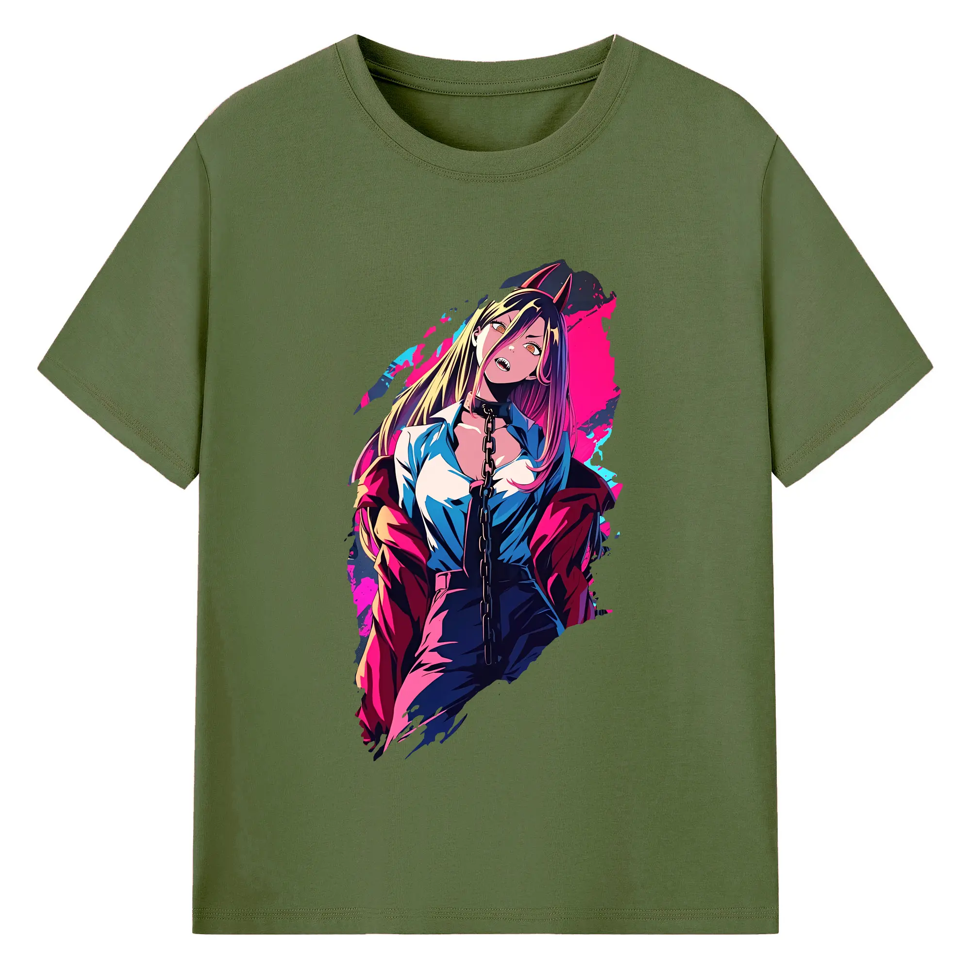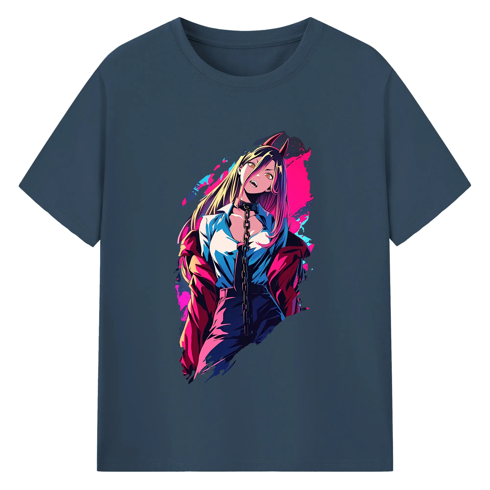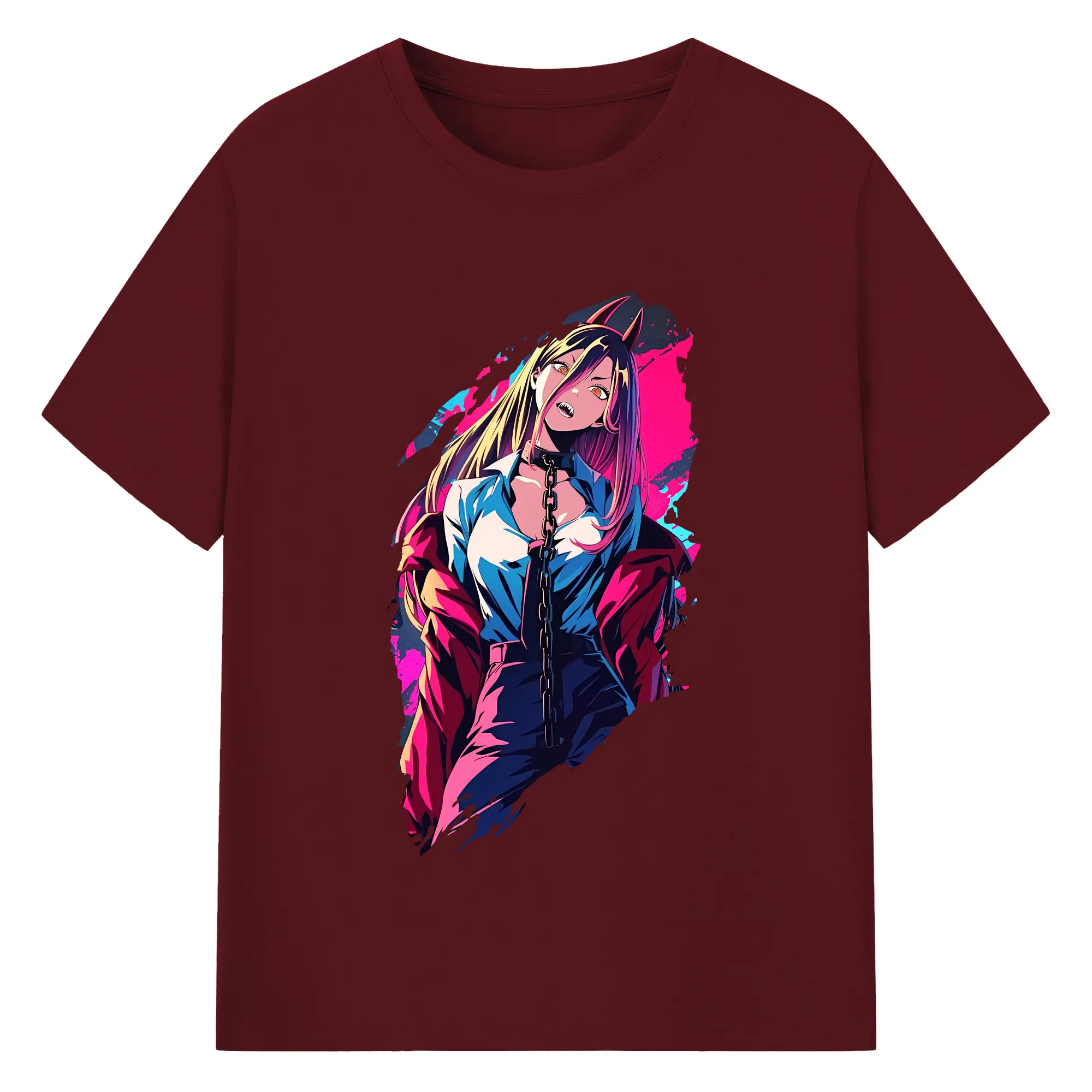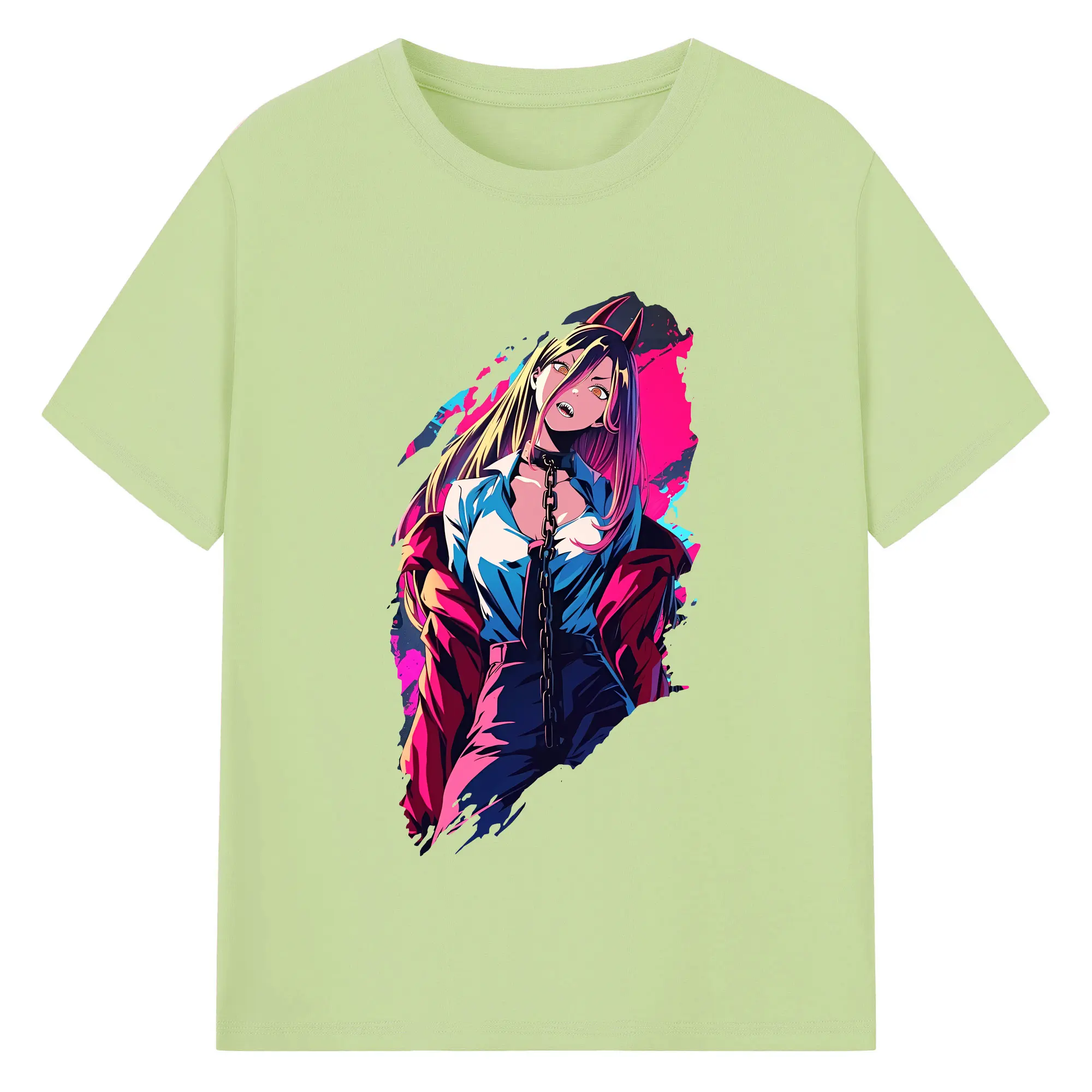 チェンソーマン グッズ,パワー - 綿100% ヴィンテージ風 半袖Tシャツ ・ フロントプリント ・ 柔らか肌触り ・ 通気性 快適 ・ スポーツ カジュアル 外出用