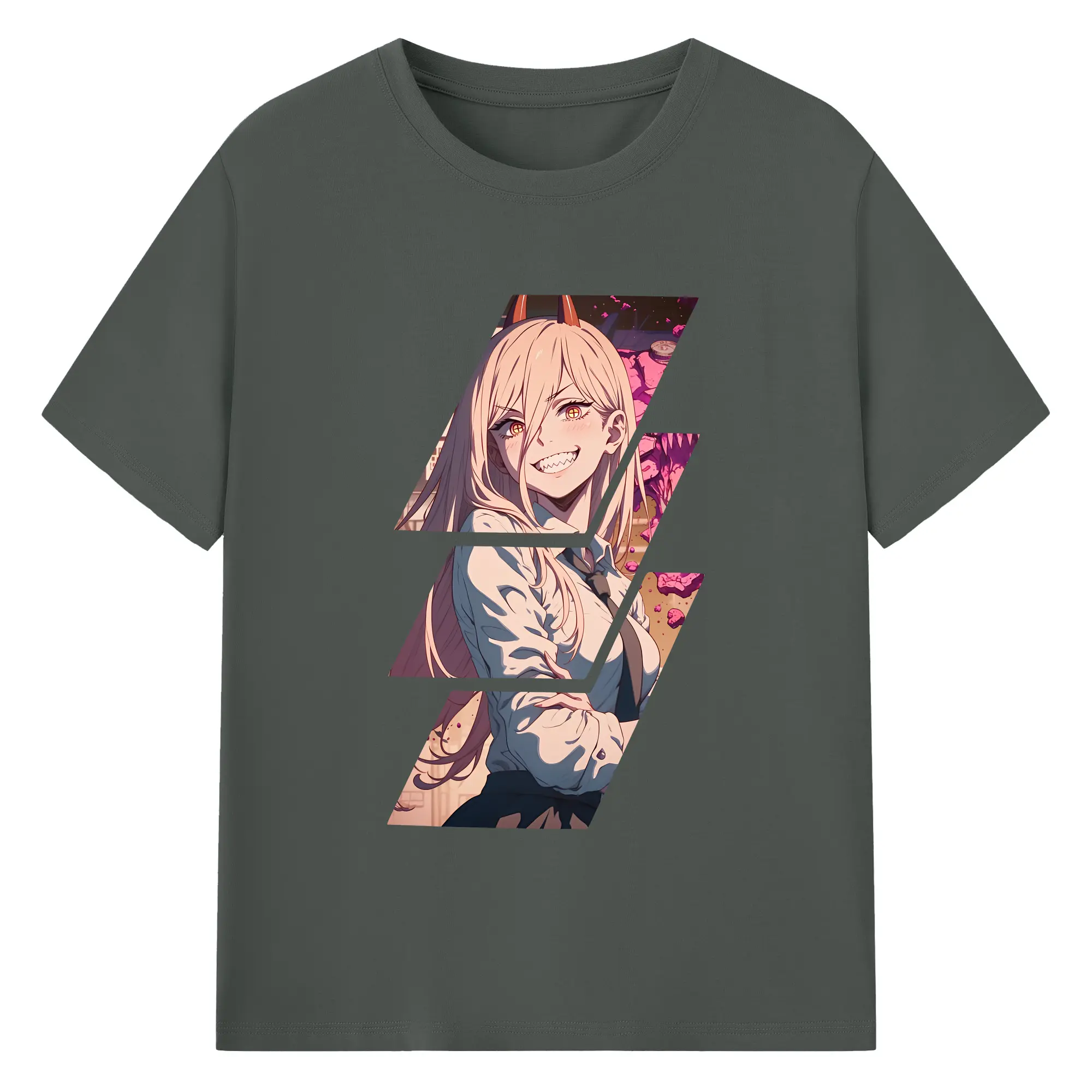 チェンソーマン グッズ,パワー - 綿100% 半袖Tシャツ ・ バックプリント ・ 快適 通気性 ・ 日常使い 散歩 スポーツ用
