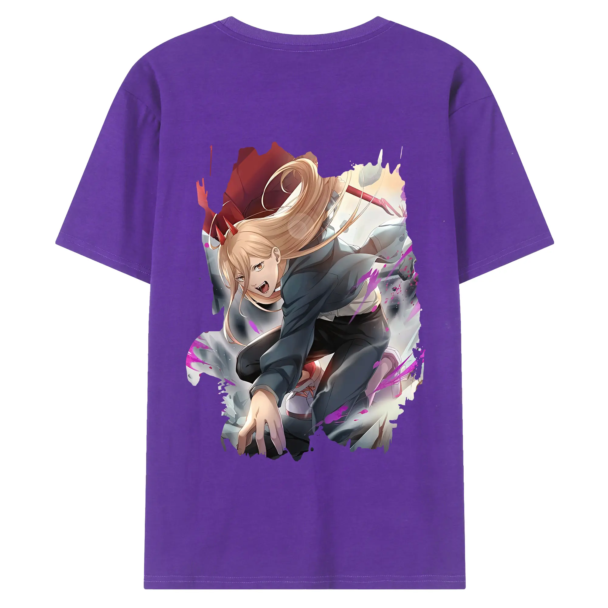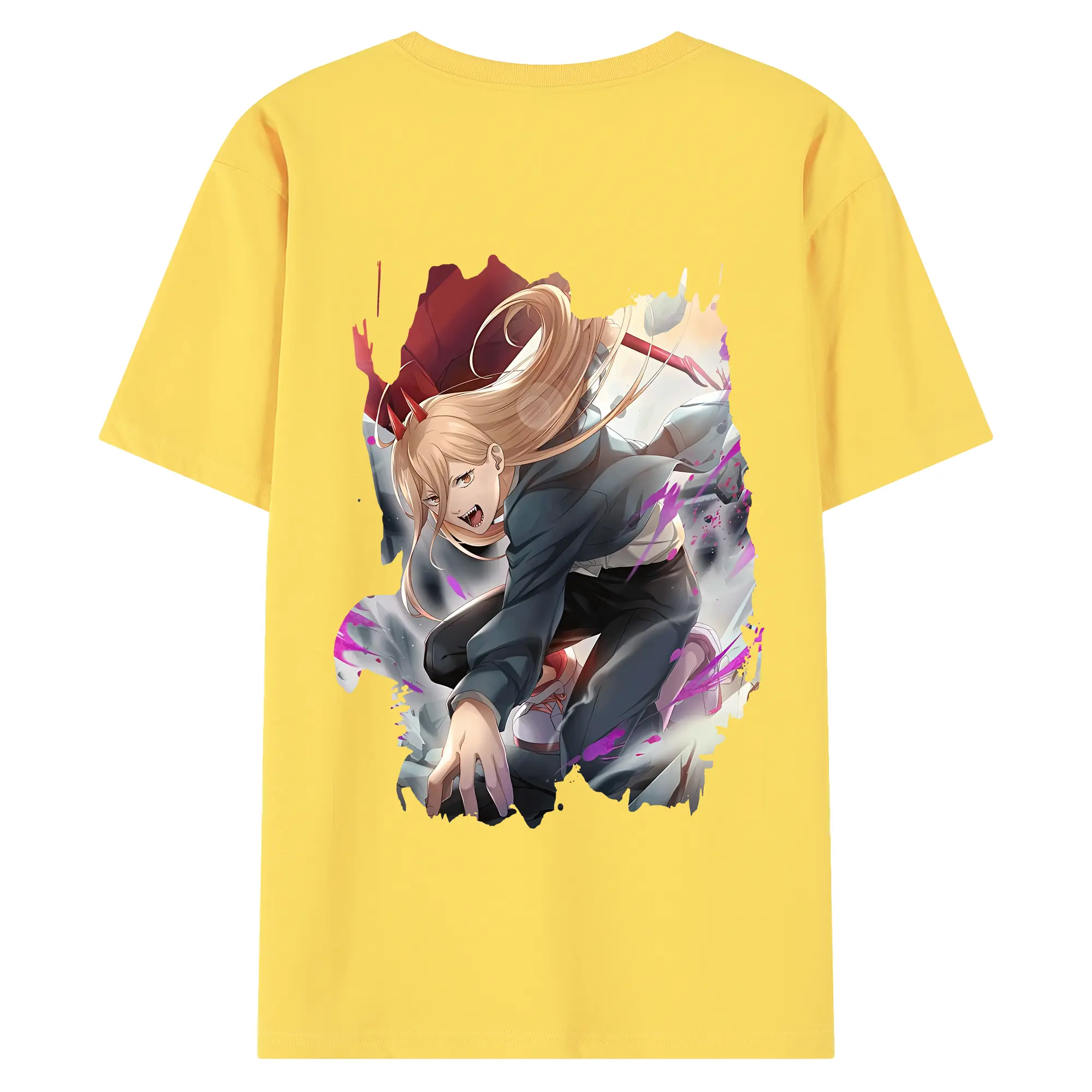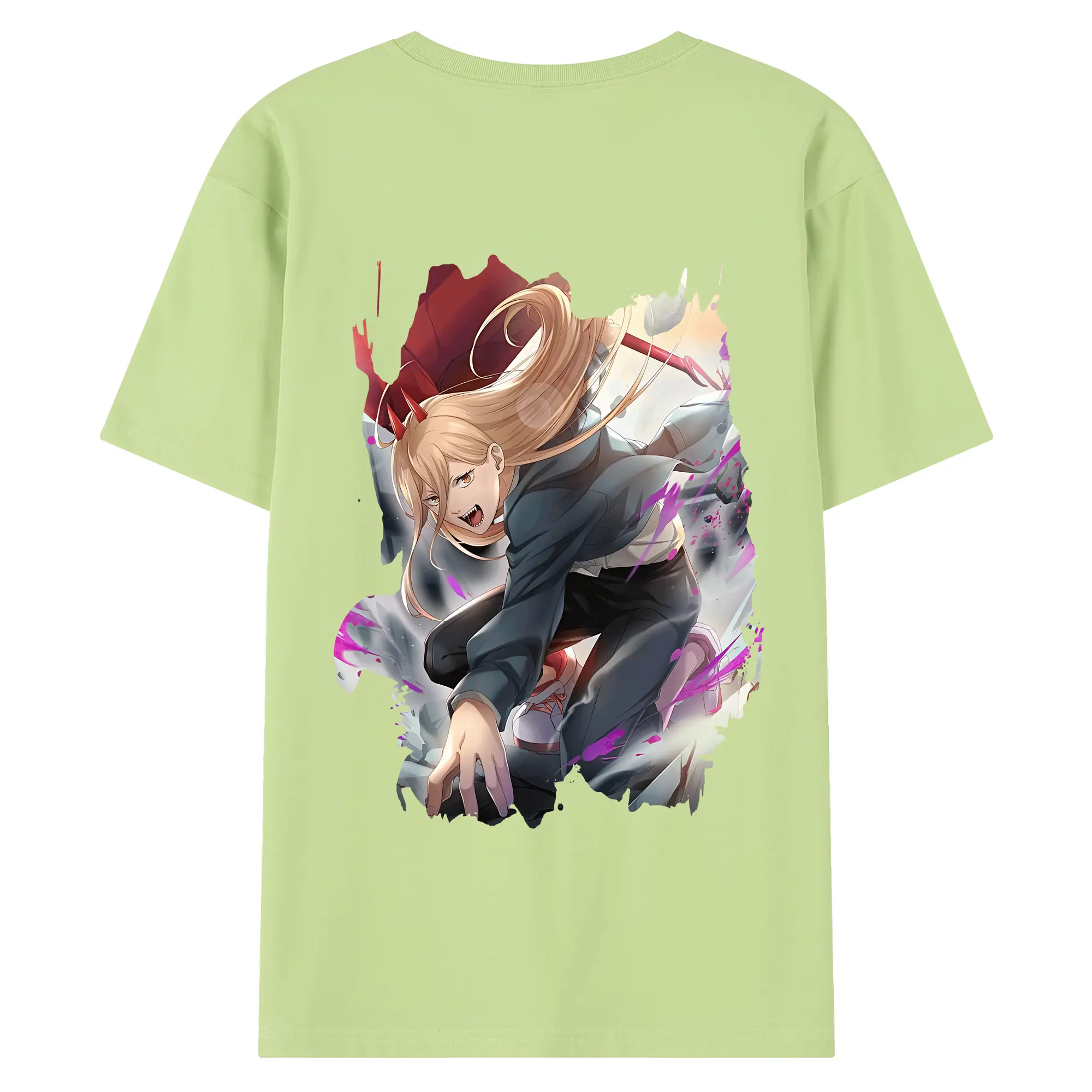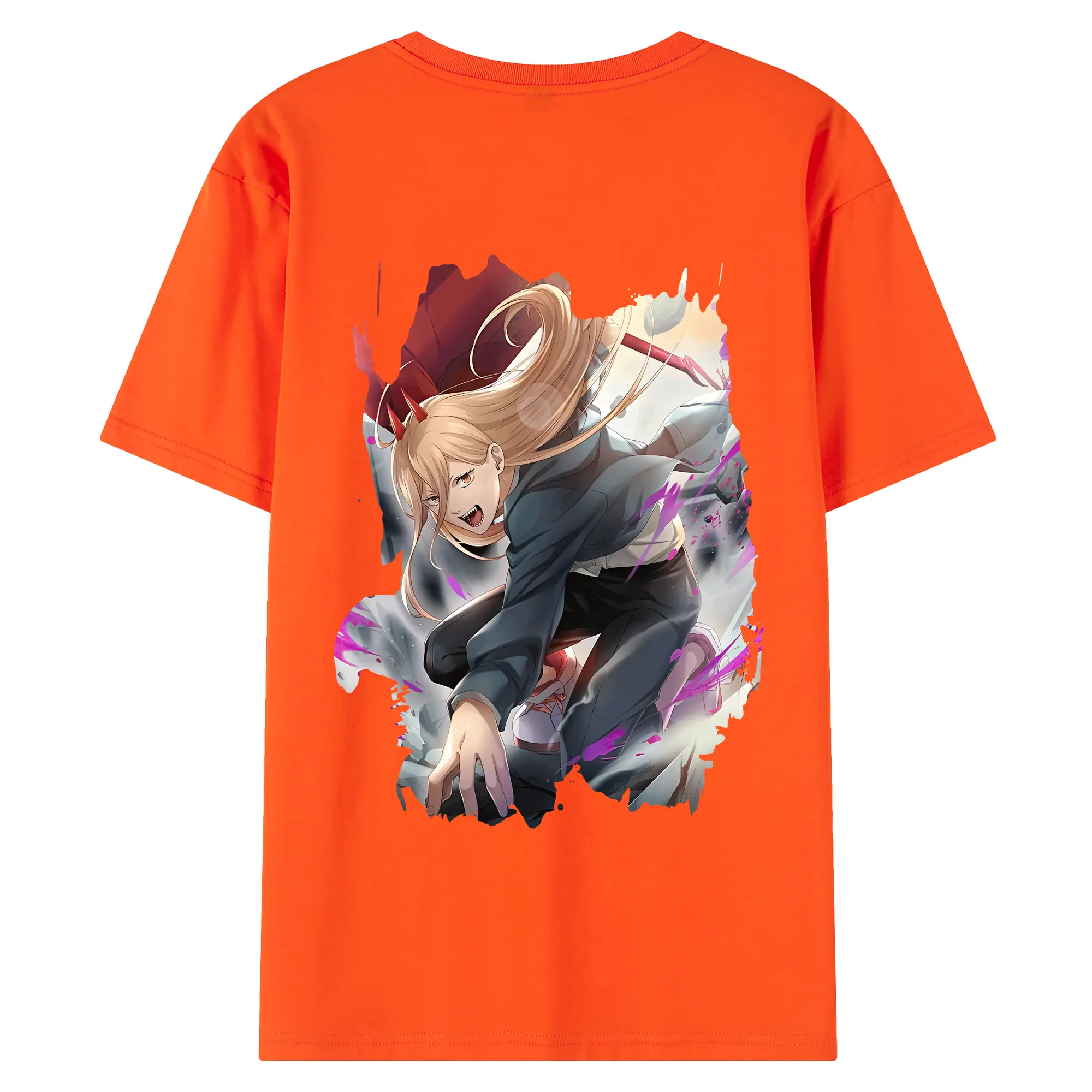 チェンソーマン グッズ,パワー - 綿100% ヴィンテージ風 半袖Tシャツ ・ 背面プリント ・ 柔らか肌触り ・ 通気性 快適 ・ スポーツ カジュアル 外出用