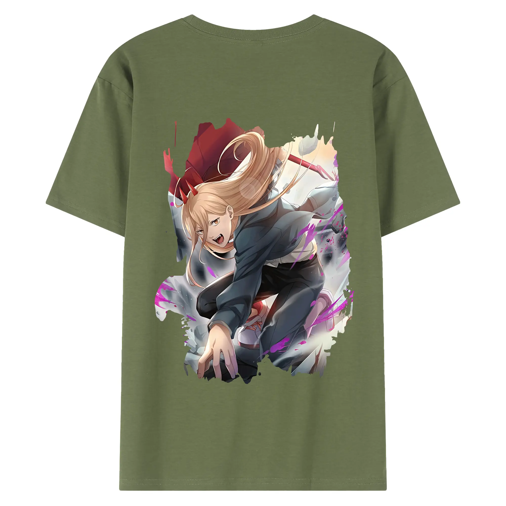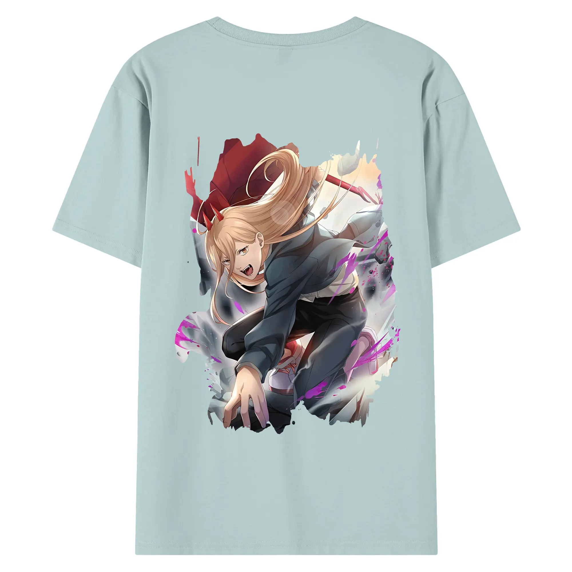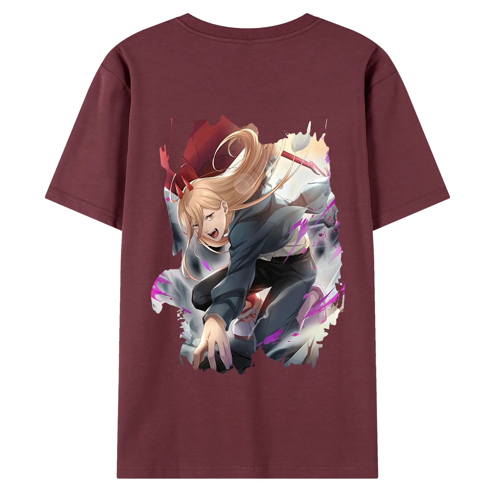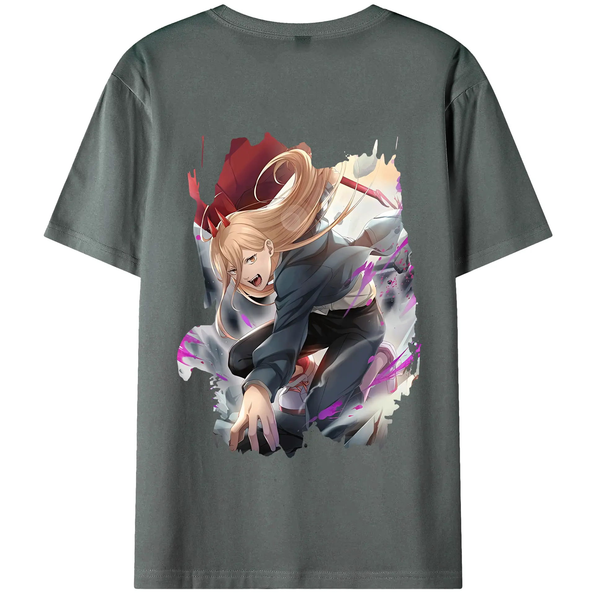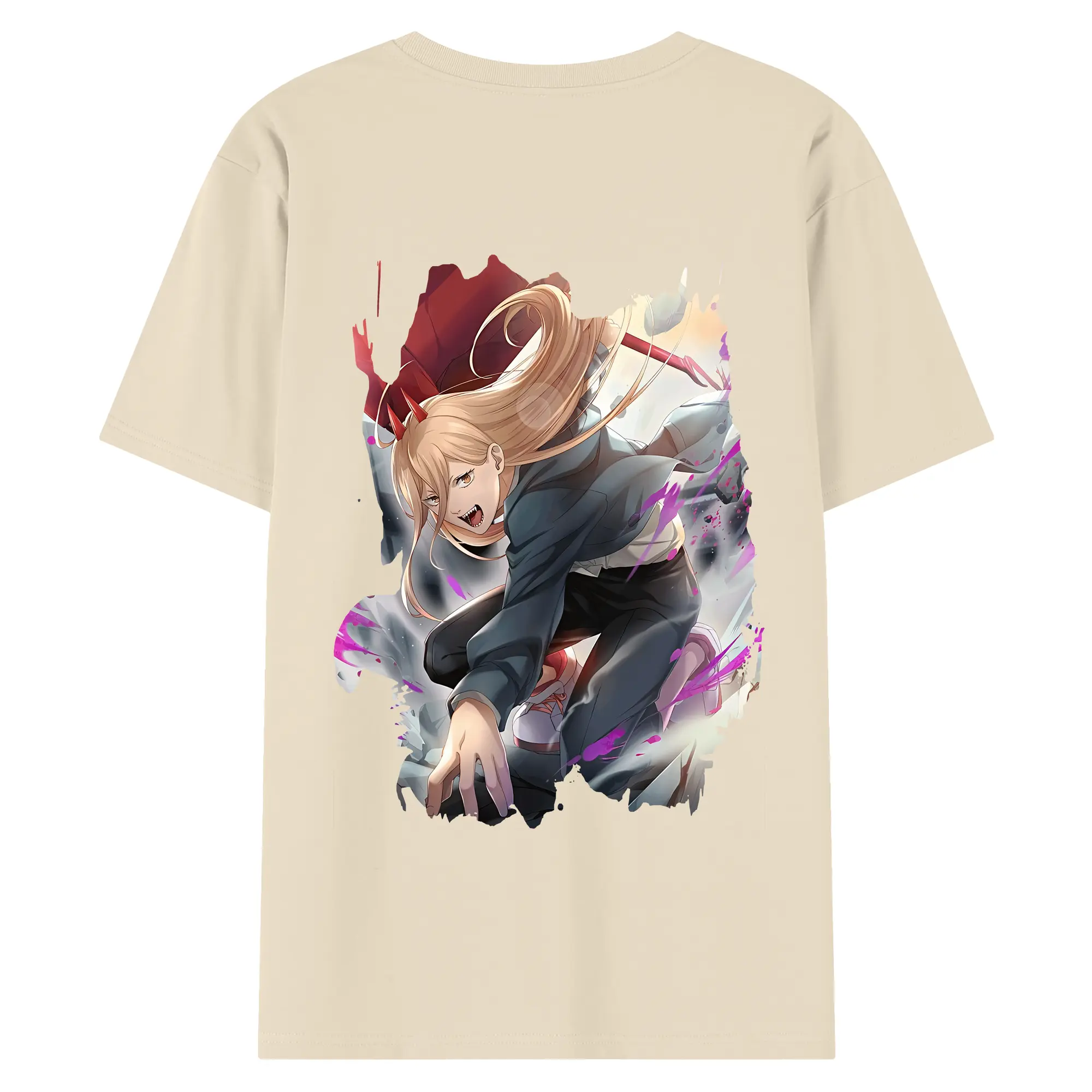 チェンソーマン グッズ,パワー - 綿100% ヴィンテージ風 半袖Tシャツ ・ 背面プリント ・ 柔らか肌触り ・ 通気性 快適 ・ スポーツ カジュアル 外出用