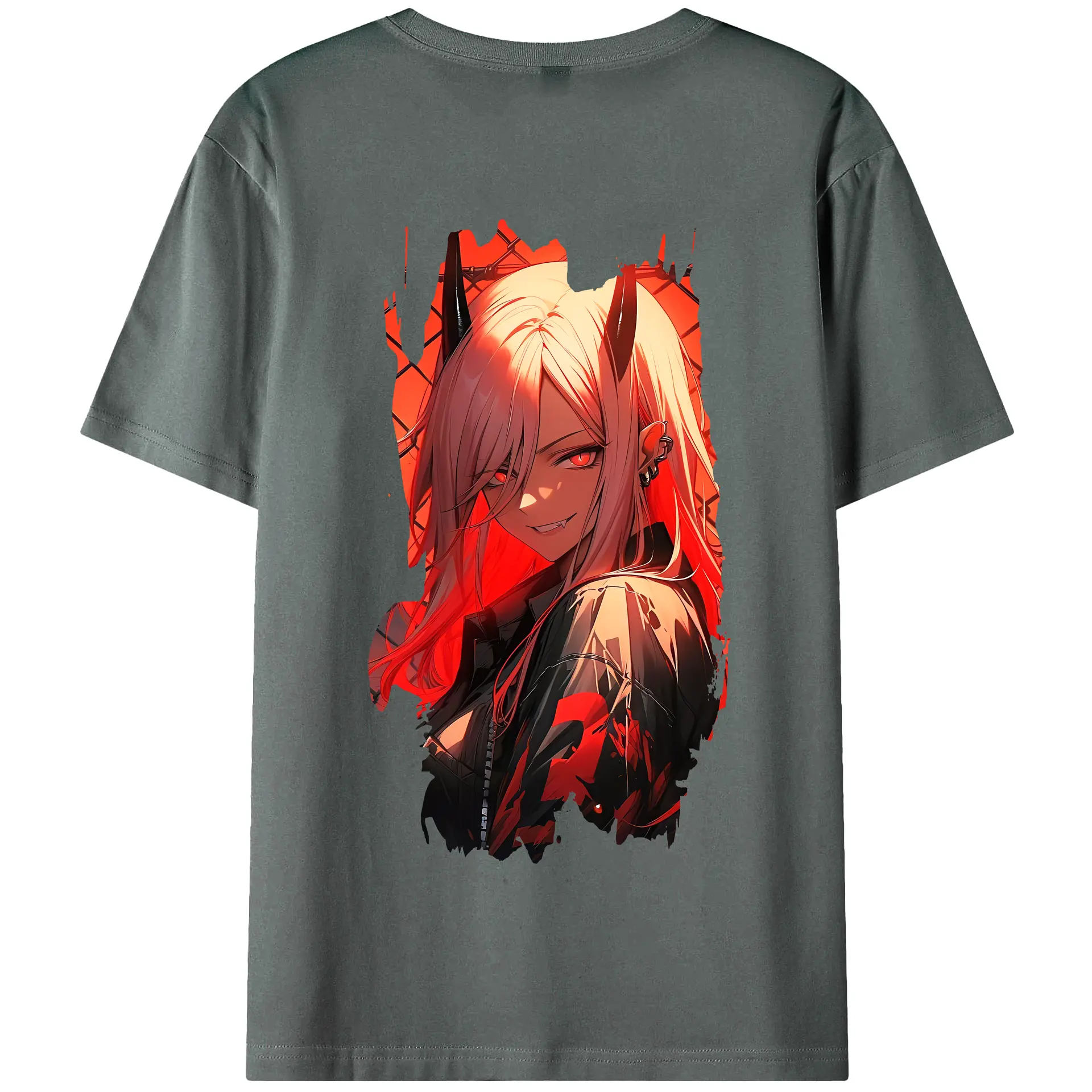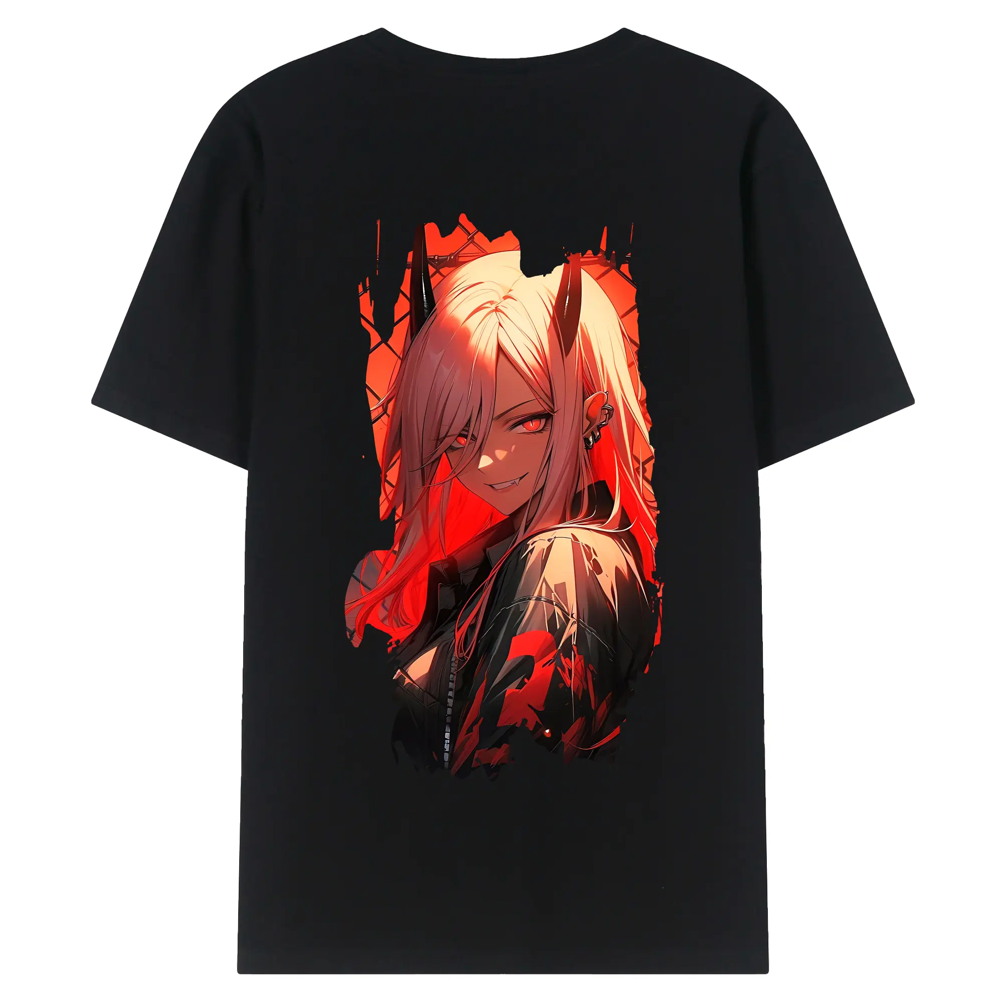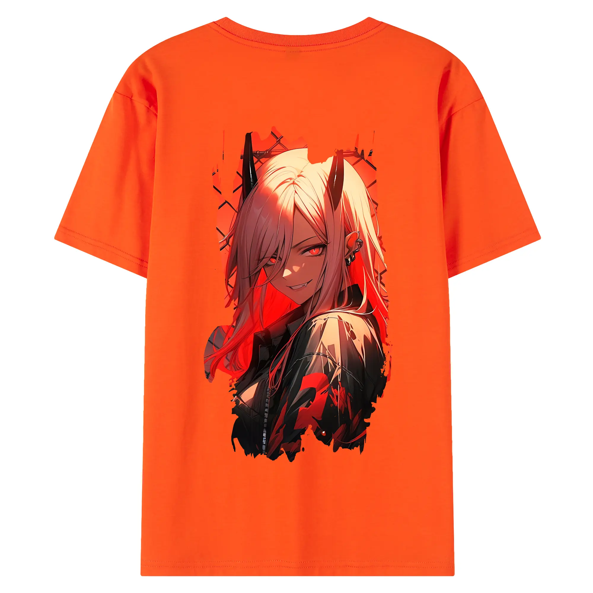 チェンソーマン グッズ,パワー - 綿100% ヴィンテージ風 半袖Tシャツ ・ 背面プリント ・ 柔らか肌触り ・ 通気性 快適 ・ スポーツ カジュアル 外出用