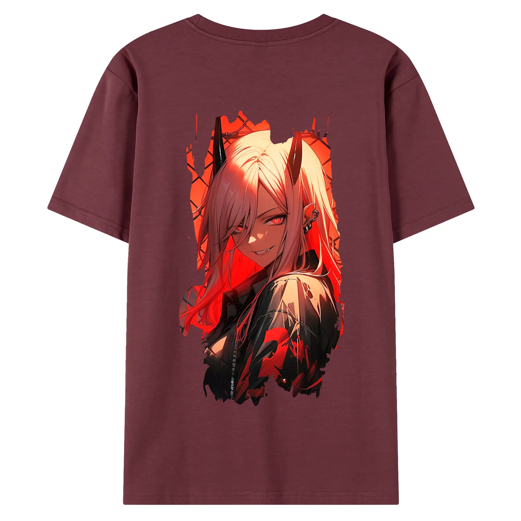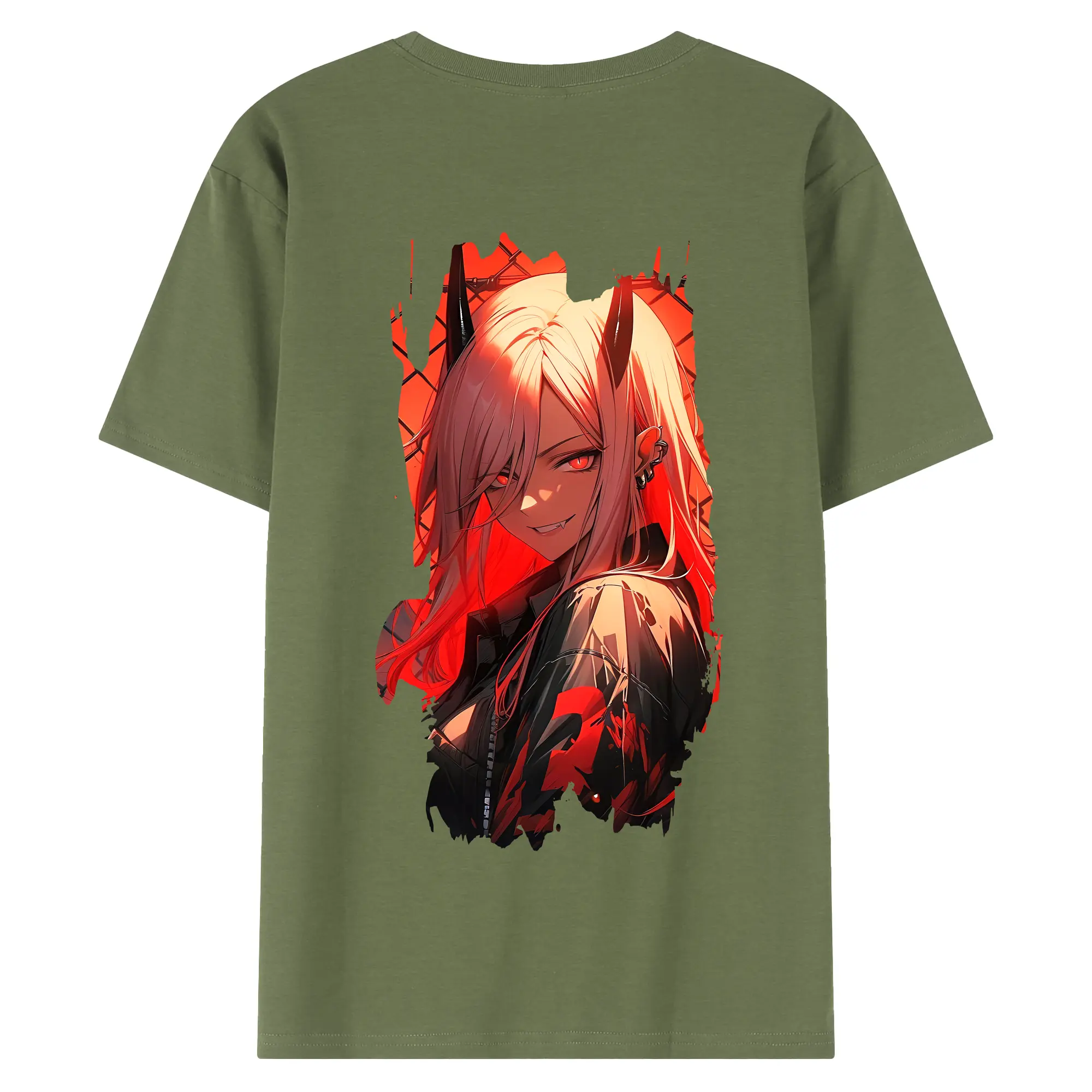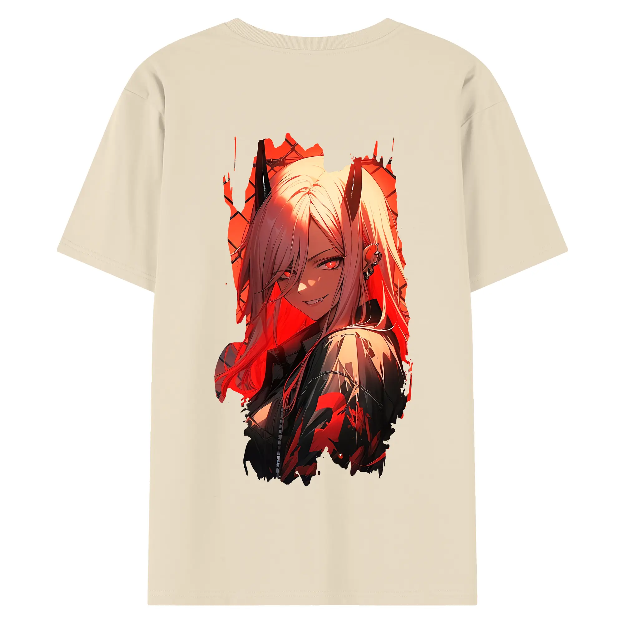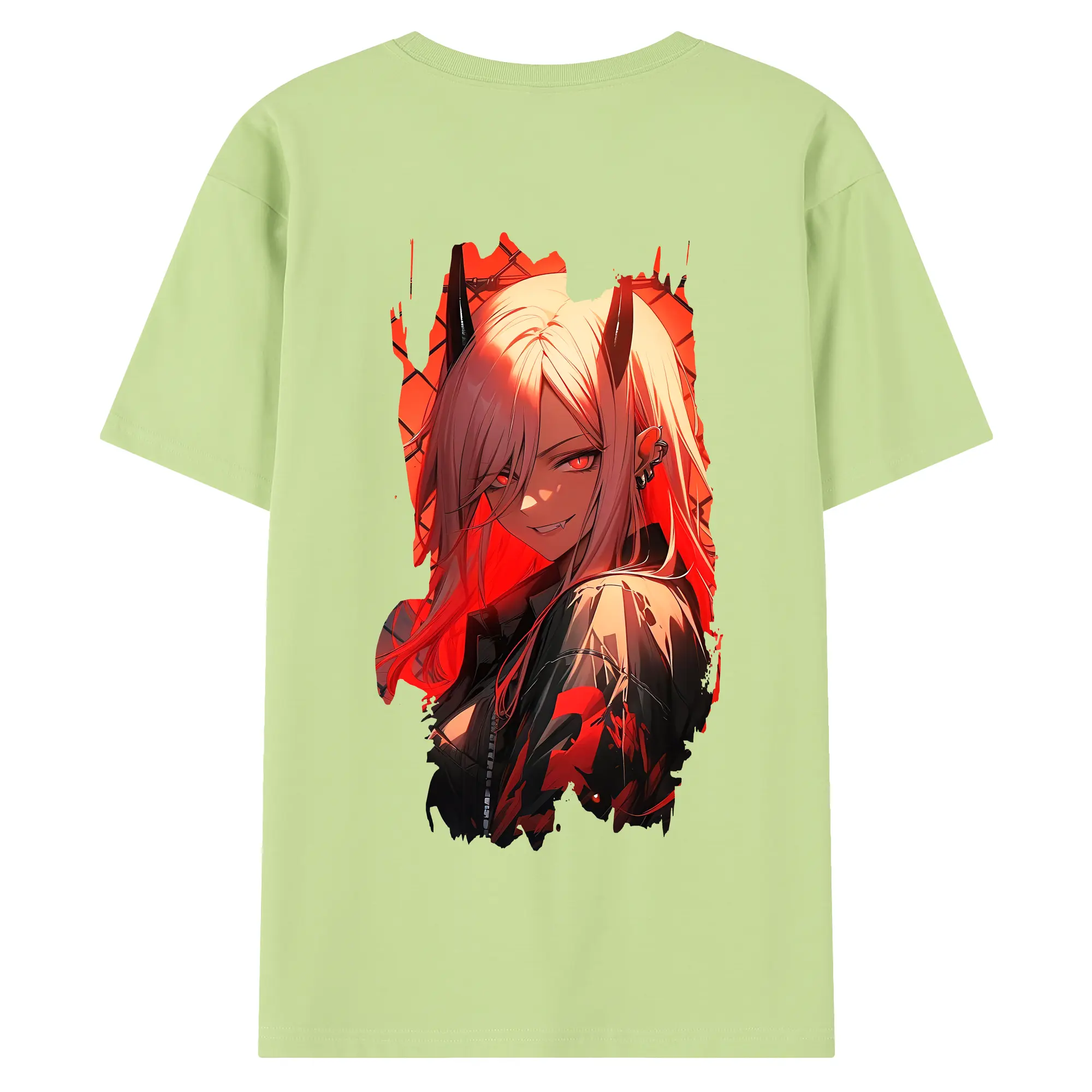 チェンソーマン グッズ,パワー - 綿100% ヴィンテージ風 半袖Tシャツ ・ 背面プリント ・ 柔らか肌触り ・ 通気性 快適 ・ スポーツ カジュアル 外出用