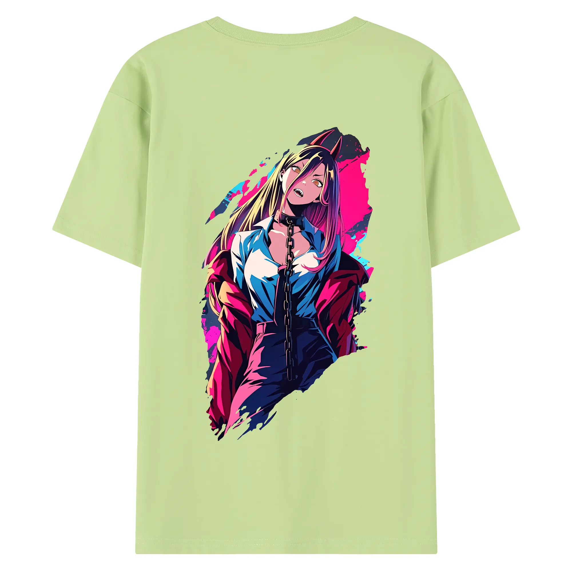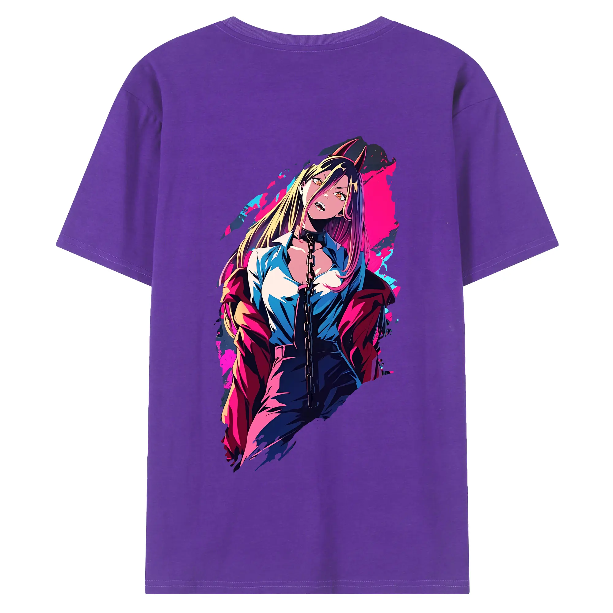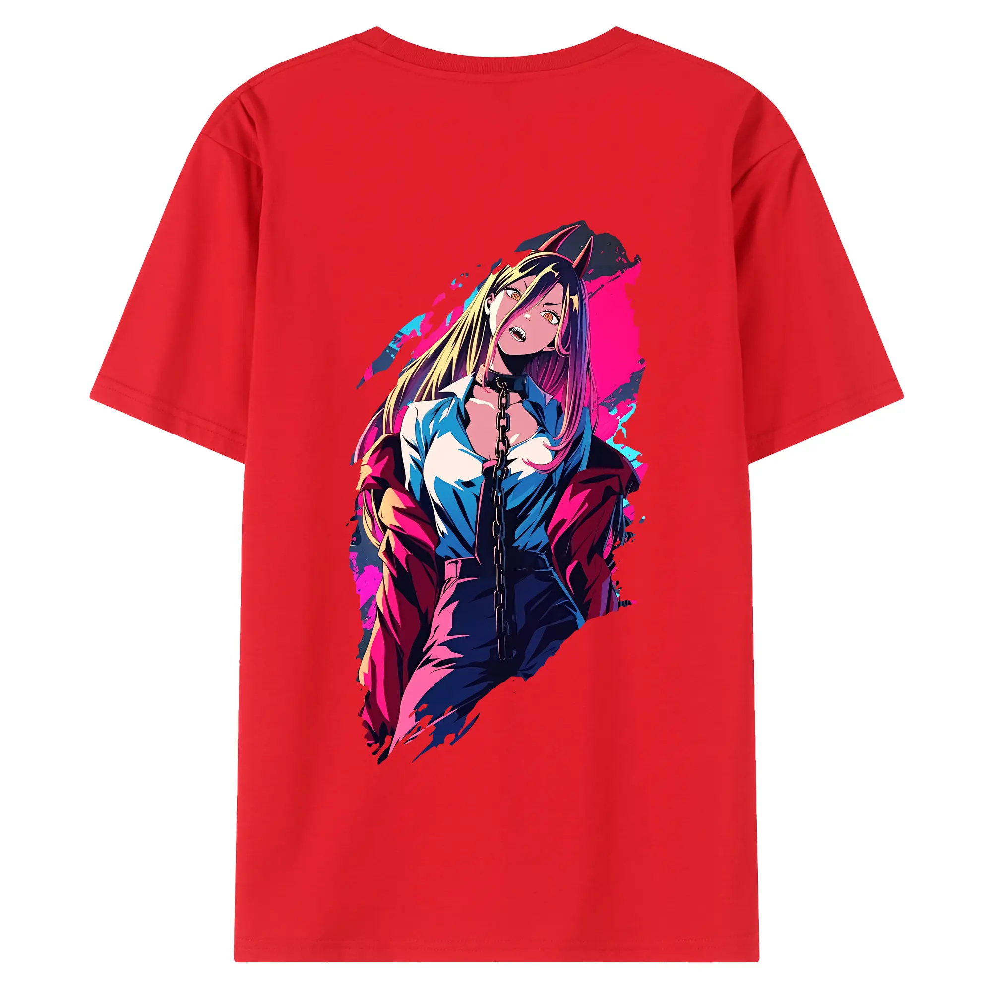 チェンソーマン グッズ,パワー - 綿100% ヴィンテージ風 半袖Tシャツ ・ 背面プリント ・ 柔らか肌触り ・ 通気性 快適 ・ スポーツ カジュアル 外出用