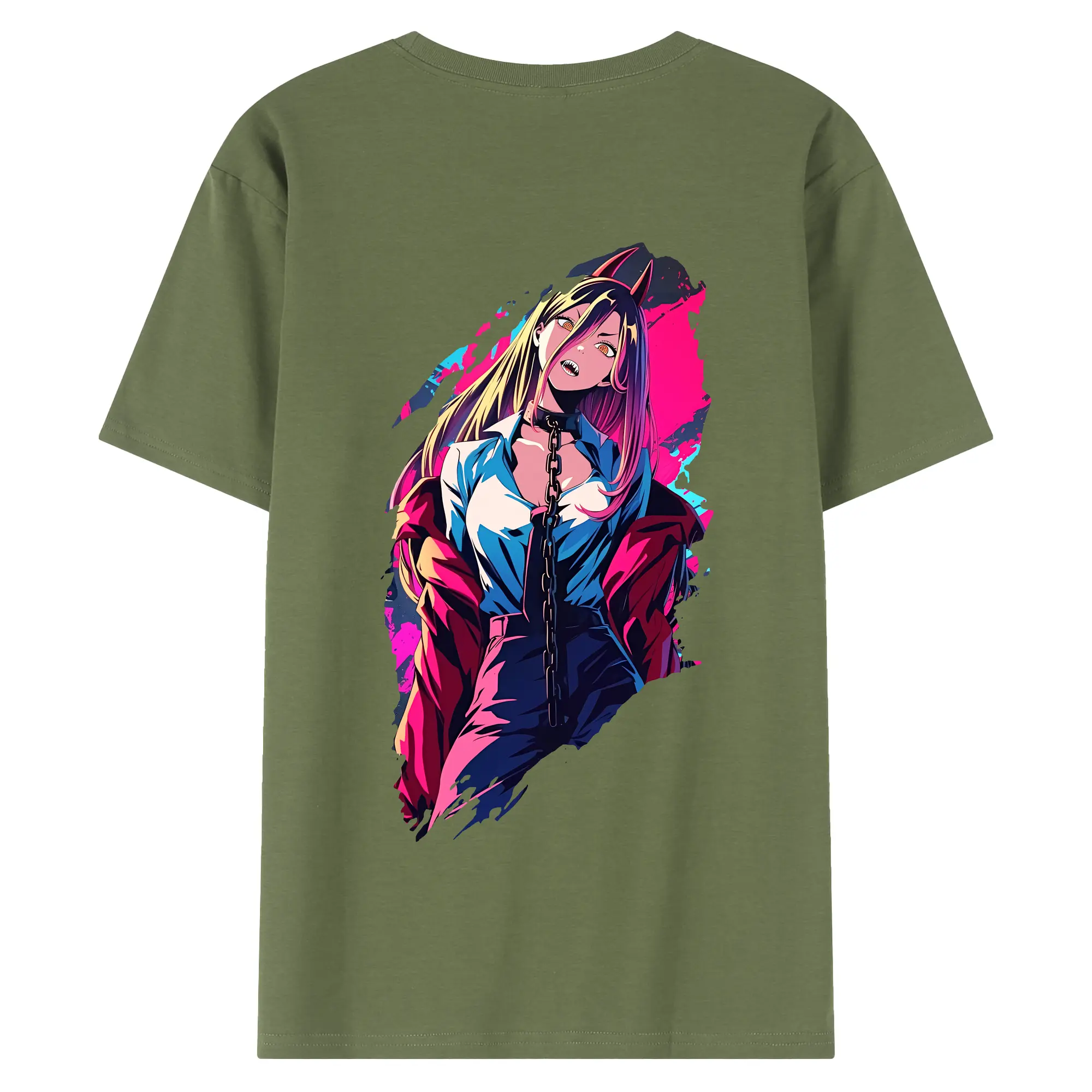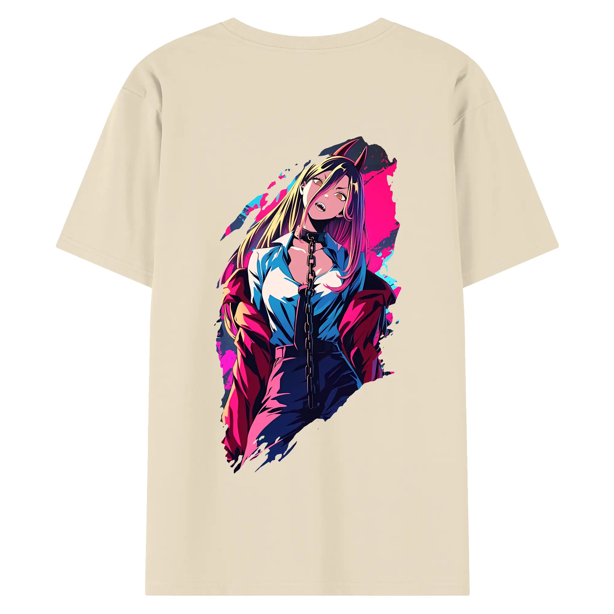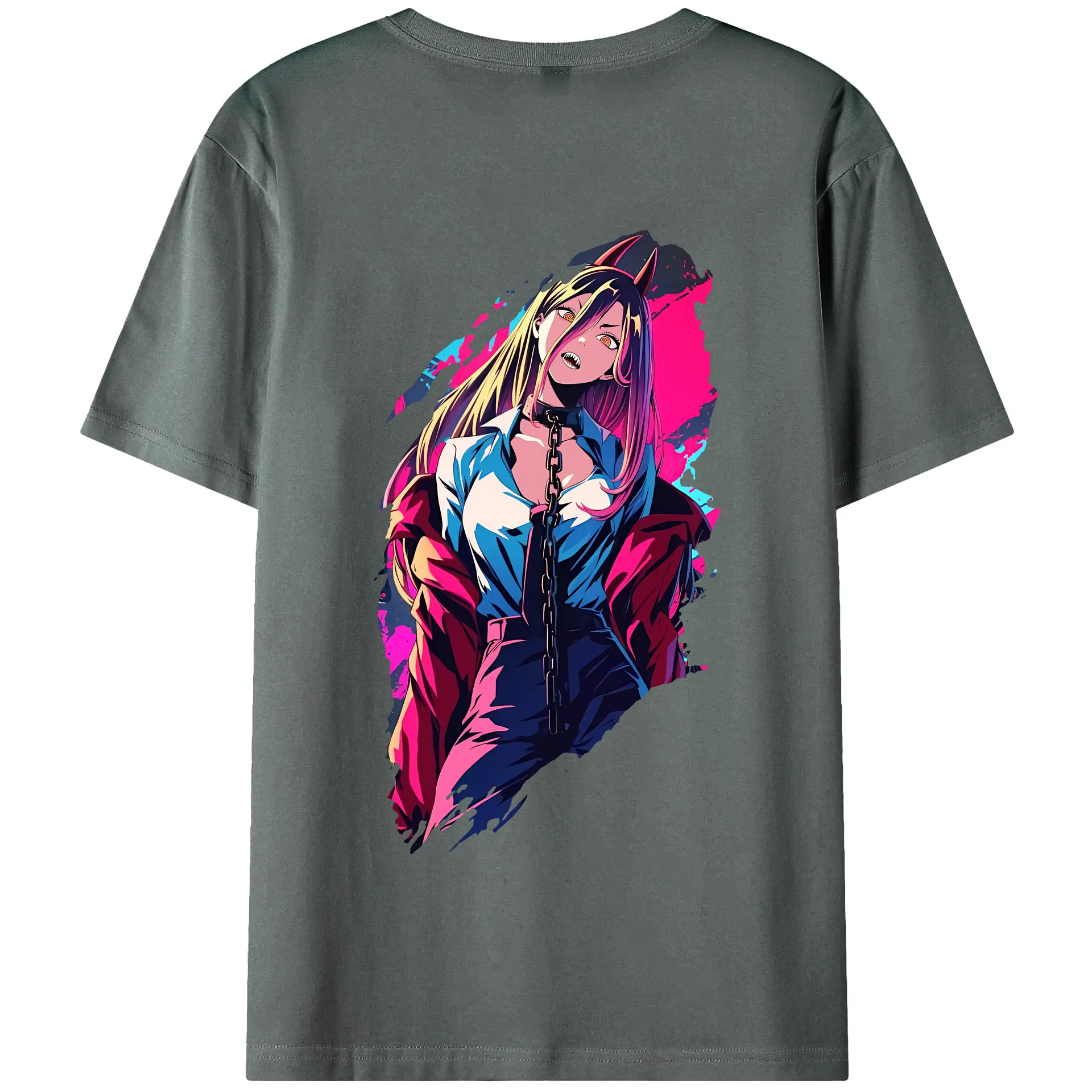 チェンソーマン グッズ,パワー - 綿100% ヴィンテージ風 半袖Tシャツ ・ 背面プリント ・ 柔らか肌触り ・ 通気性 快適 ・ スポーツ カジュアル 外出用