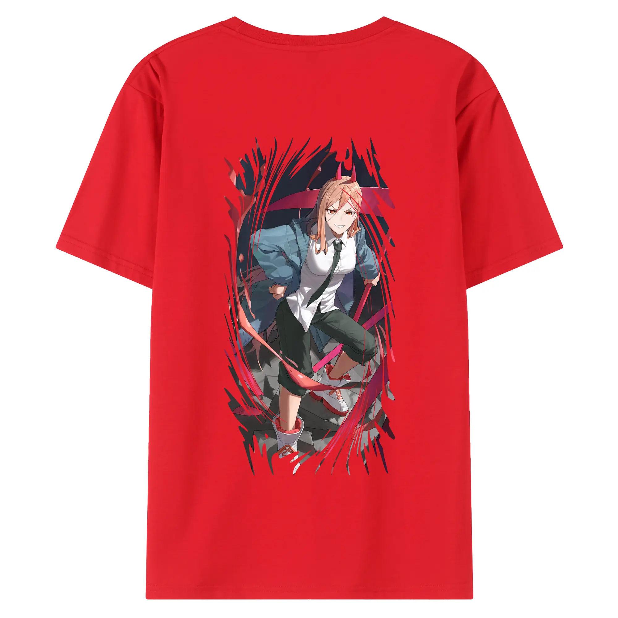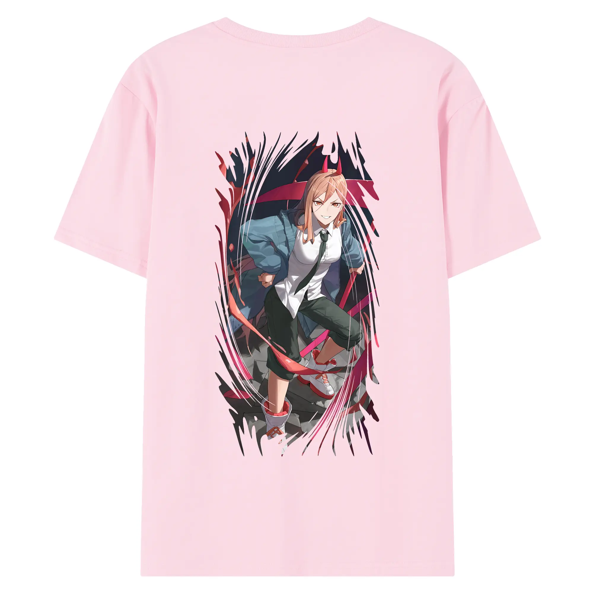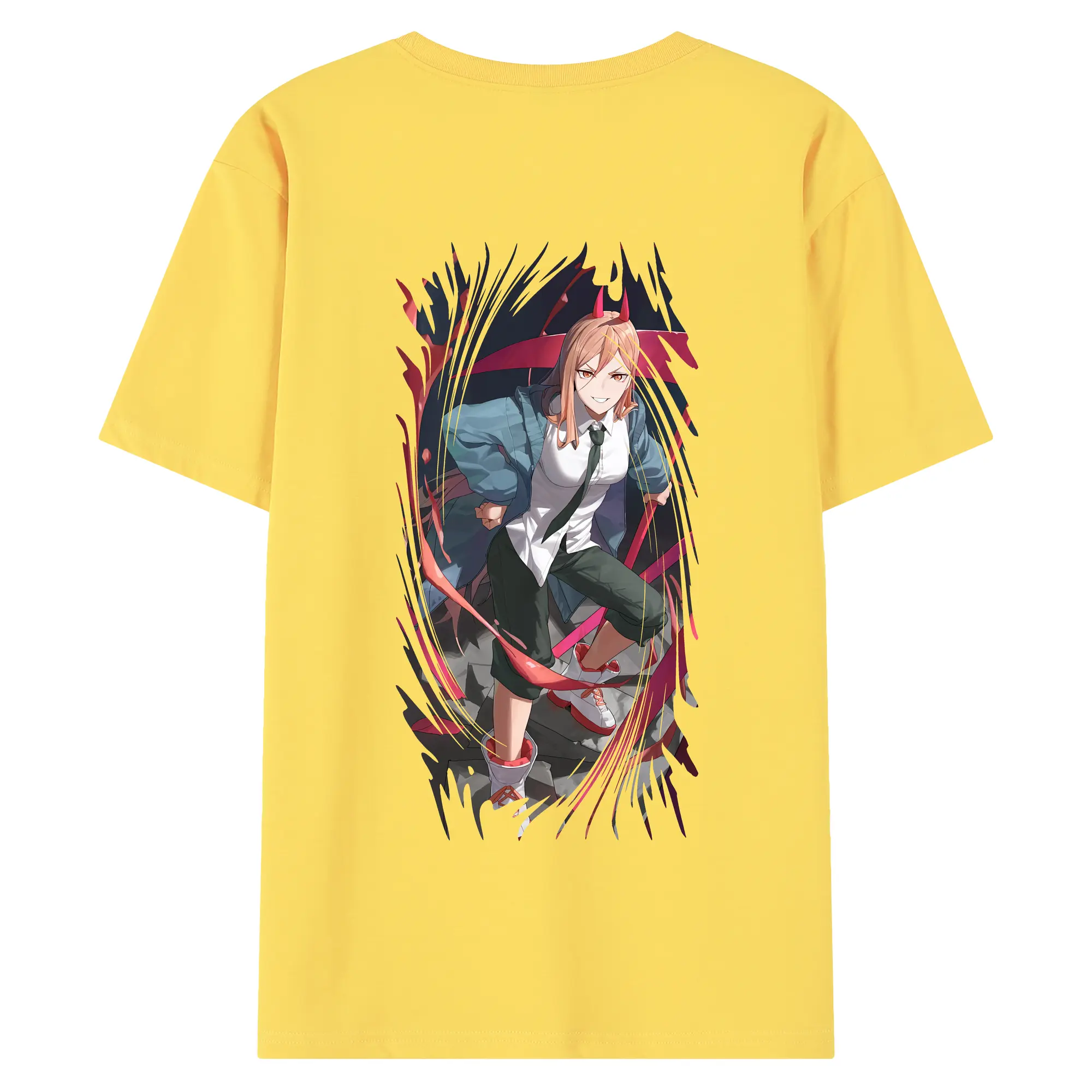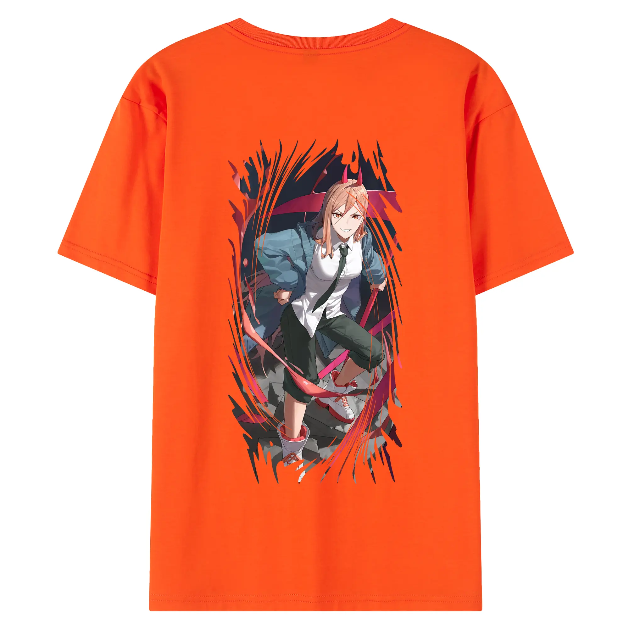 チェンソーマン グッズ,パワー - 綿100% ヴィンテージ風 半袖Tシャツ ・ 背面プリント ・ 柔らか肌触り ・ 通気性 快適 ・ スポーツ カジュアル 外出用