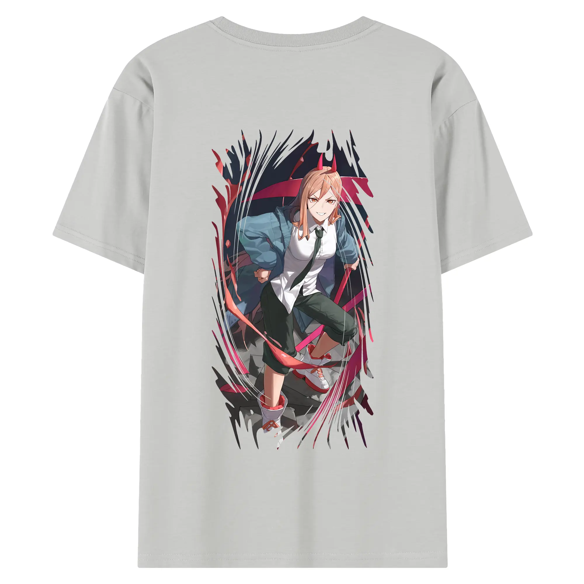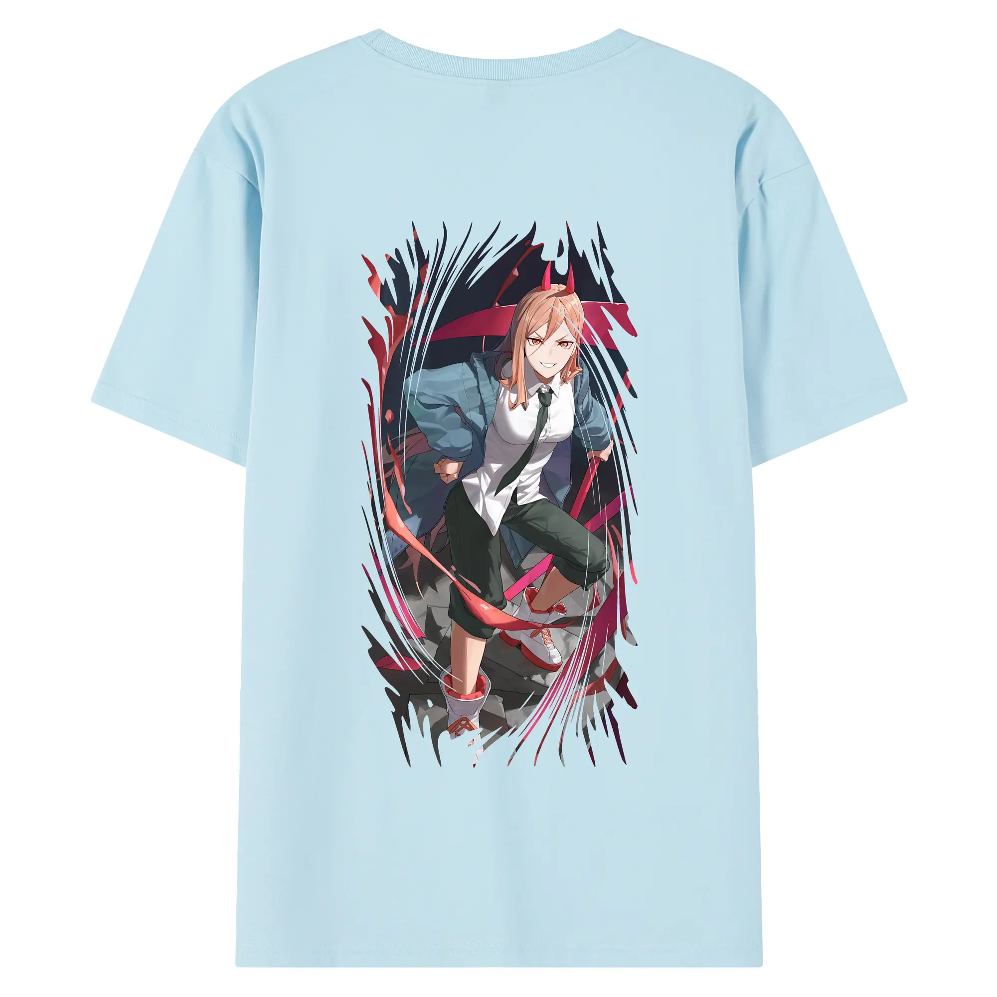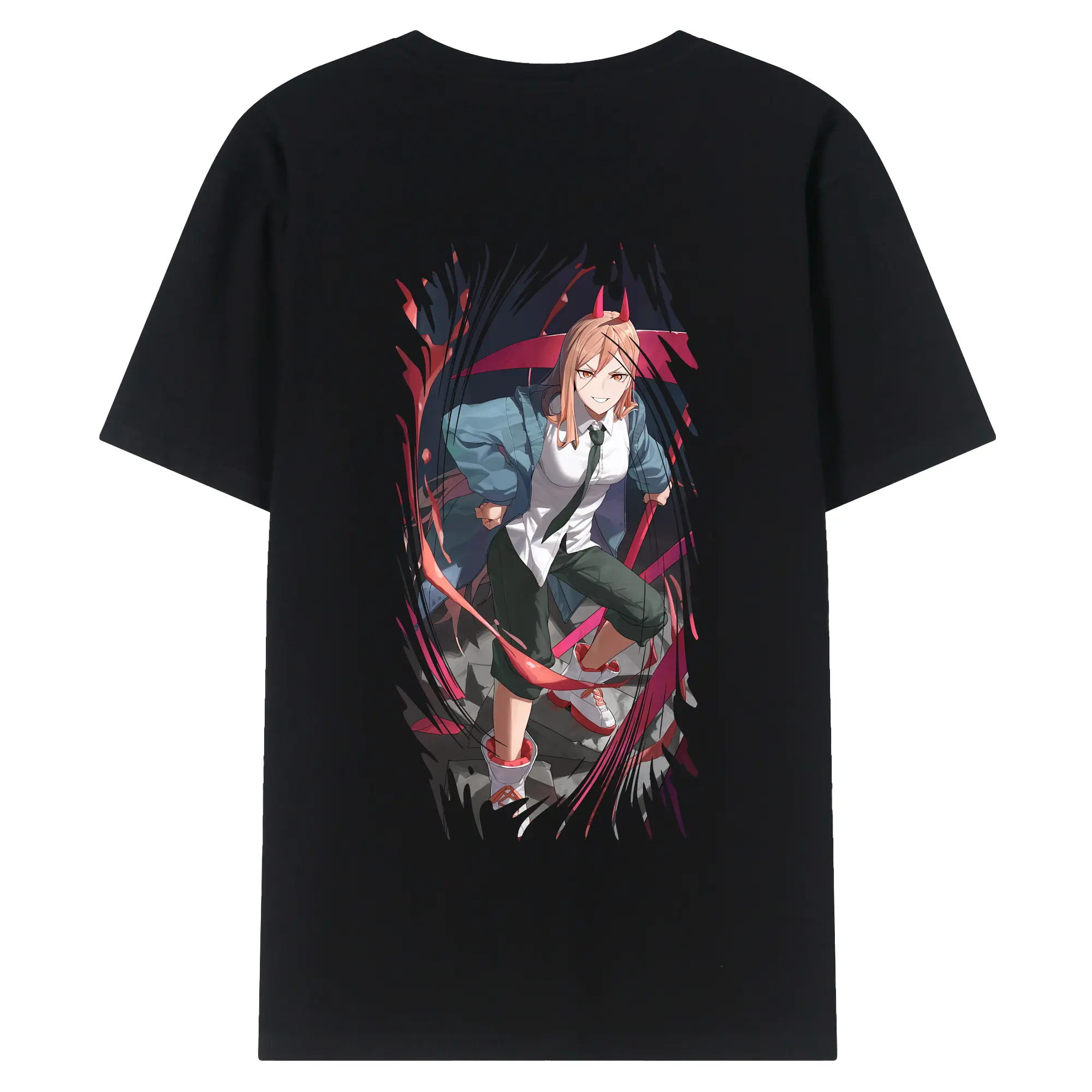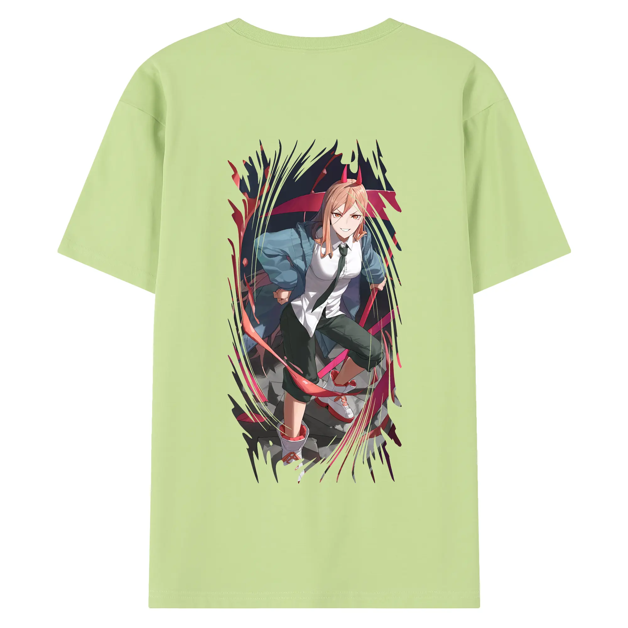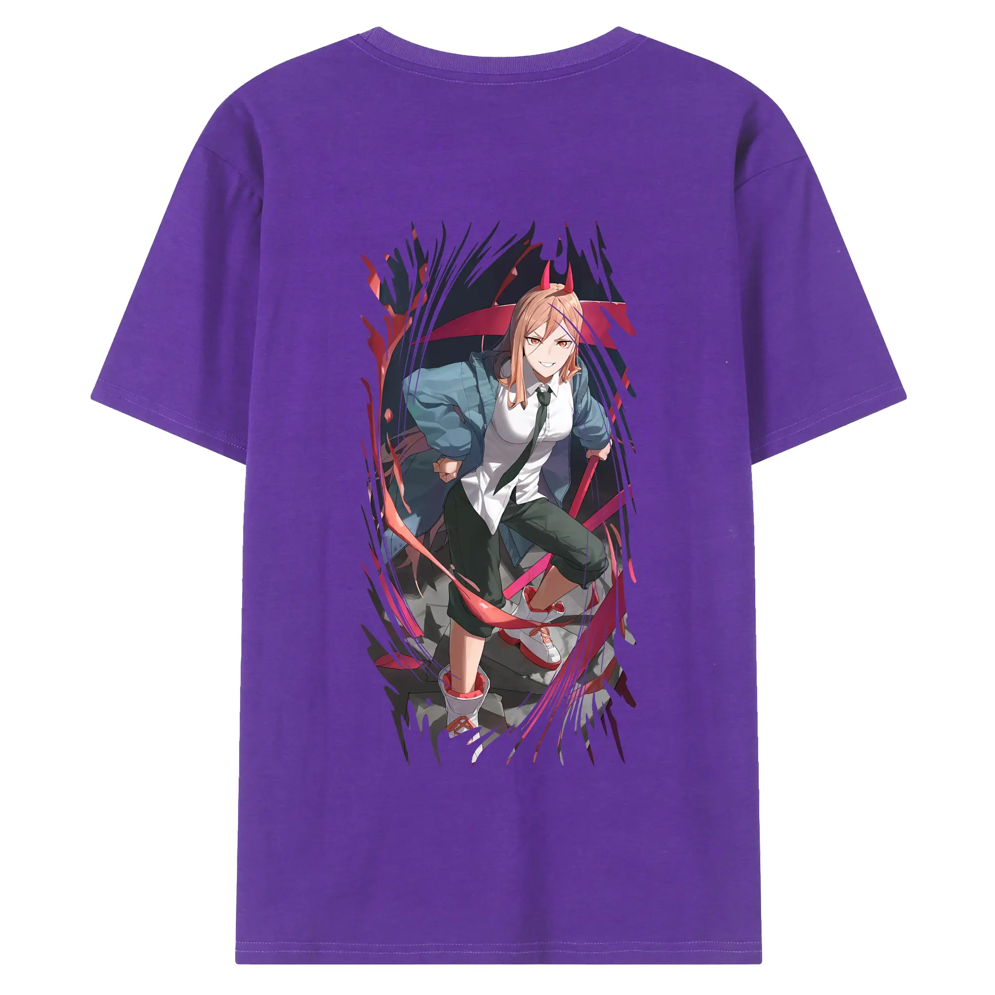 チェンソーマン グッズ,パワー - 綿100% ヴィンテージ風 半袖Tシャツ ・ 背面プリント ・ 柔らか肌触り ・ 通気性 快適 ・ スポーツ カジュアル 外出用