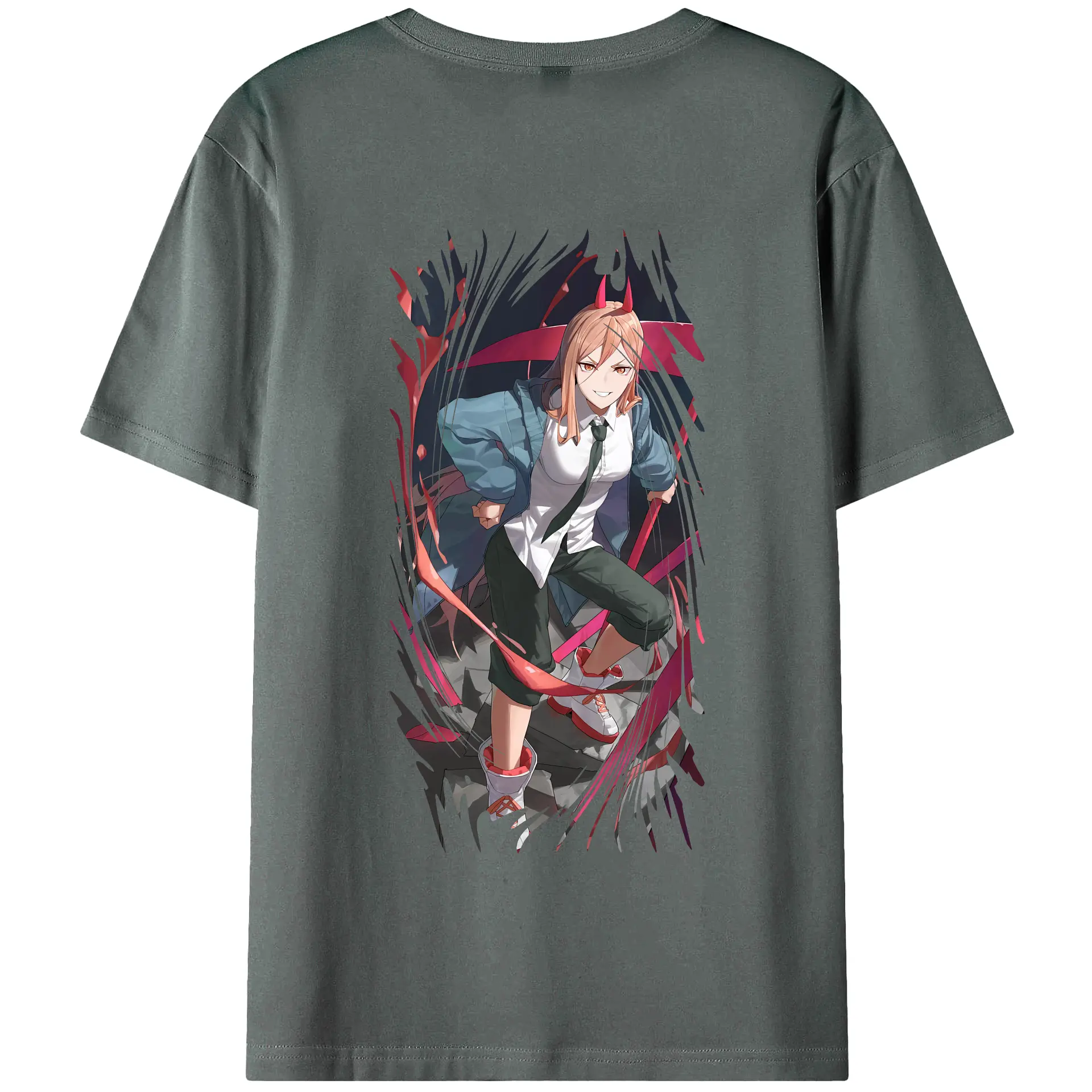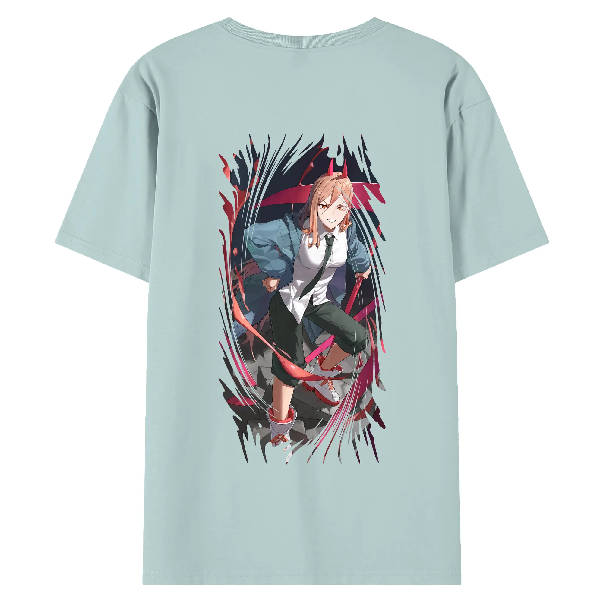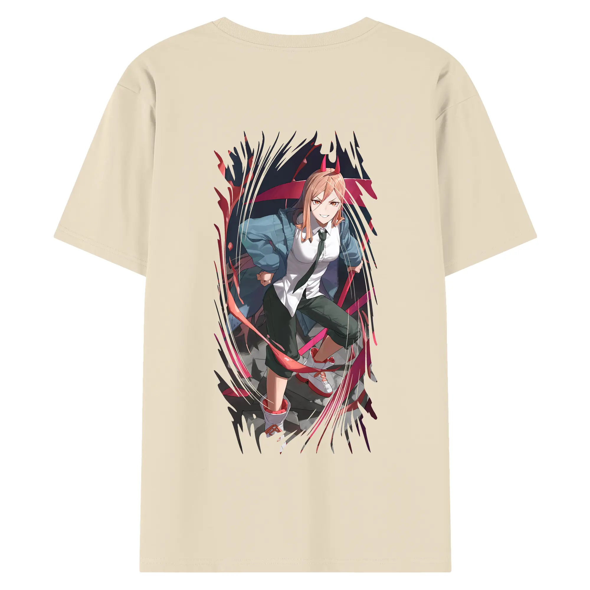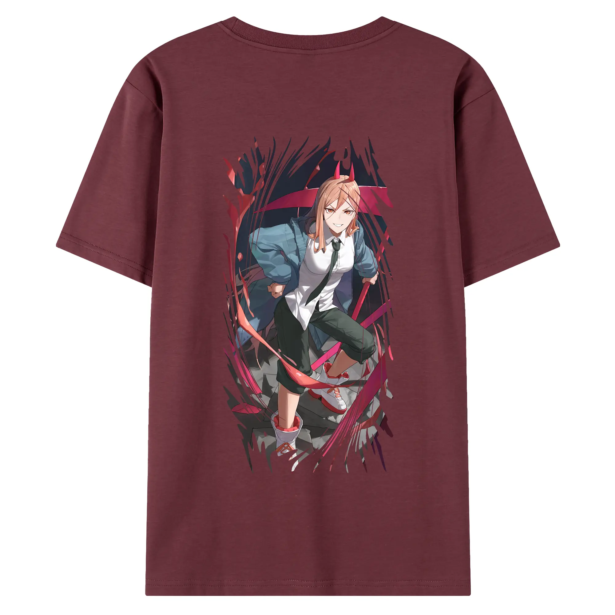 チェンソーマン グッズ,パワー - 綿100% ヴィンテージ風 半袖Tシャツ ・ 背面プリント ・ 柔らか肌触り ・ 通気性 快適 ・ スポーツ カジュアル 外出用