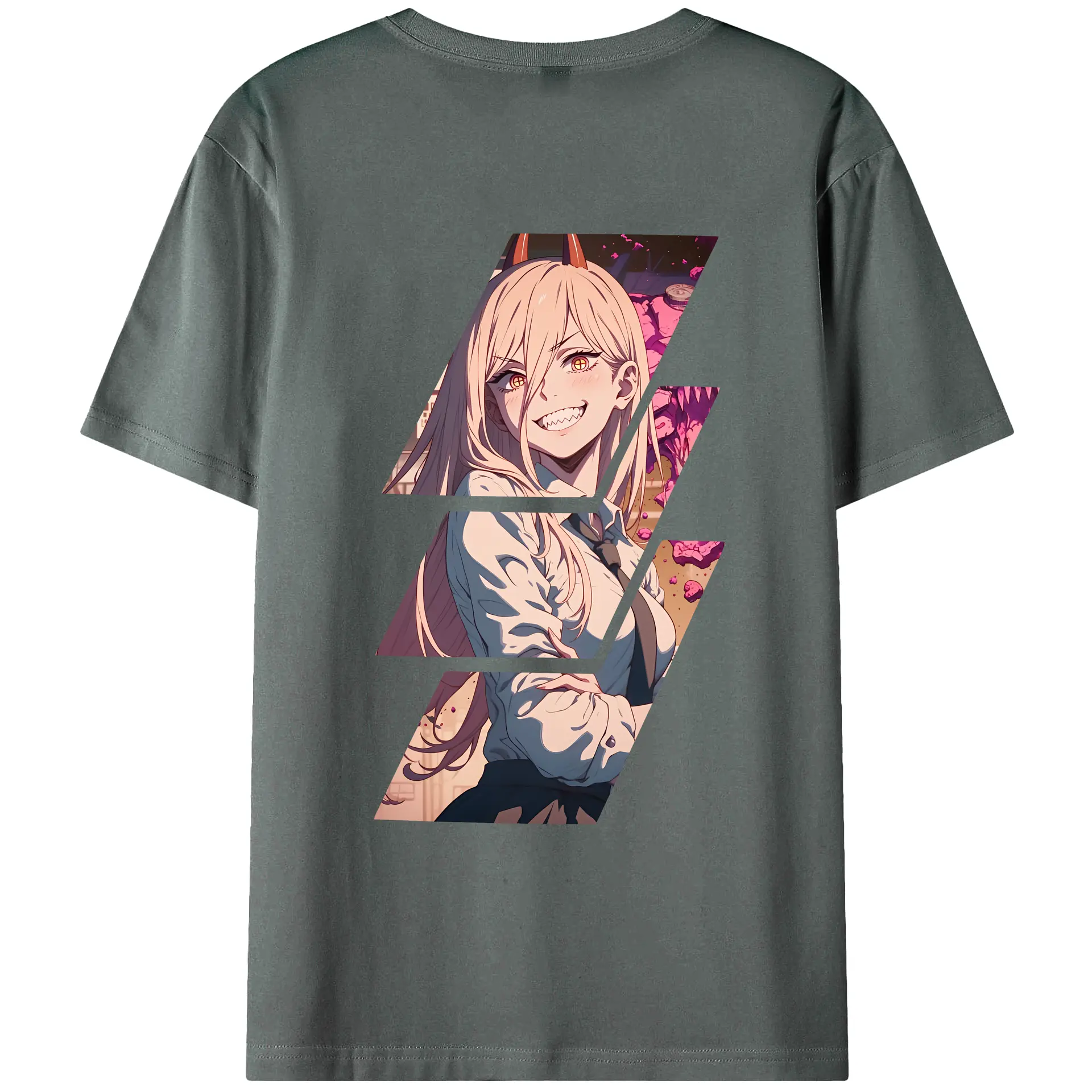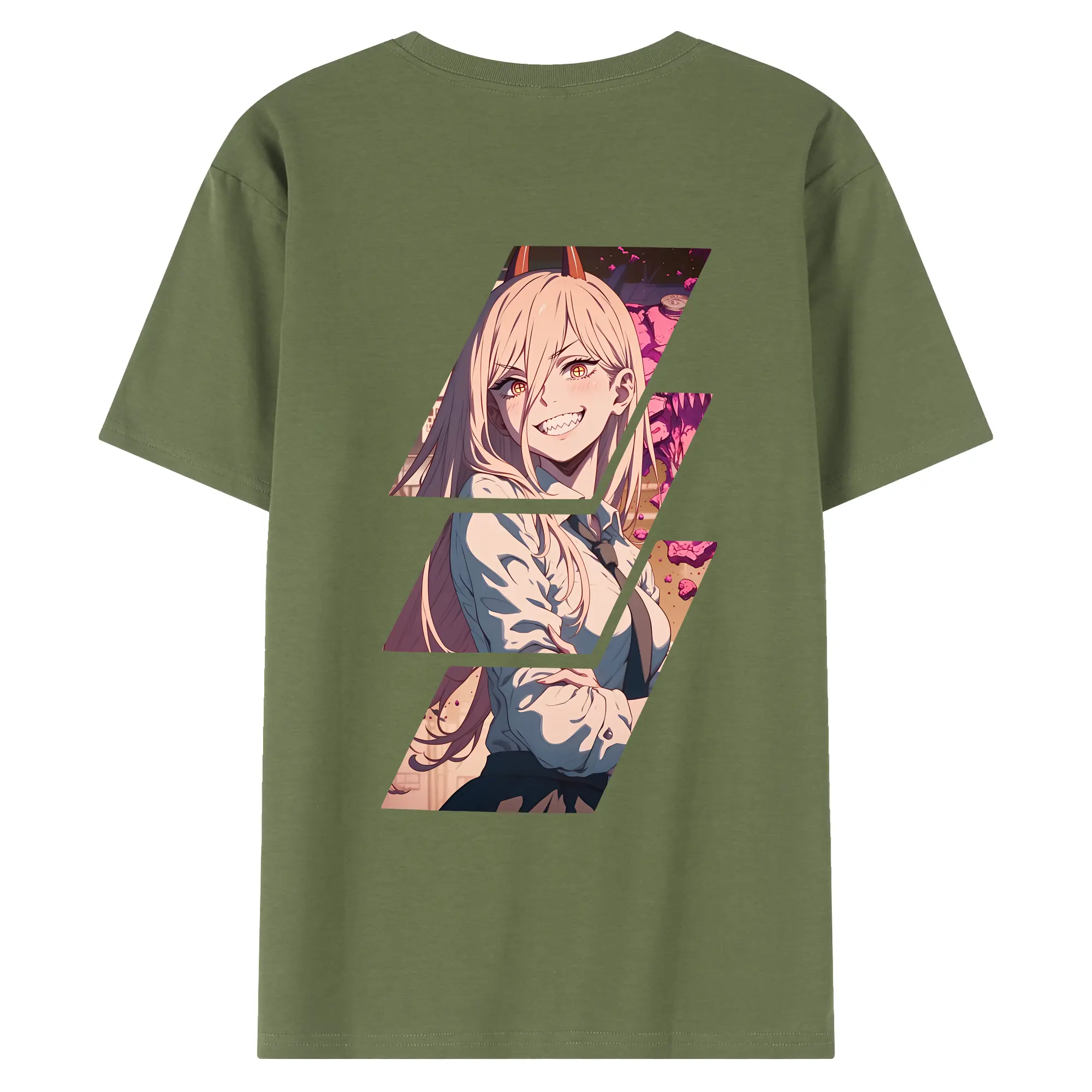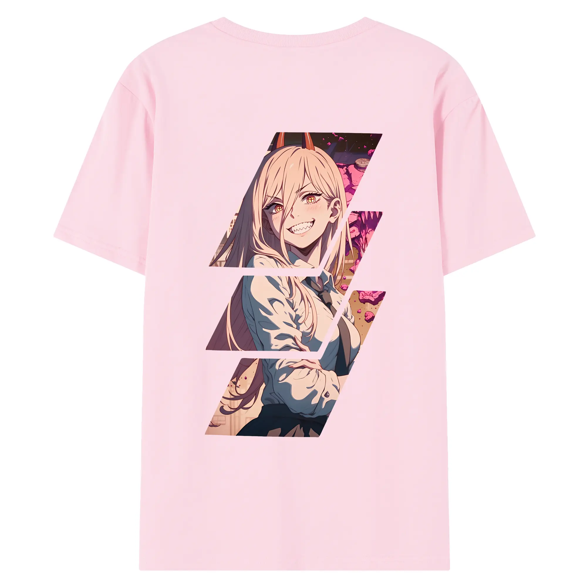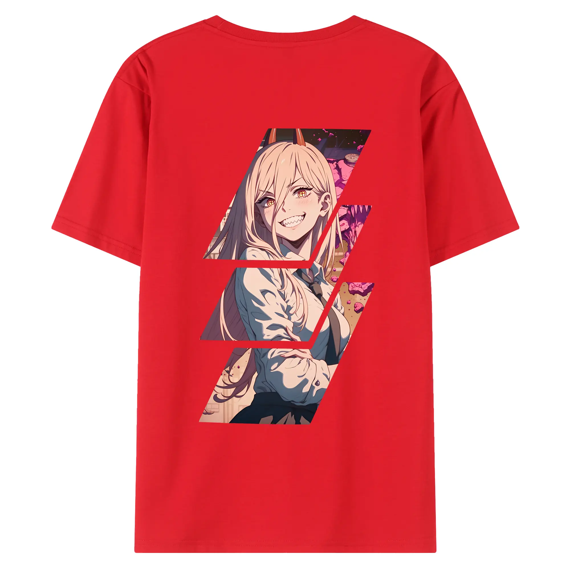 チェンソーマン グッズ,パワー - 綿100% ヴィンテージ風 半袖Tシャツ ・ 背面プリント ・ 柔らか肌触り ・ 通気性 快適 ・ スポーツ カジュアル 外出用