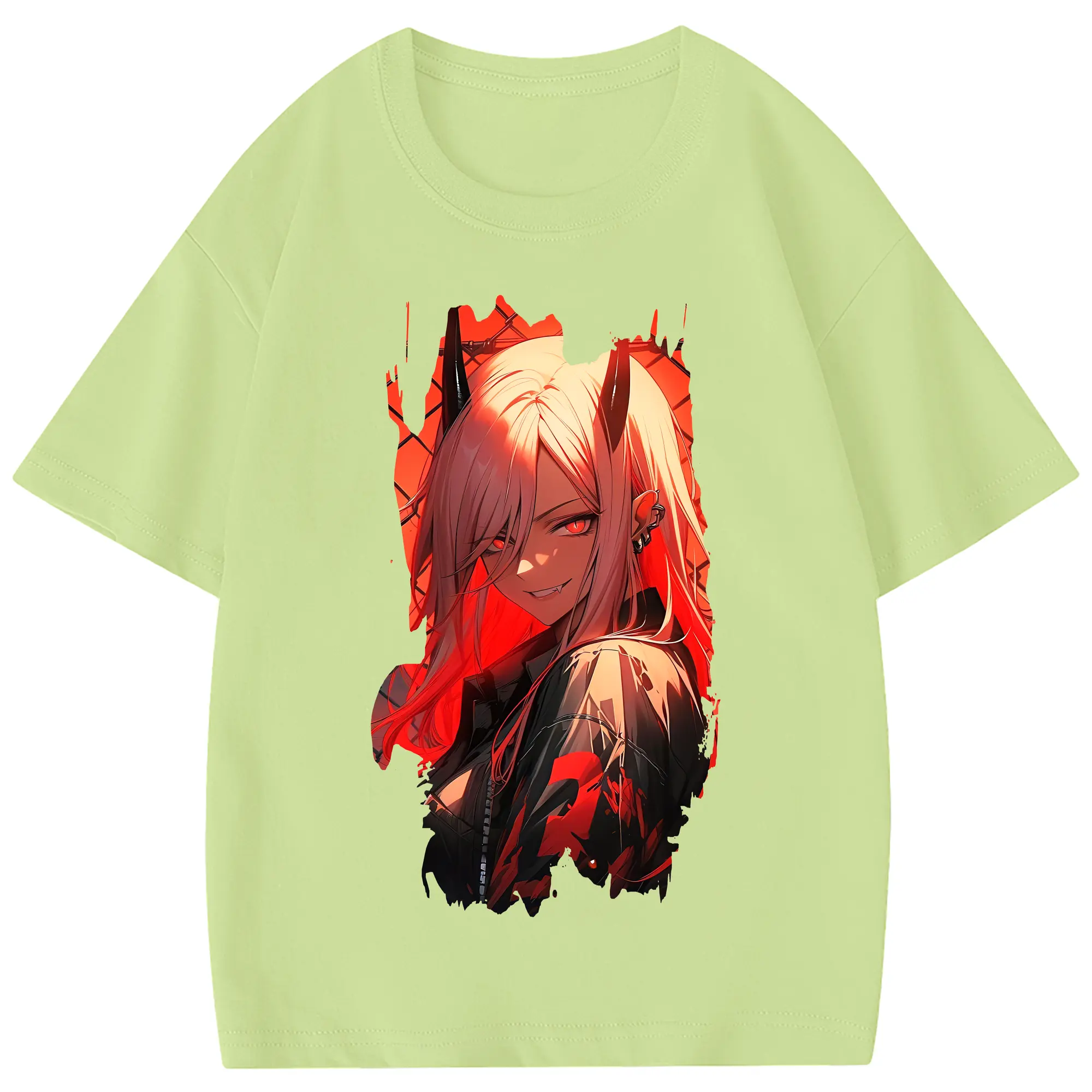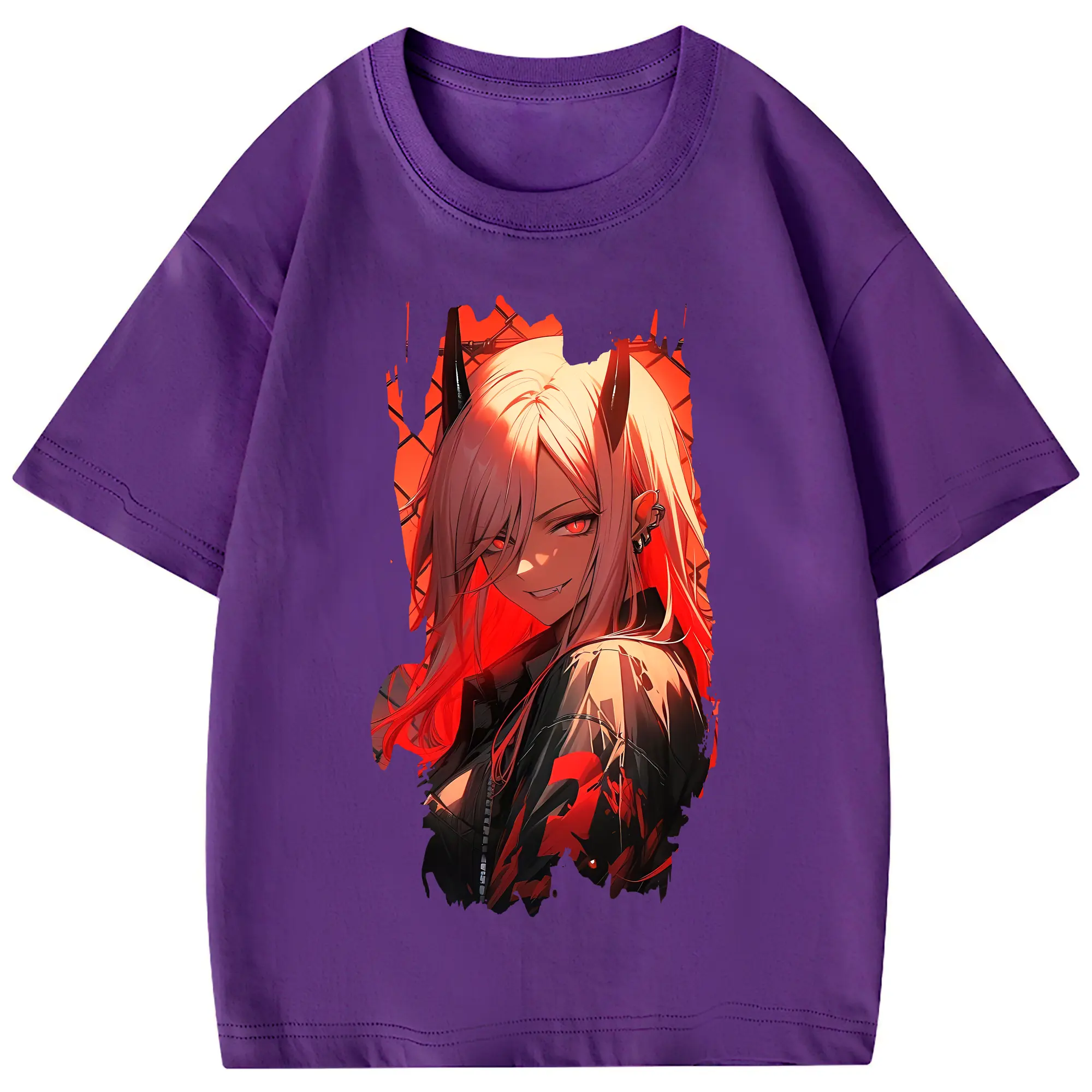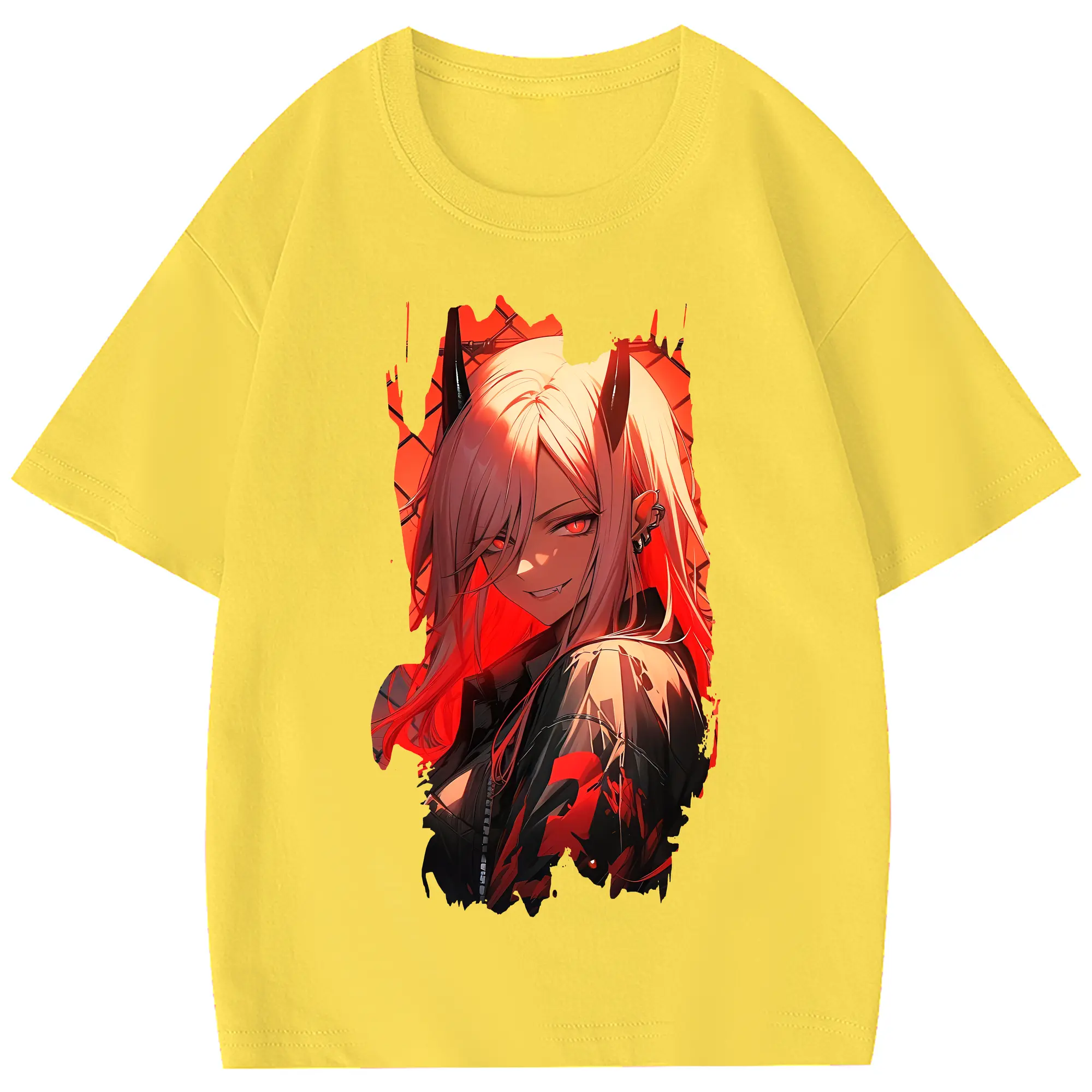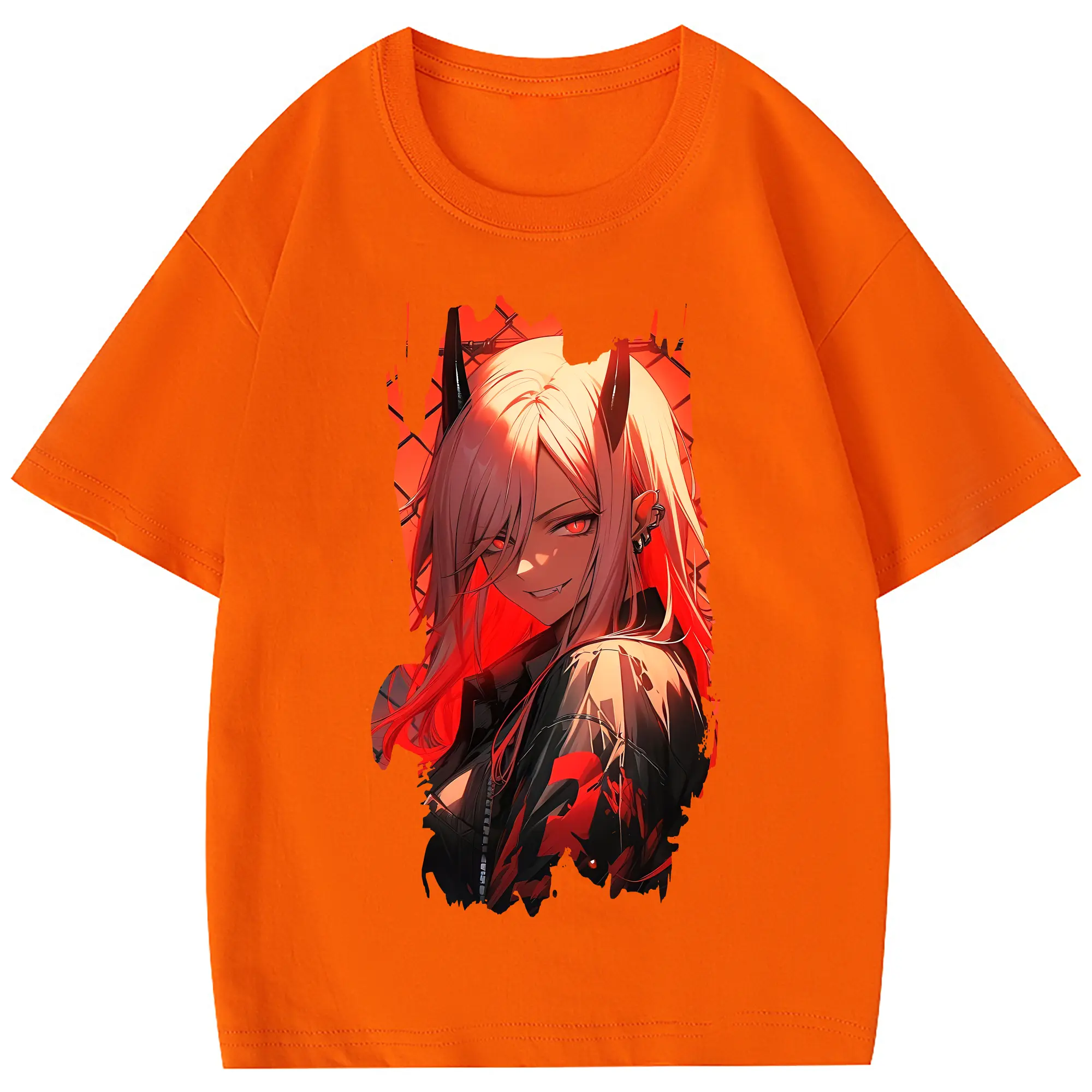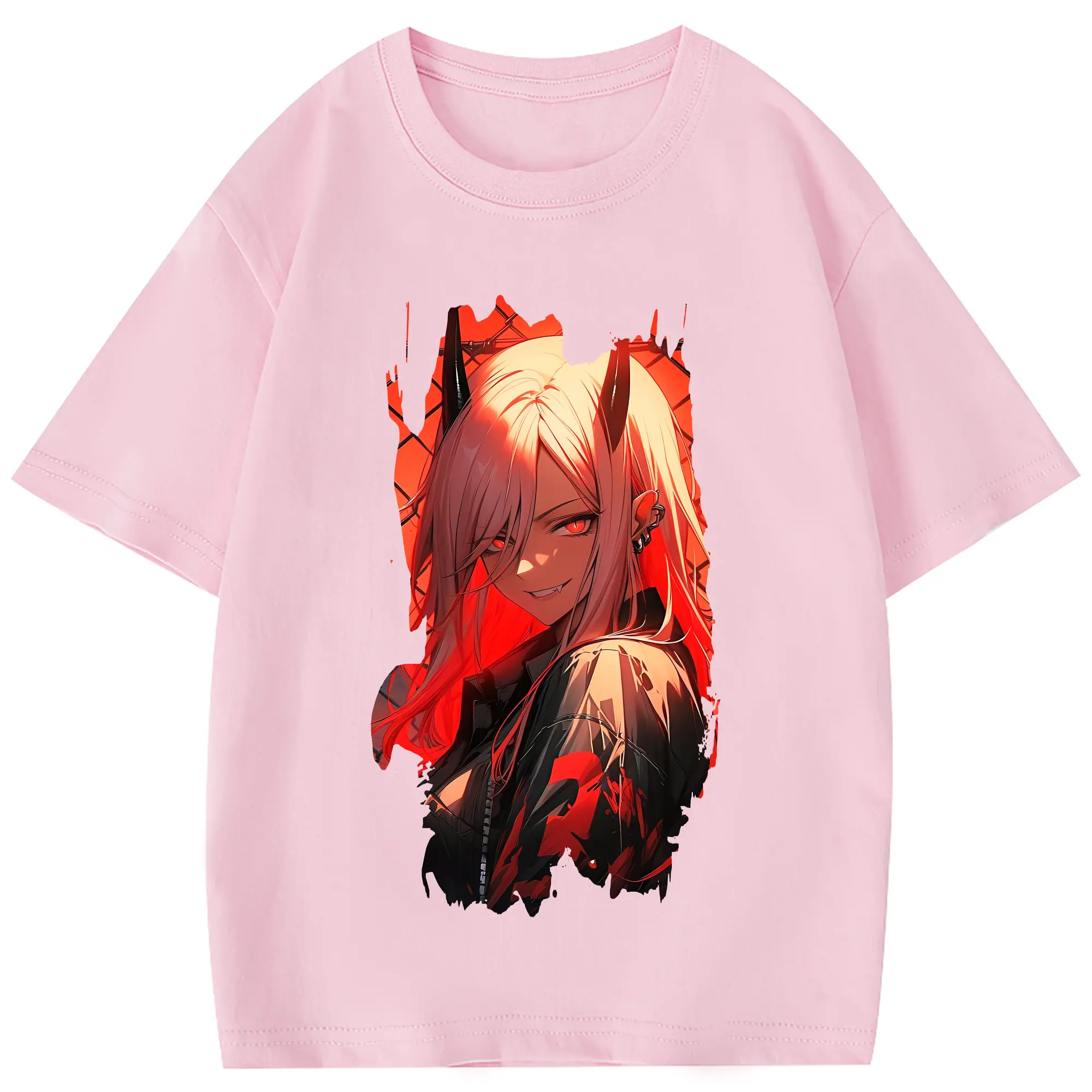 チェンソーマン グッズ,パワー - 綿100% ヴィンテージ風 半袖Tシャツ ・ フロントプリント ・ 柔らか肌触り ・ 通気性 快適 ・ スポーツ カジュアル 外出用
