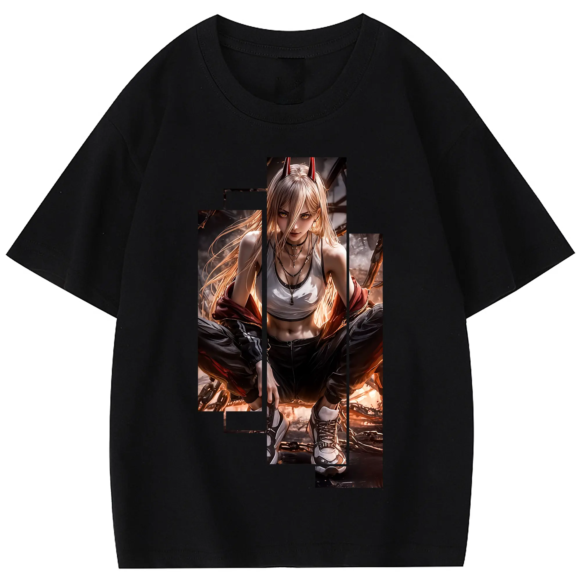 チェンソーマン グッズ,パワー - 綿100% 半袖Tシャツ ・ バックプリント ・ 快適 通気性 ・ 日常使い 散歩 スポーツ用