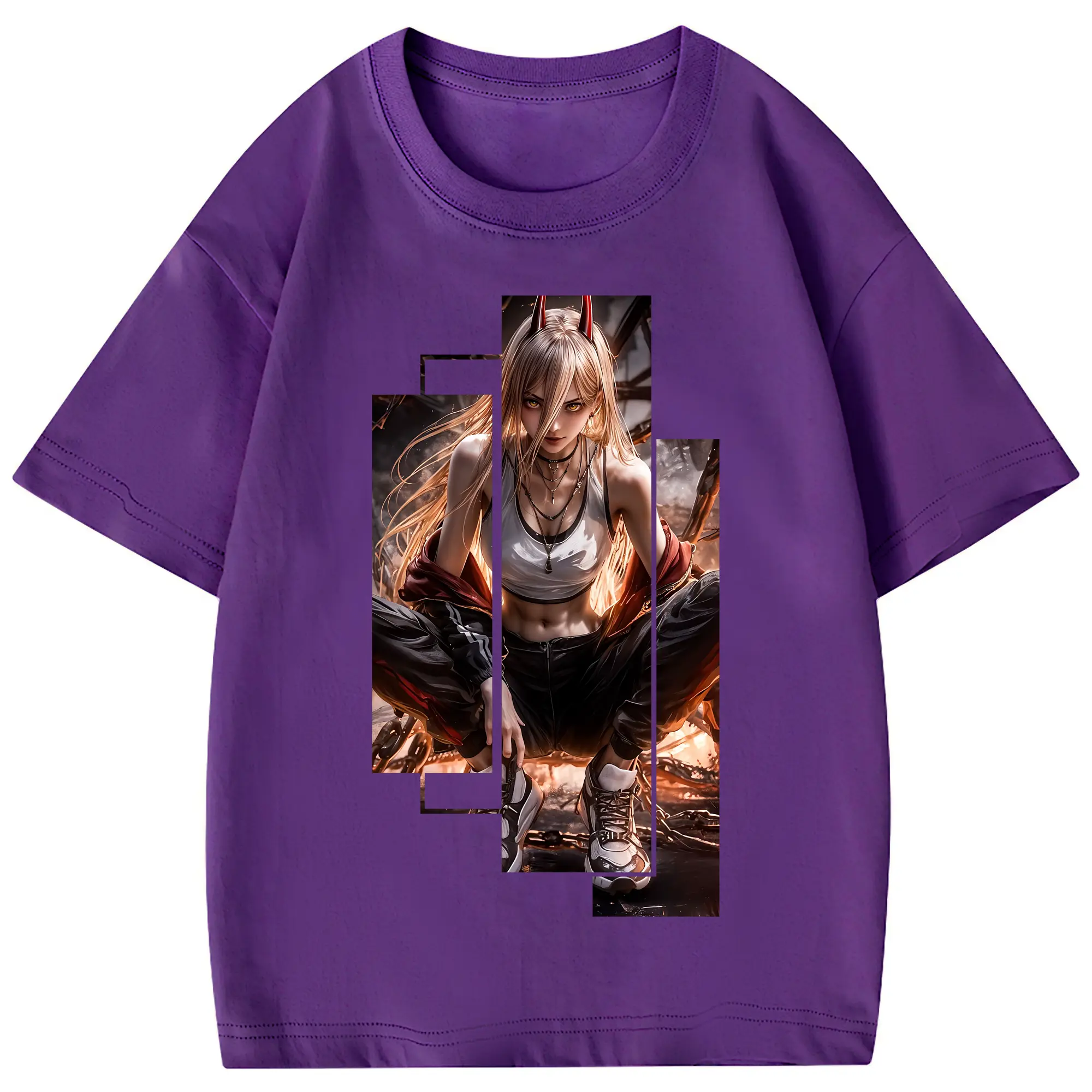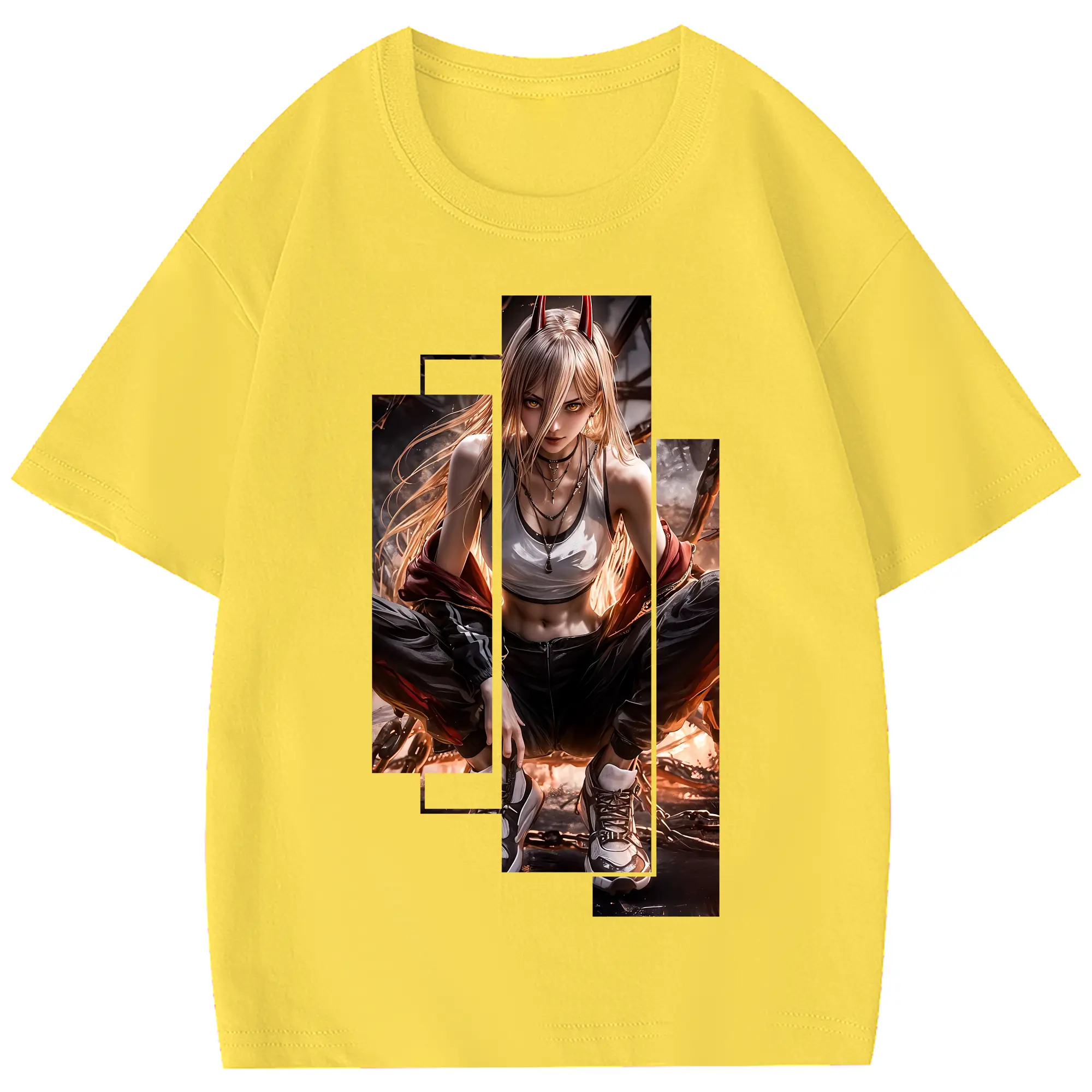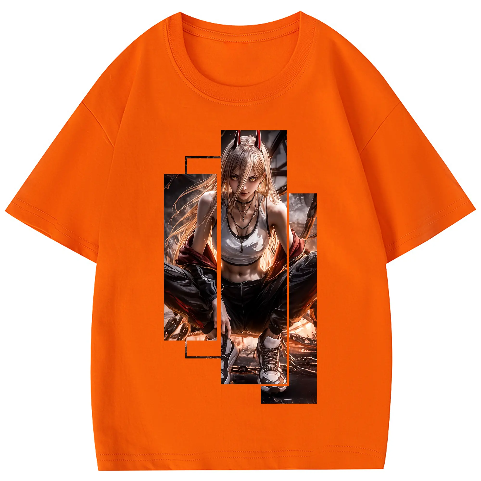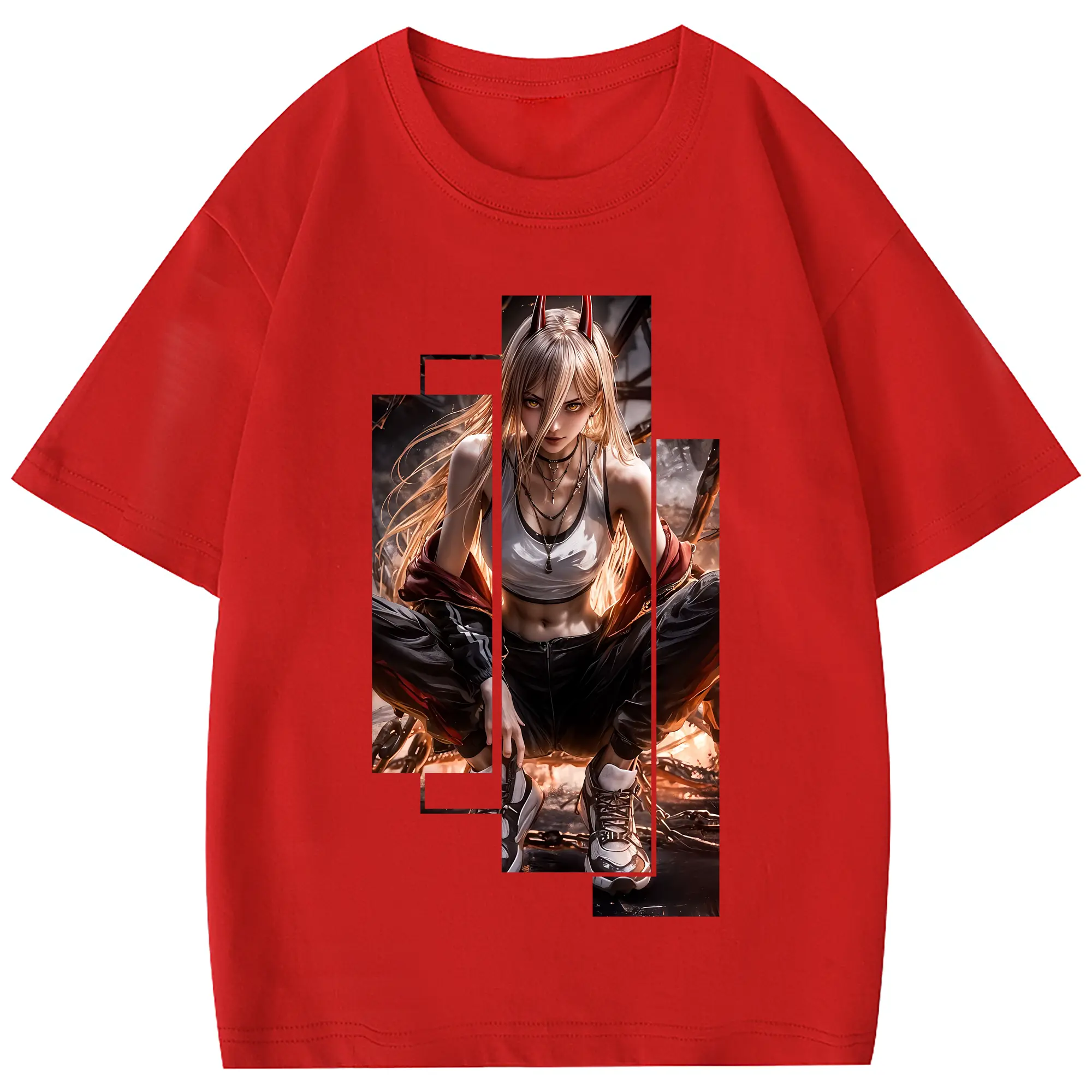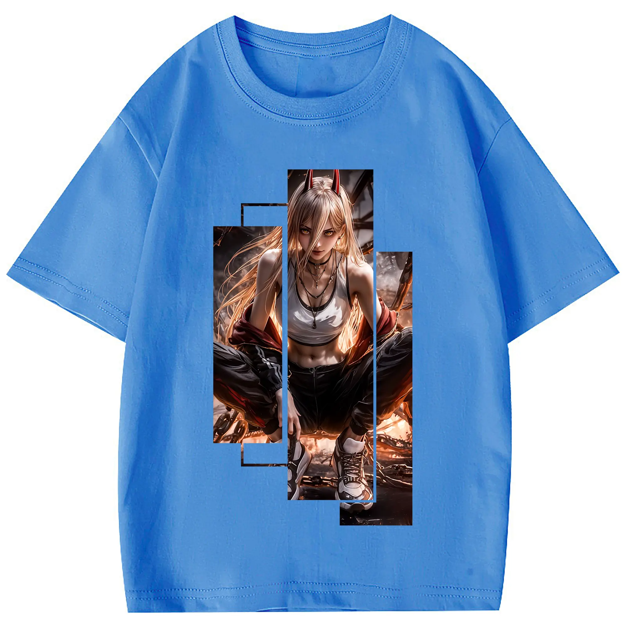 チェンソーマン グッズ,パワー - 綿100% 半袖Tシャツ ・ フロントプリント ・ 快適 通気性 ・ 日常使い 散歩 スポーツ用