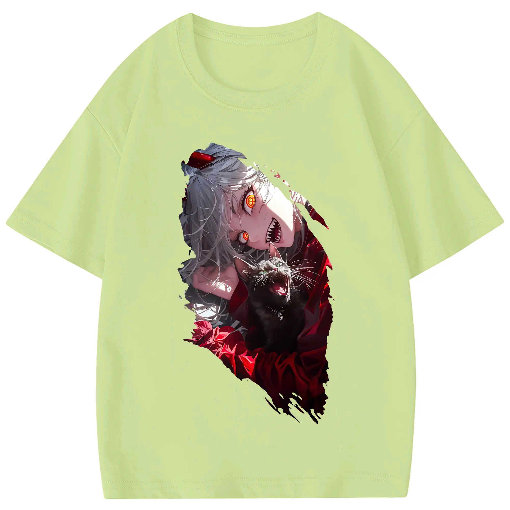 チェンソーマン グッズ,パワー - 綿100% ヴィンテージ風 半袖Tシャツ ・ フロントプリント ・ 柔らか肌触り ・ 通気性 快適 ・ スポーツ カジュアル 外出用