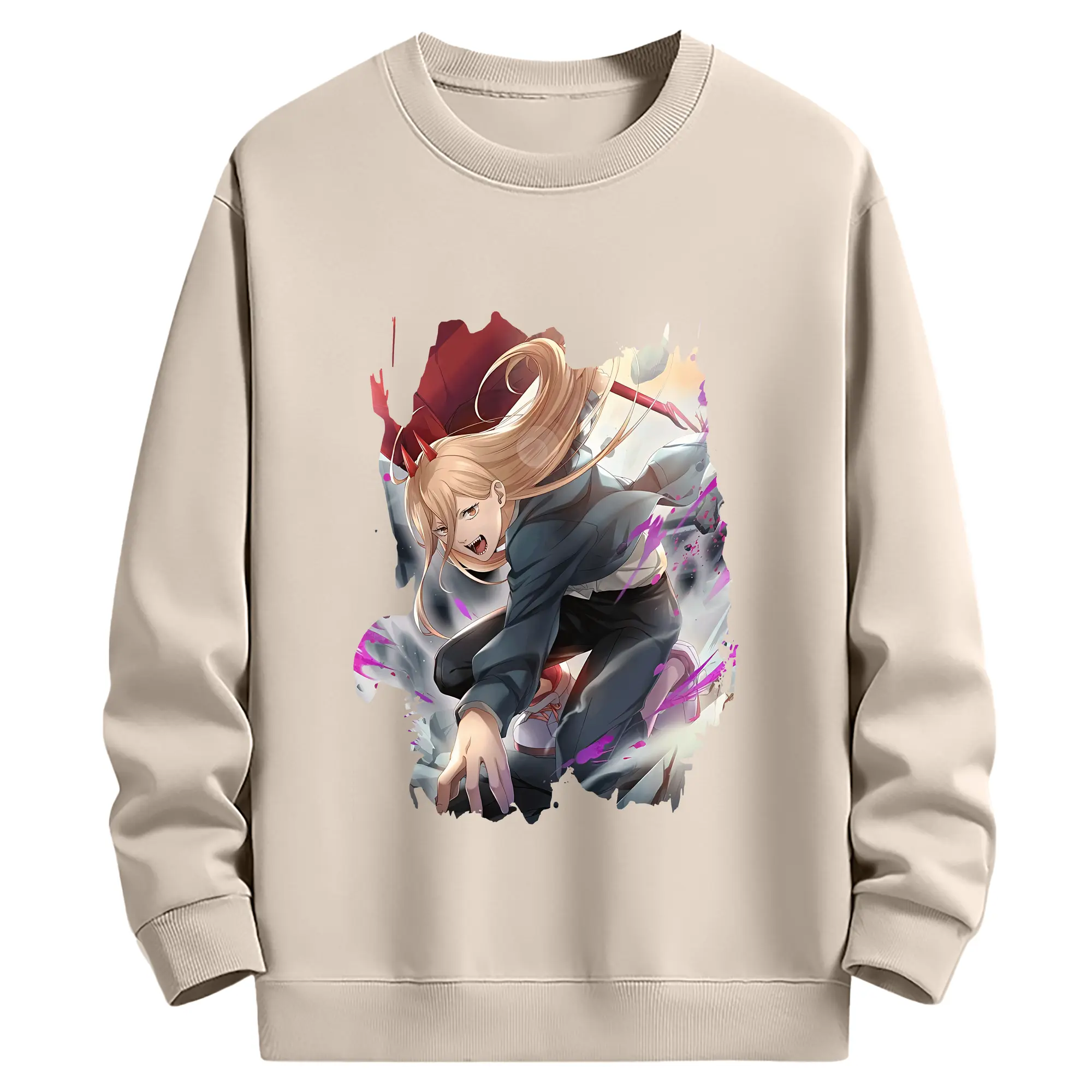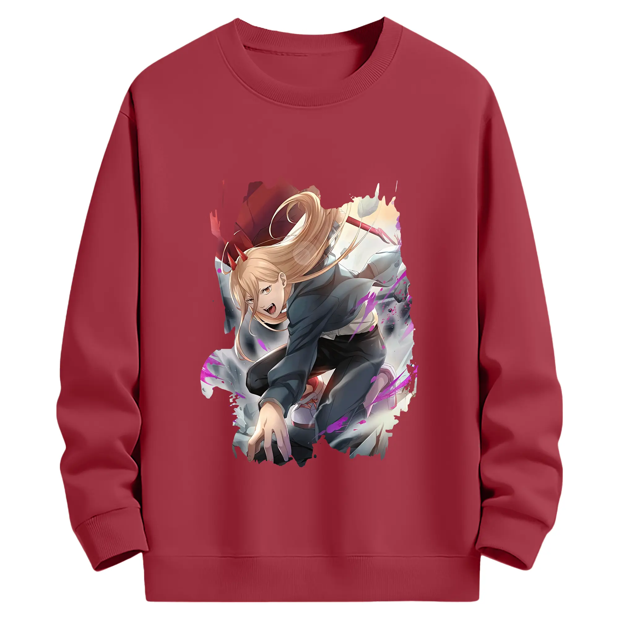 チェンソーマン グッズ,パワー - 薄手 クルーネック スウェット 裏毛260g · ポリエステル 春秋向け カジュアル 男女兼用 · トレーナー デイリー スポーツ 散歩に最適