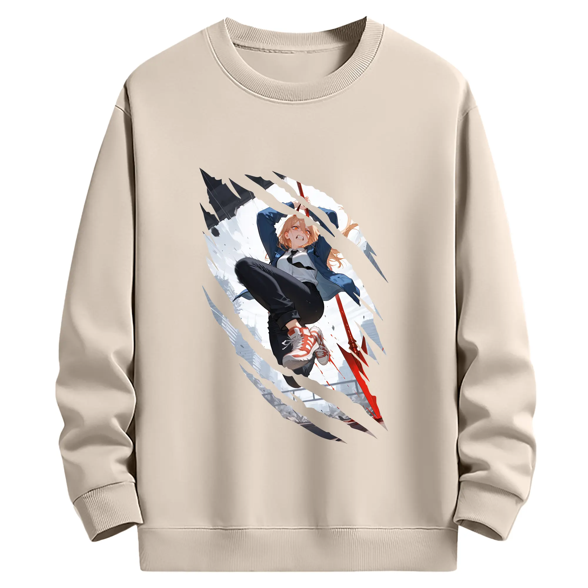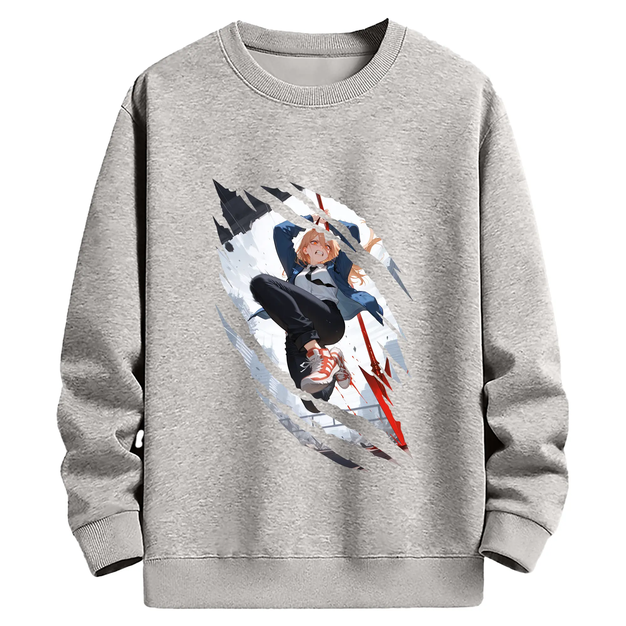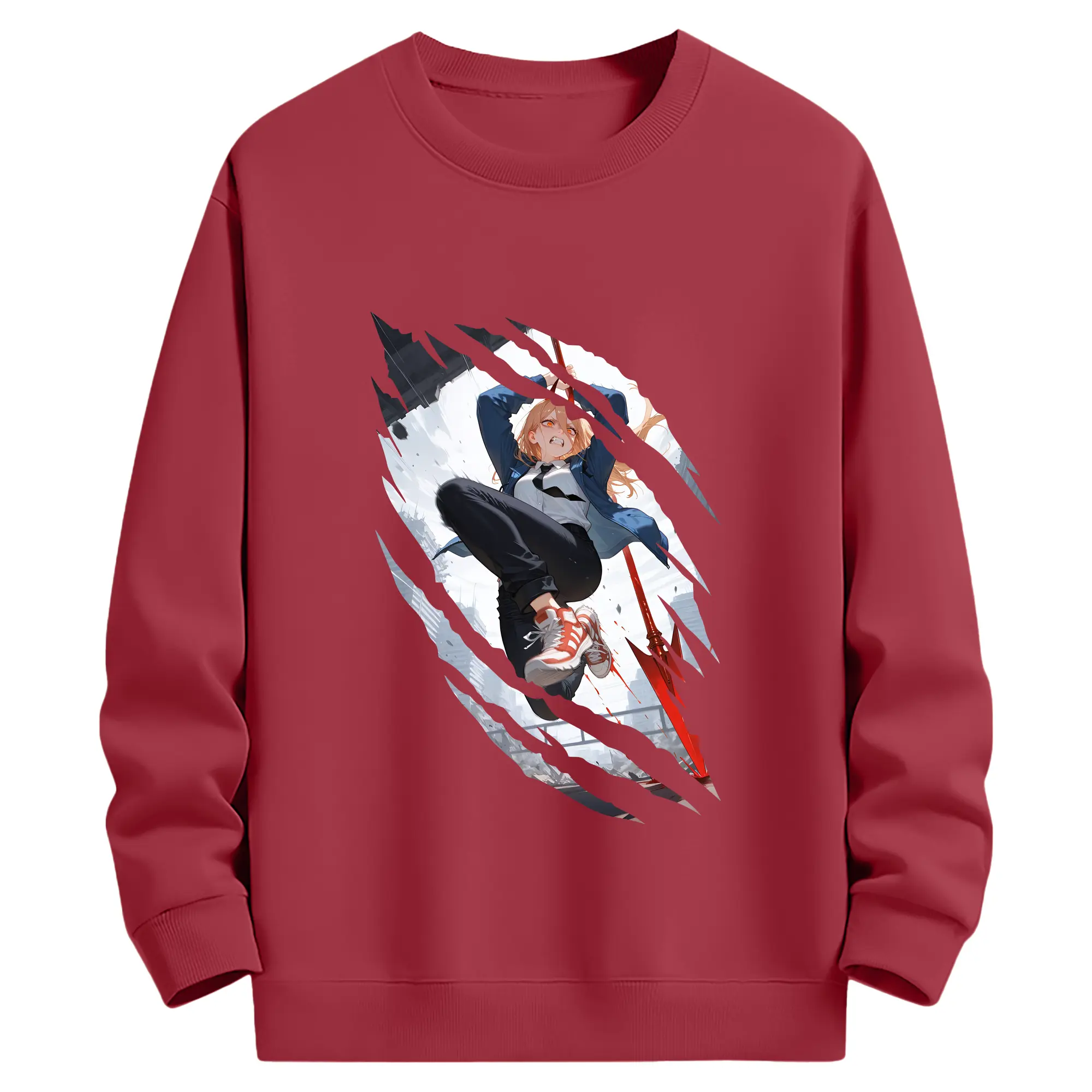 チェンソーマン グッズ,パワー - 薄手 クルーネック スウェット 裏毛260g · ポリエステル 春秋向け カジュアル 男女兼用 · トレーナー デイリー スポーツ 散歩に最適
