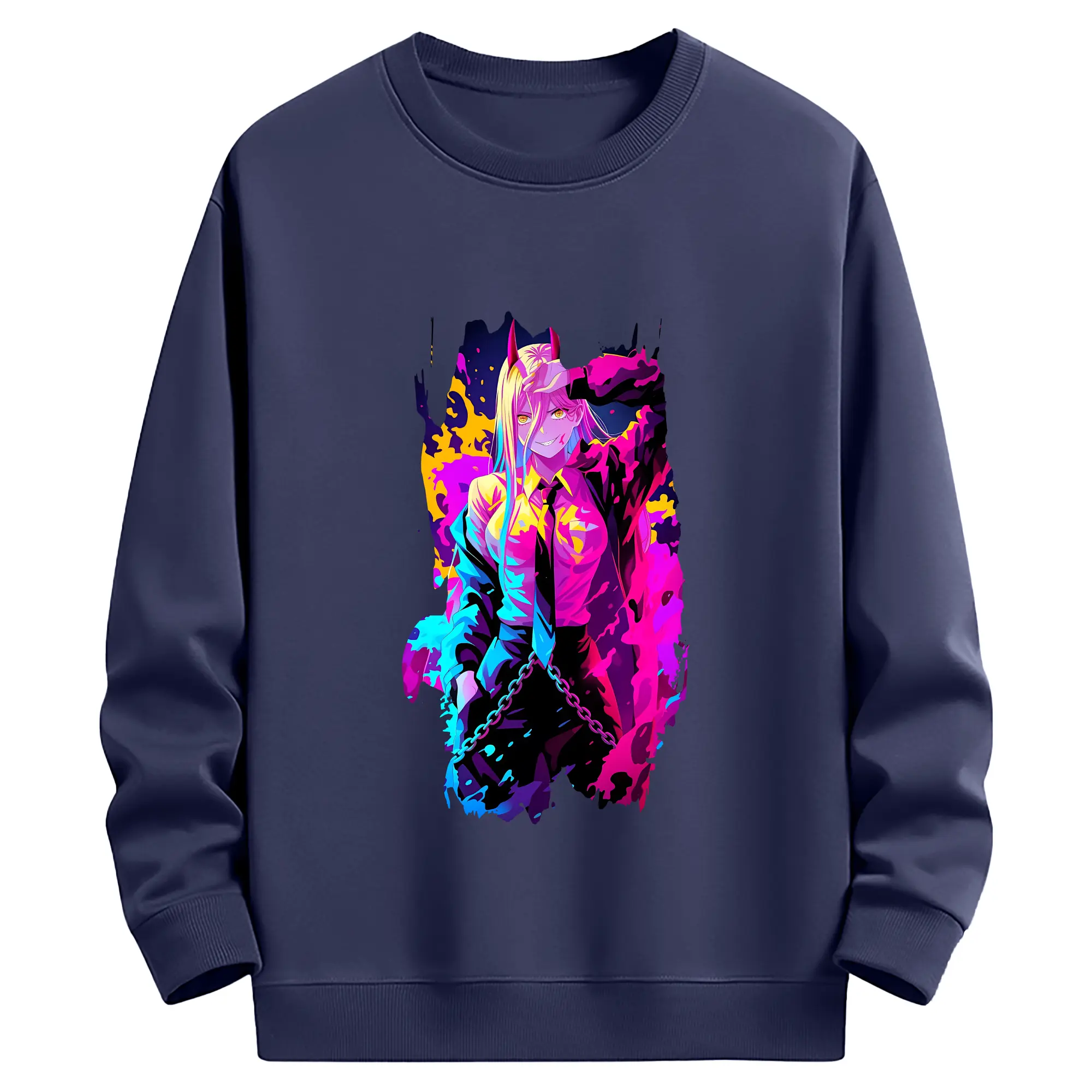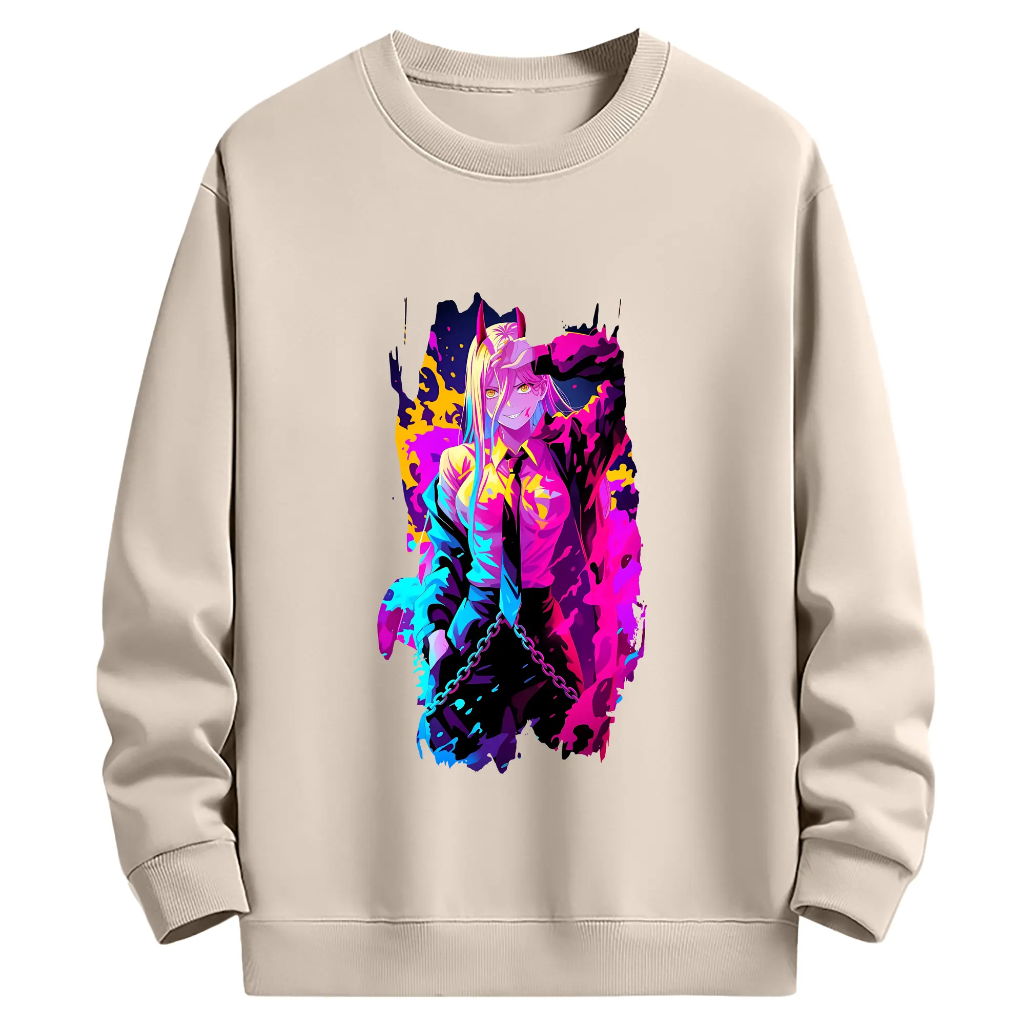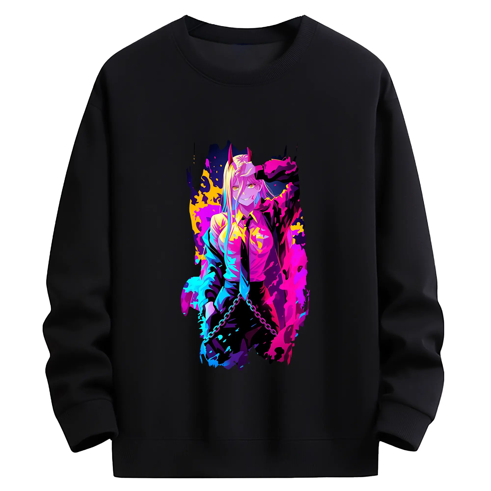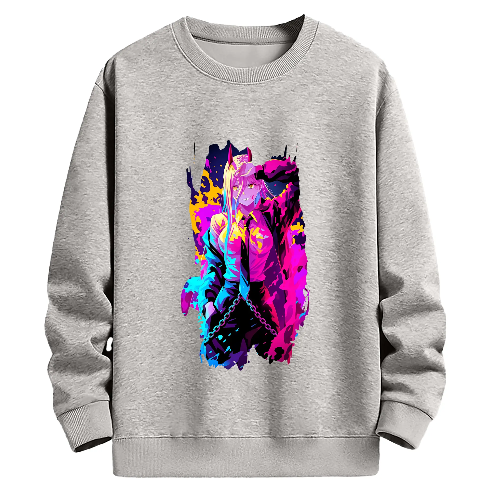 チェンソーマン グッズ,パワー - 薄手 クルーネック スウェット 裏毛260g · ポリエステル 春秋向け カジュアル 男女兼用 · トレーナー デイリー スポーツ 散歩に最適
