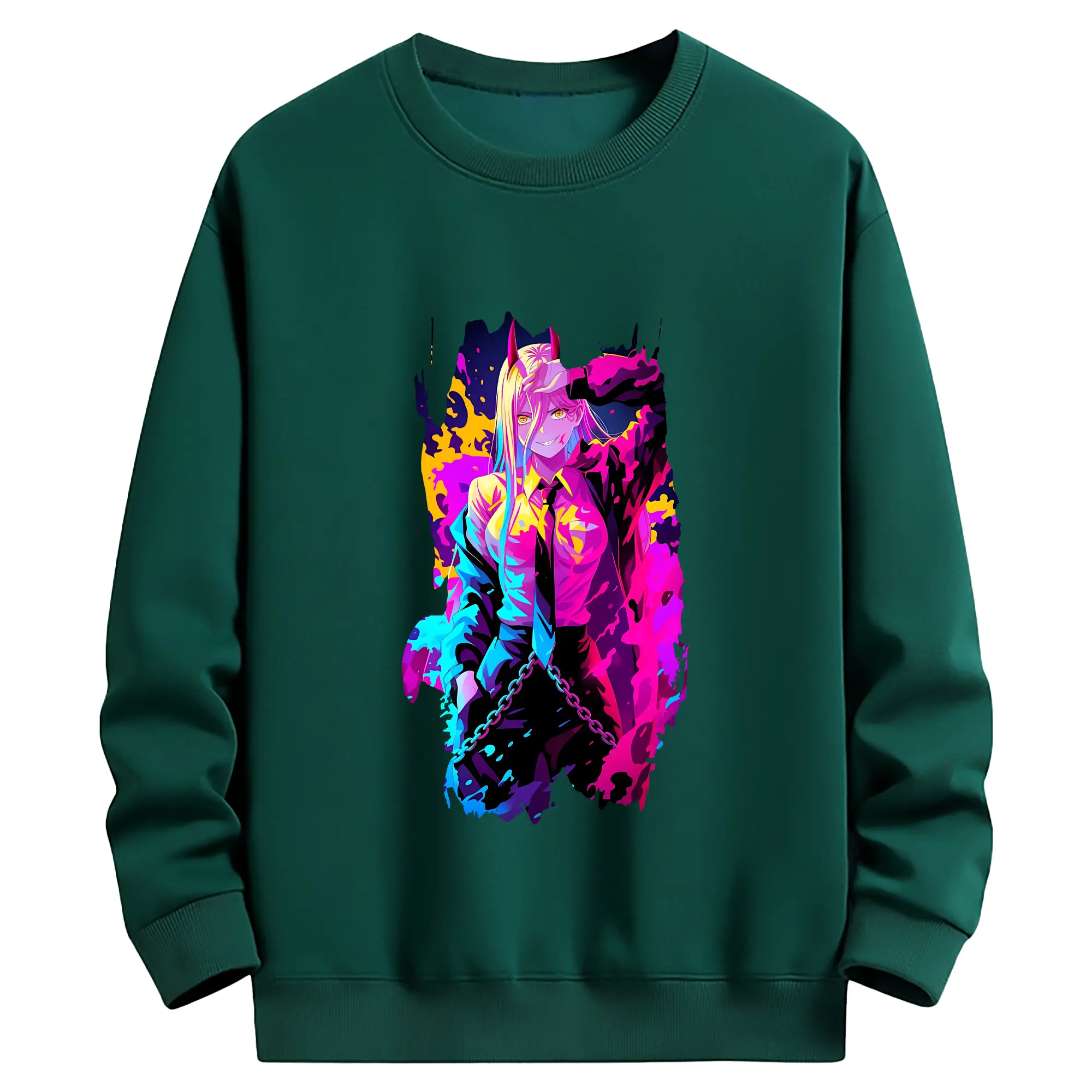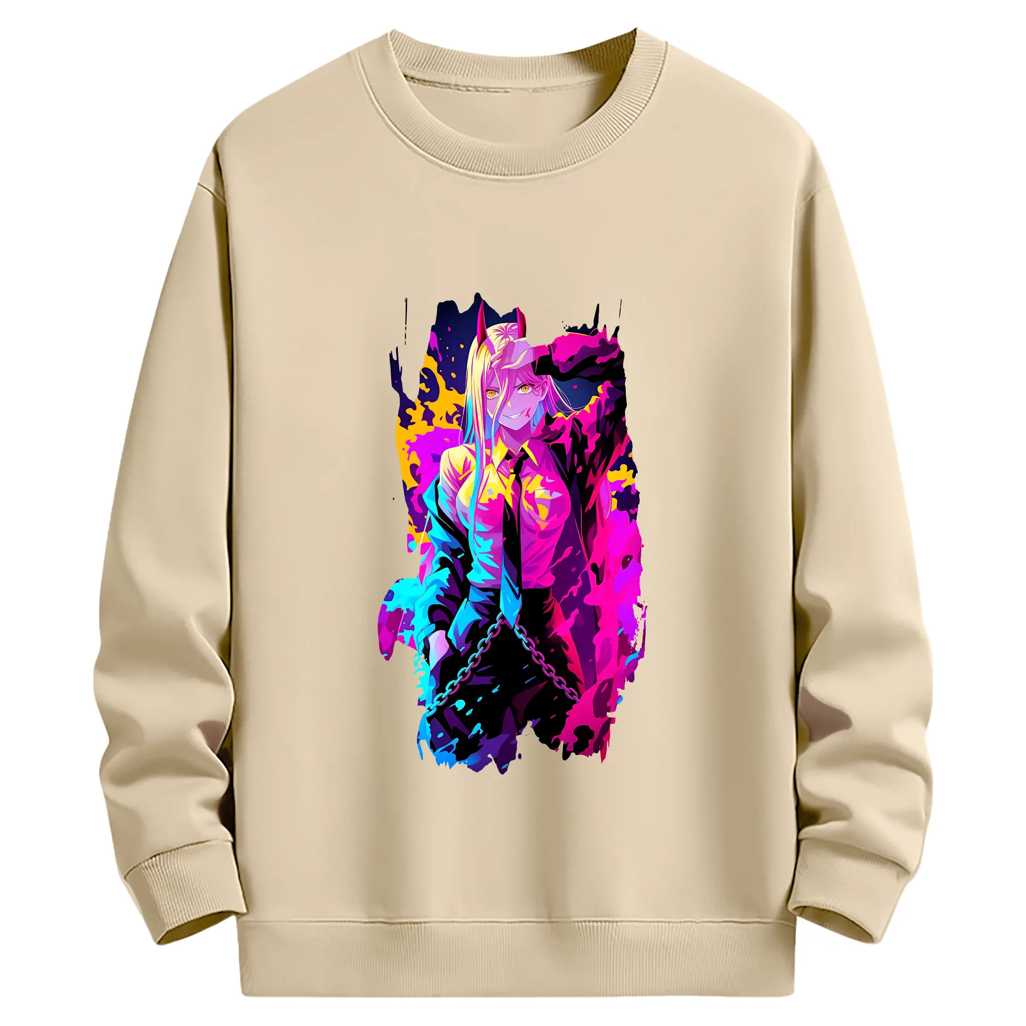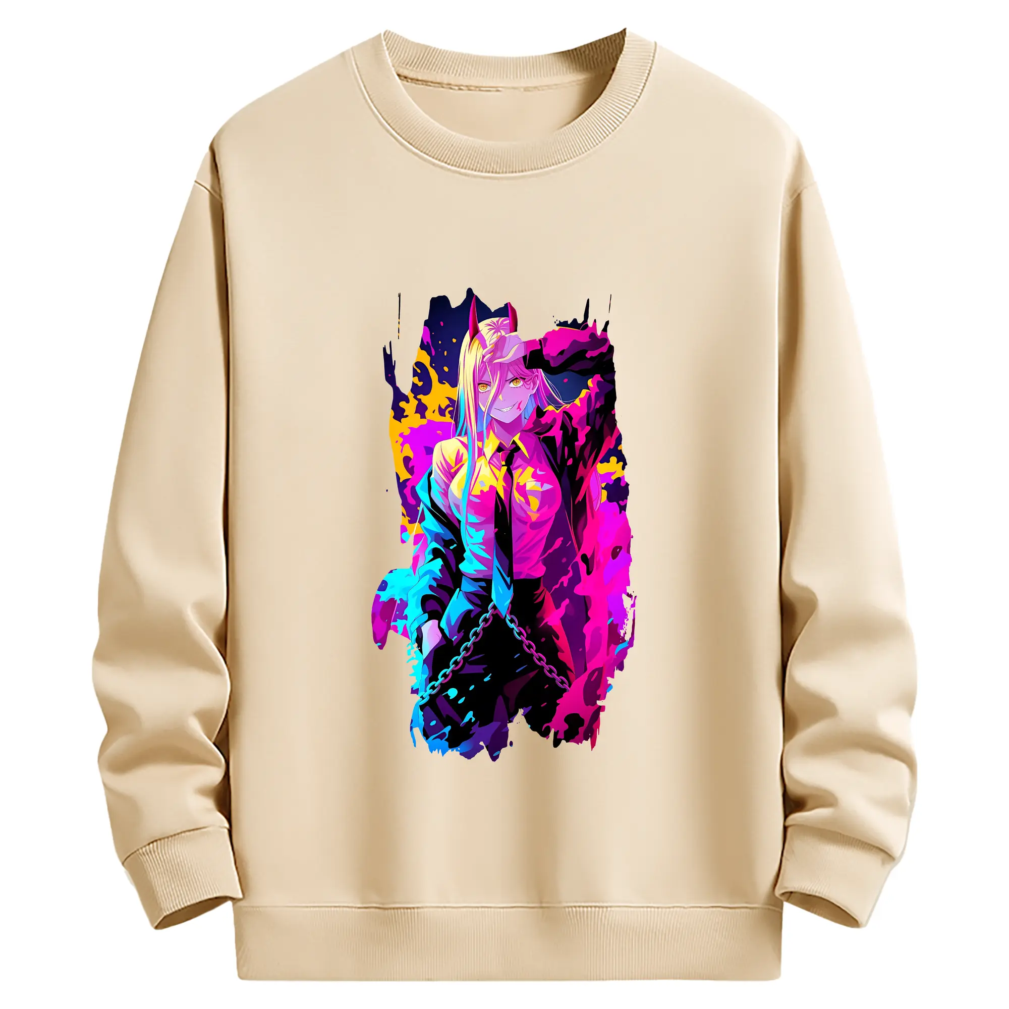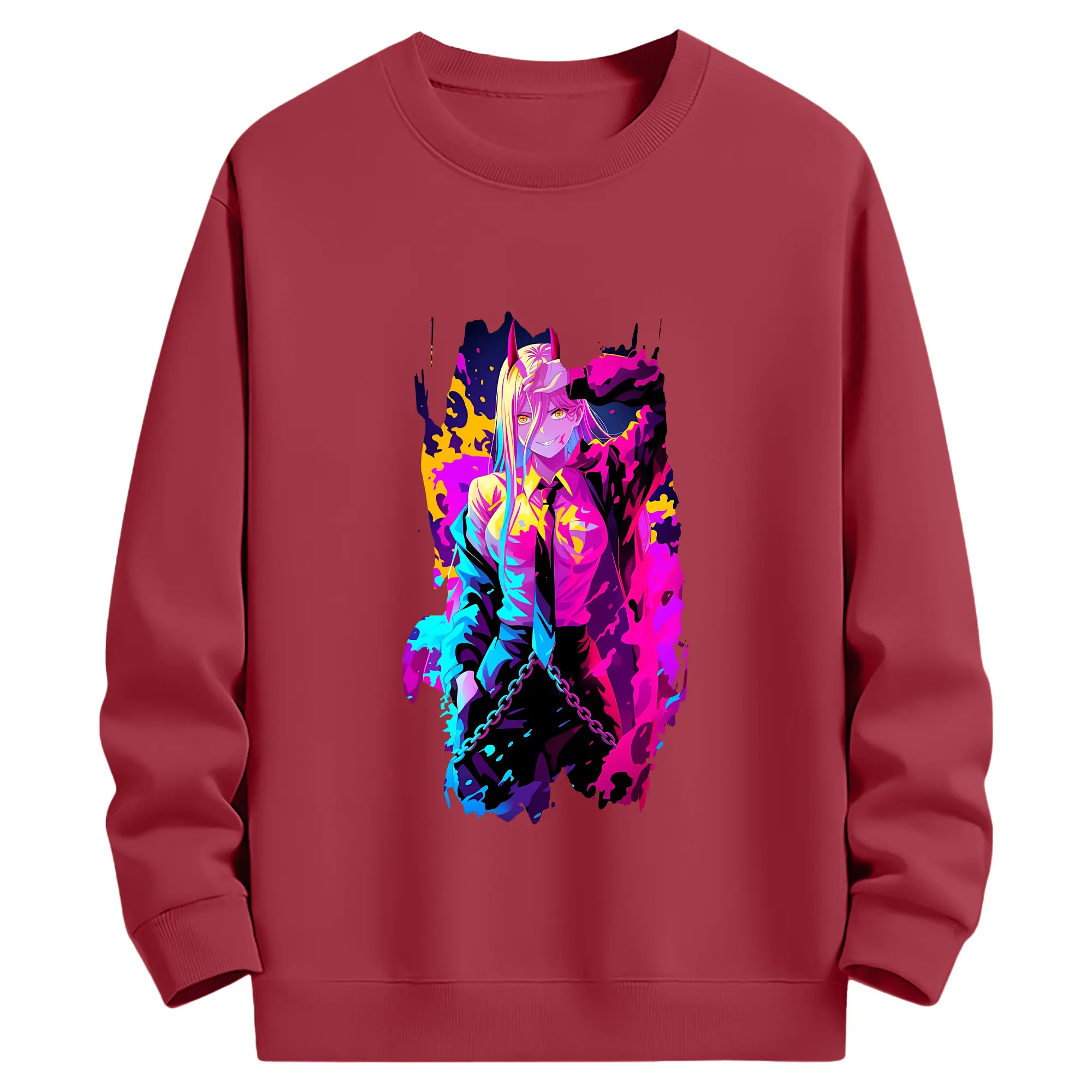 チェンソーマン グッズ,パワー - 薄手 クルーネック スウェット 裏毛260g · ポリエステル 春秋向け カジュアル 男女兼用 · トレーナー デイリー スポーツ 散歩に最適