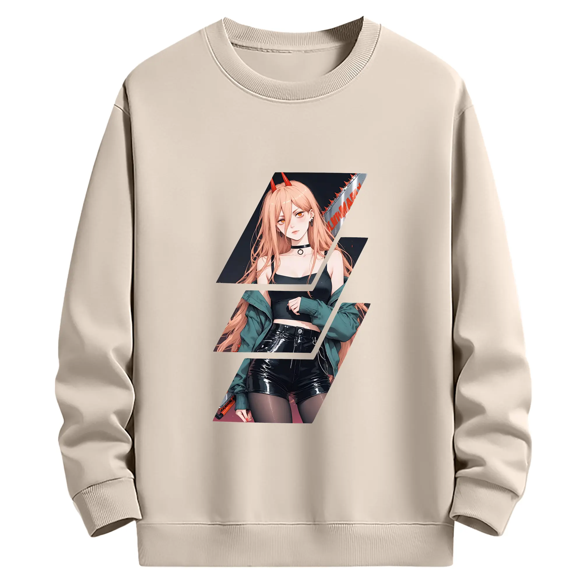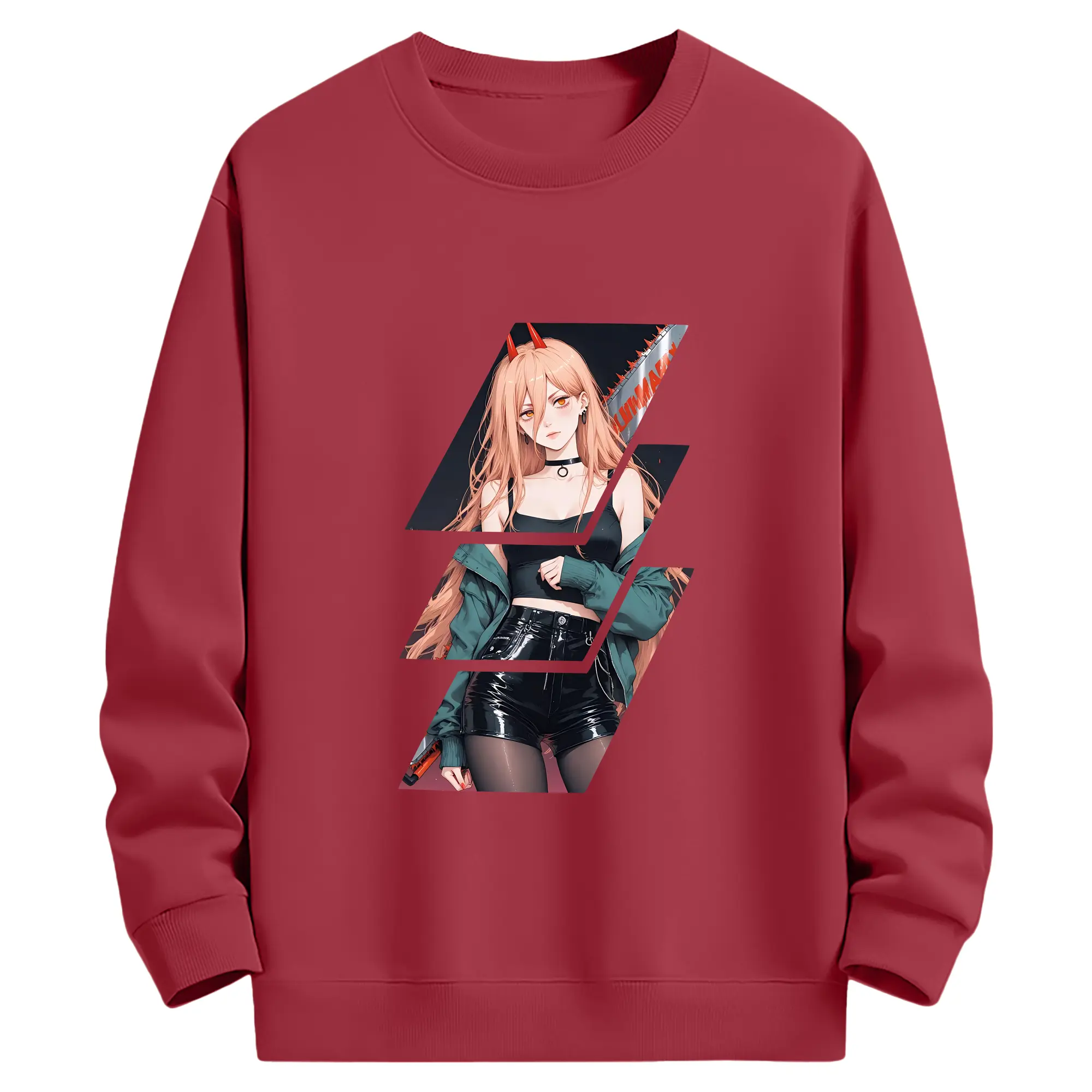 チェンソーマン グッズ,パワー - 薄手 クルーネック スウェット 裏毛260g · ポリエステル 春秋向け カジュアル 男女兼用 · トレーナー デイリー スポーツ 散歩に最適