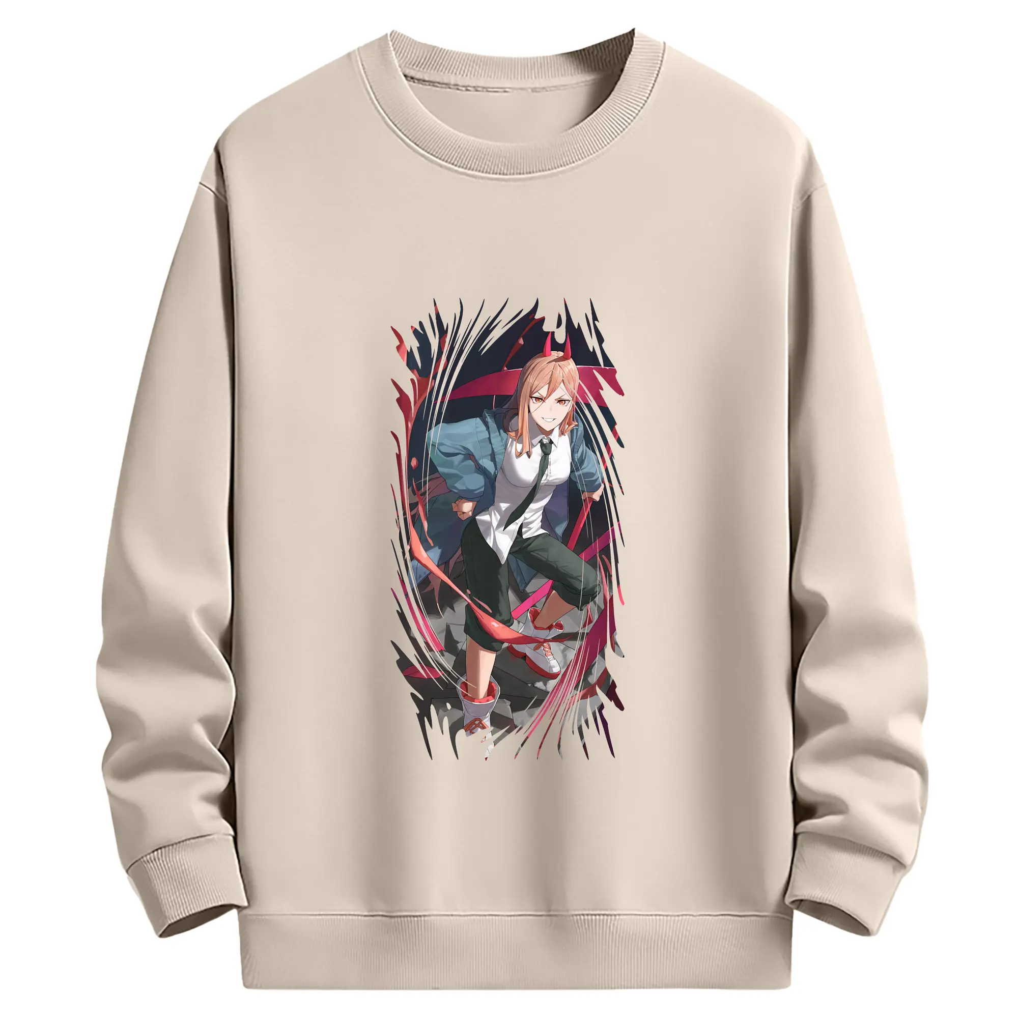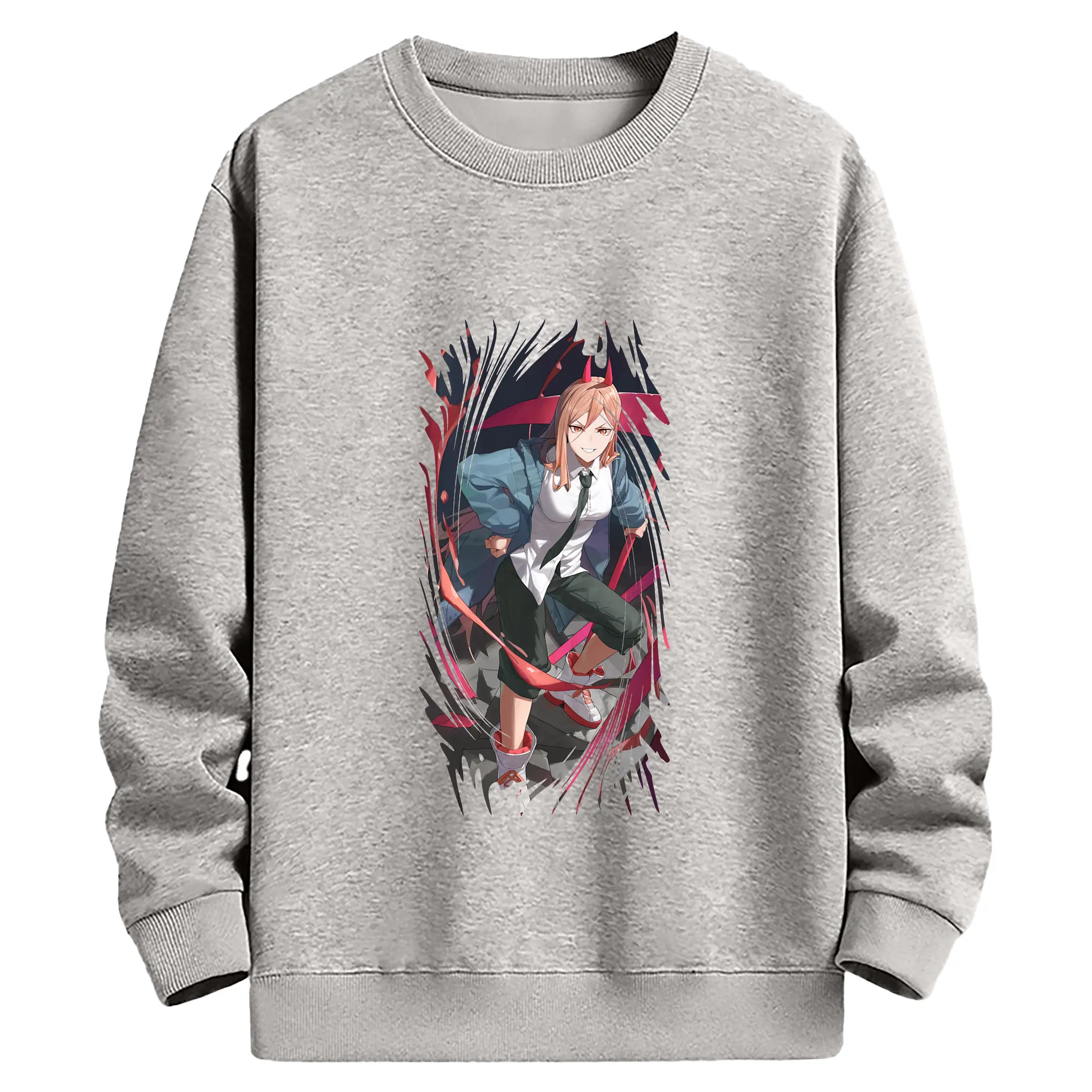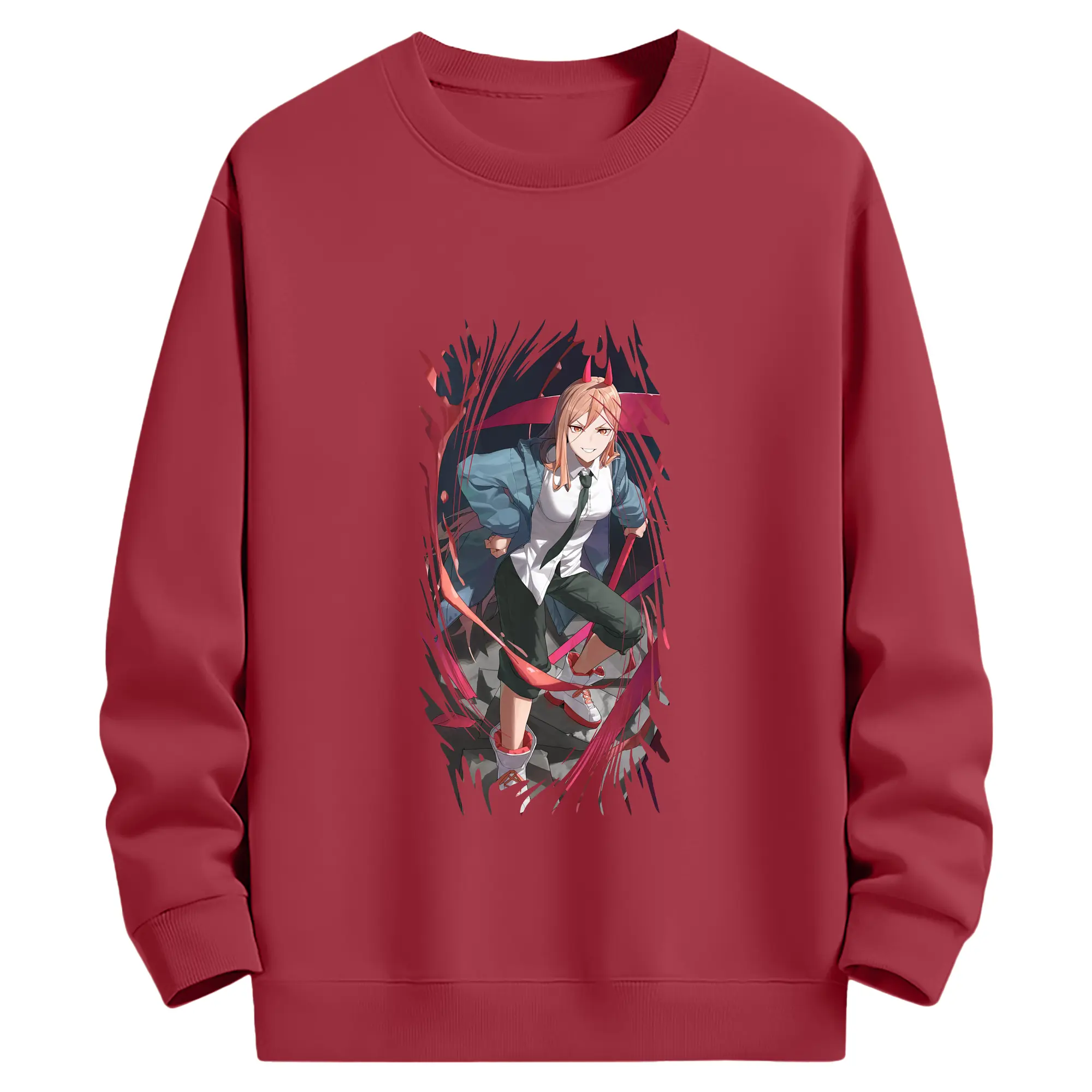 チェンソーマン グッズ,パワー - 薄手 クルーネック スウェット 裏毛260g · ポリエステル 春秋向け カジュアル 男女兼用 · トレーナー デイリー スポーツ 散歩に最適