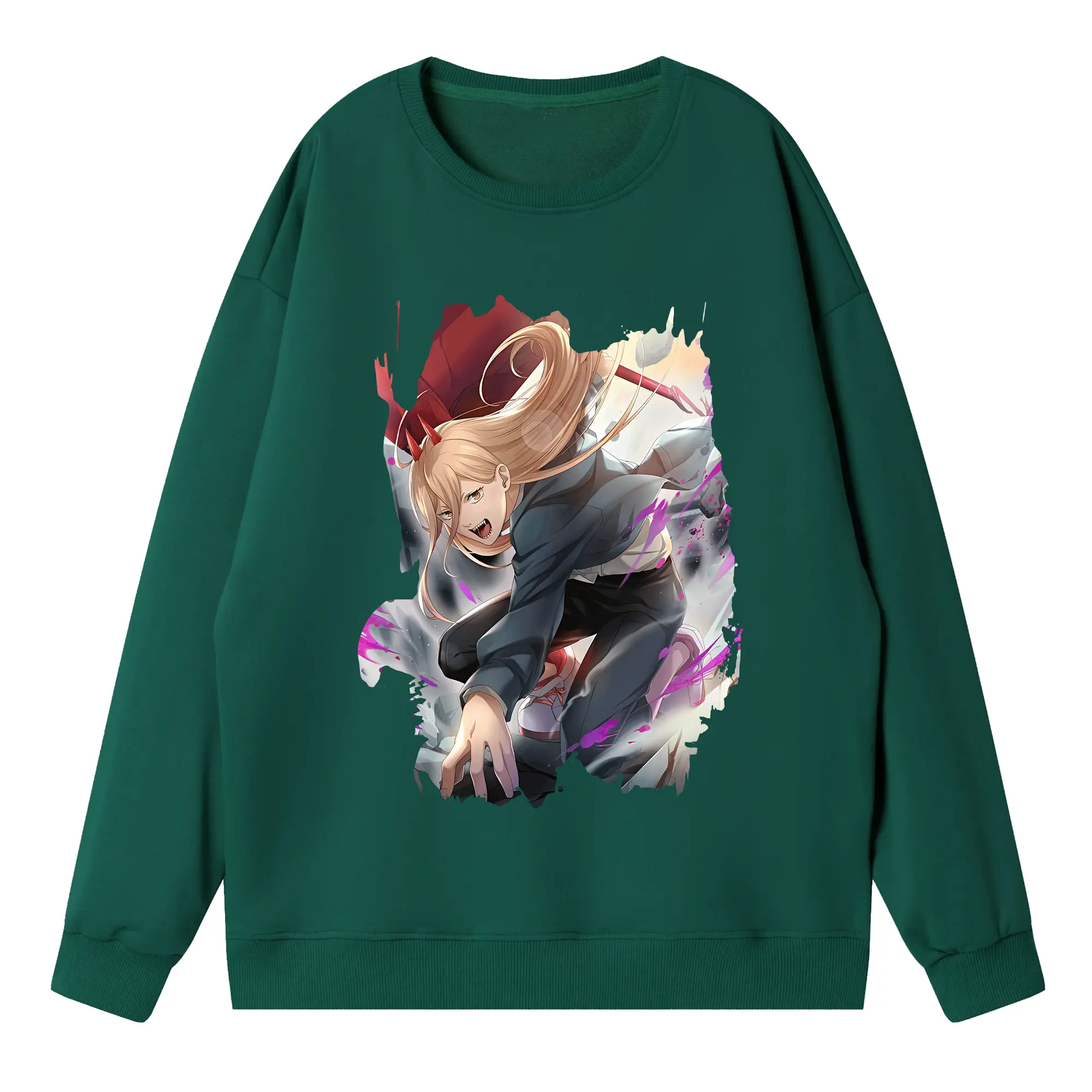 チェンソーマン グッズ,パワー - 高品質 クルーネック スウェット ・ コットン59% ポリエステル41% ・ ユニセックス 長袖 トレーナー ・ カジュアル デイリー スポーツ 散歩用