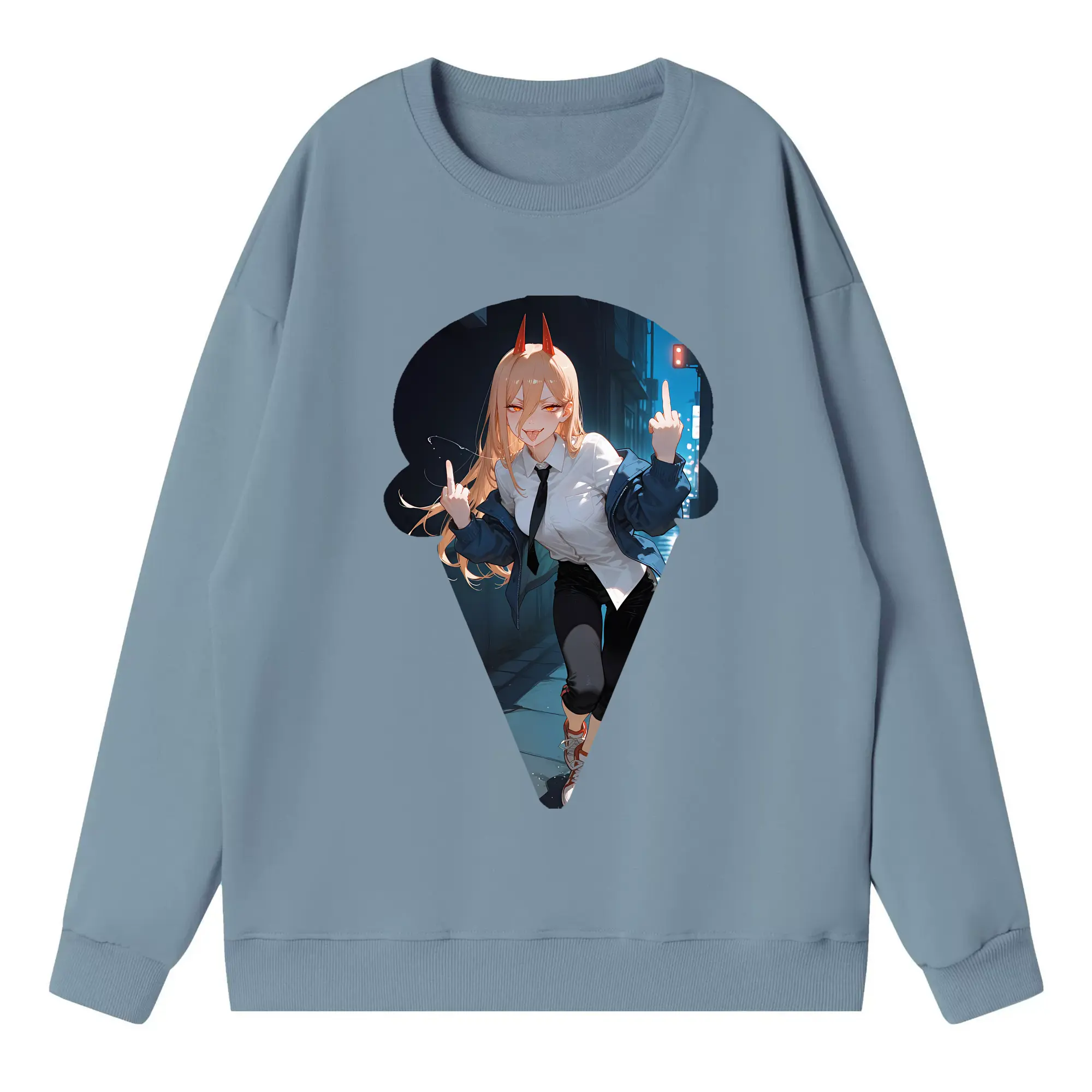 チェンソーマン グッズ,パワー - 高品質 クルーネック スウェット ・ コットン59% ポリエステル41% ・ ユニセックス 長袖 トレーナー ・ カジュアル デイリー スポーツ 散歩用