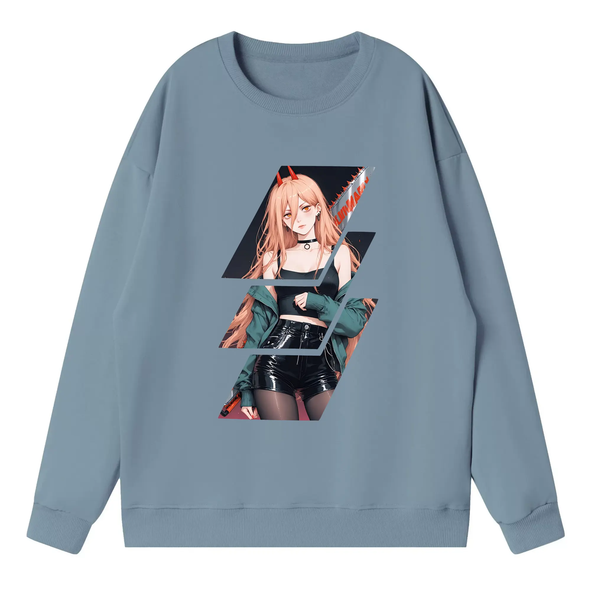チェンソーマン グッズ,パワー - 高品質 クルーネック スウェット ・ コットン59% ポリエステル41% ・ ユニセックス 長袖 トレーナー ・ カジュアル デイリー スポーツ 散歩用