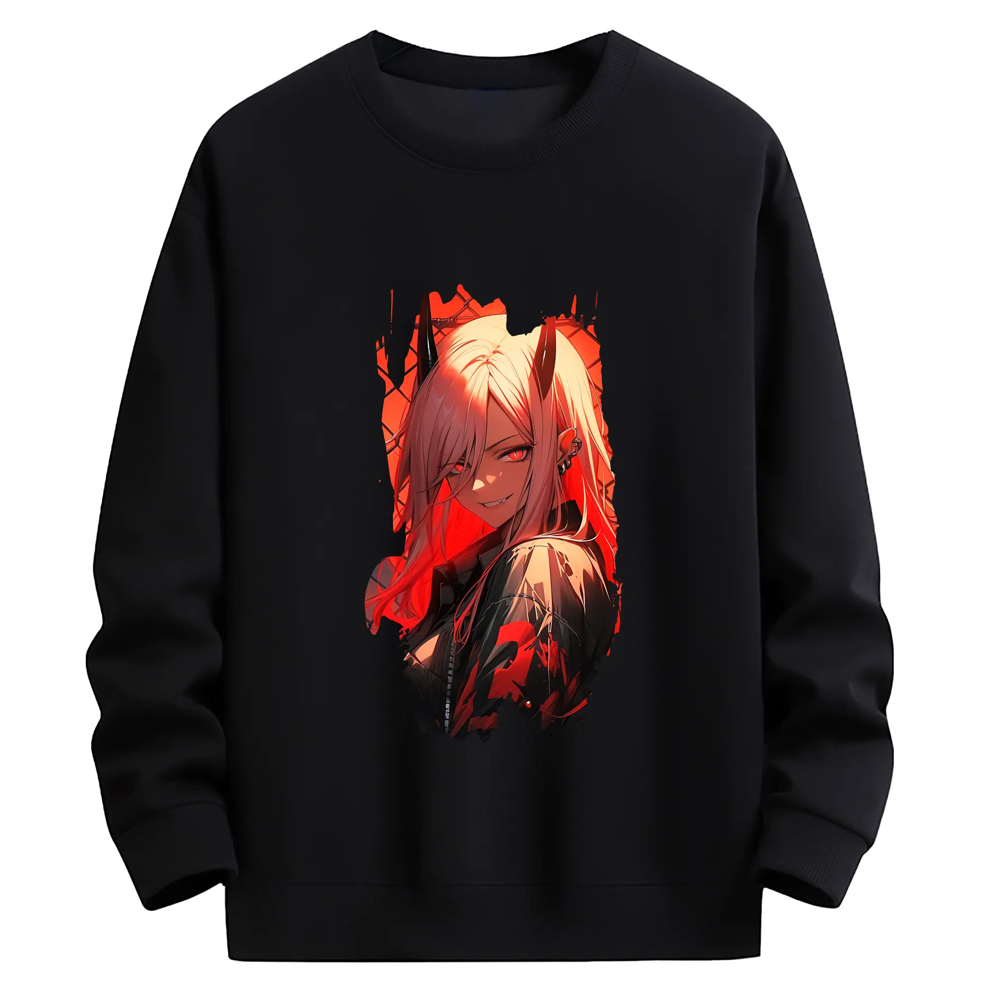 チェンソーマン グッズ,パワー - 高品質 クルーネック スウェット ・ コットン59% ポリエステル41% ・ ユニセックス 長袖 トレーナー ・ カジュアル デイリー スポーツ 散歩用