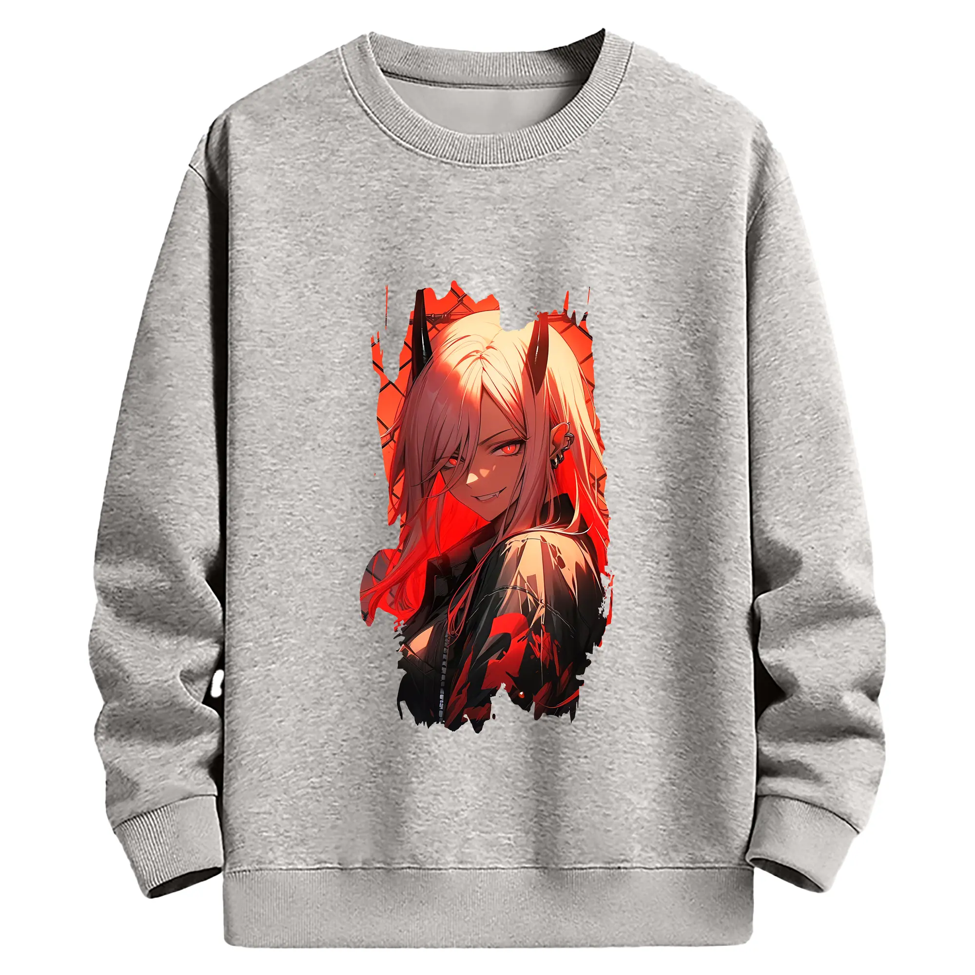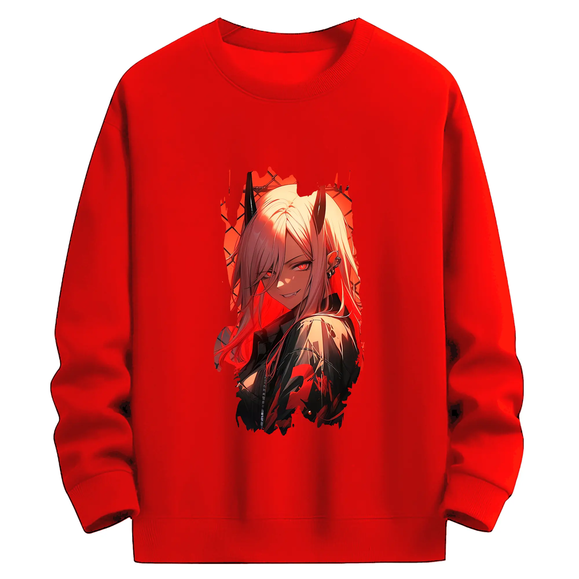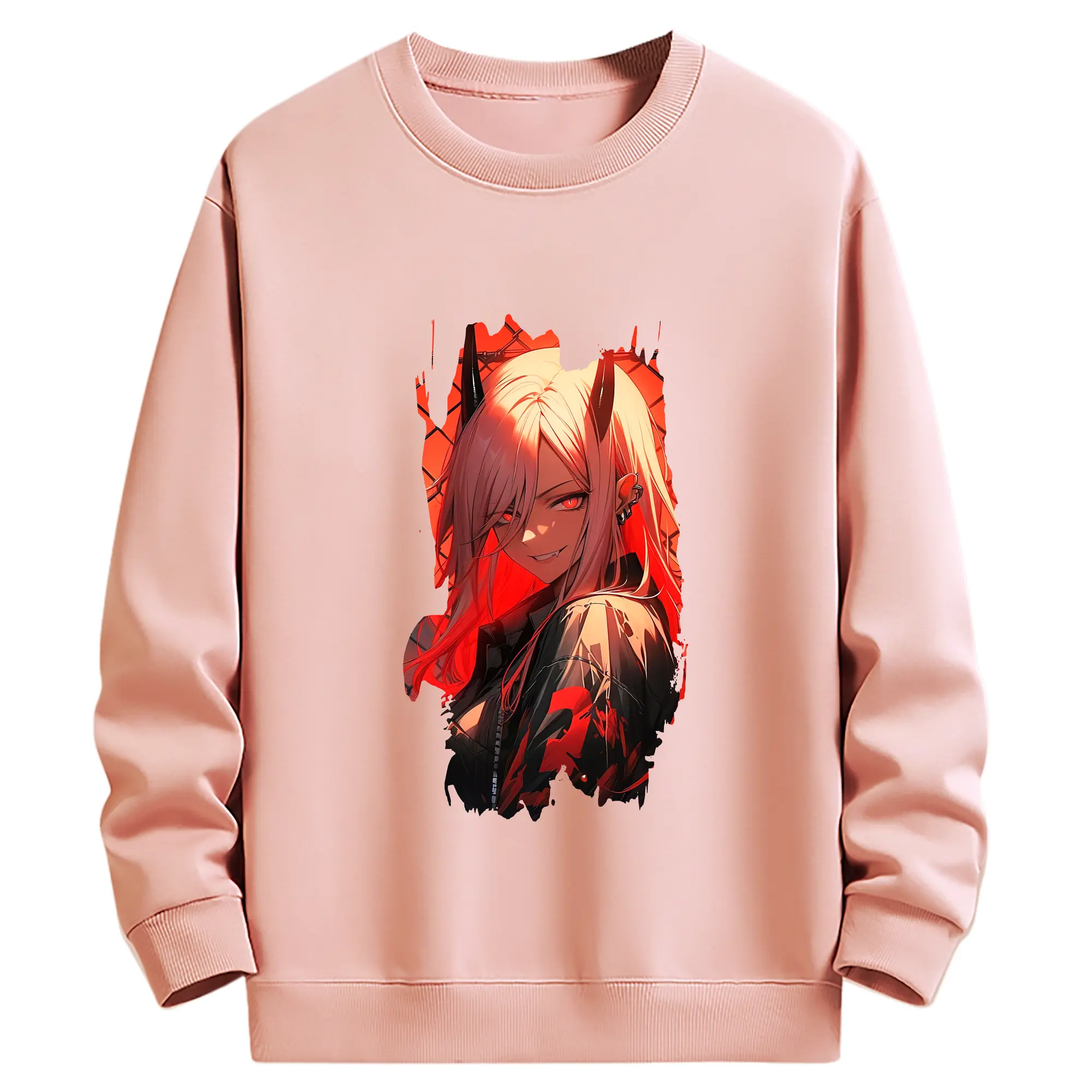 チェンソーマン グッズ,パワー - 薄手 クルーネック スウェット 裏毛260g · ポリエステル 春秋向け カジュアル 男女兼用 · トレーナー デイリー スポーツ 散歩に最適