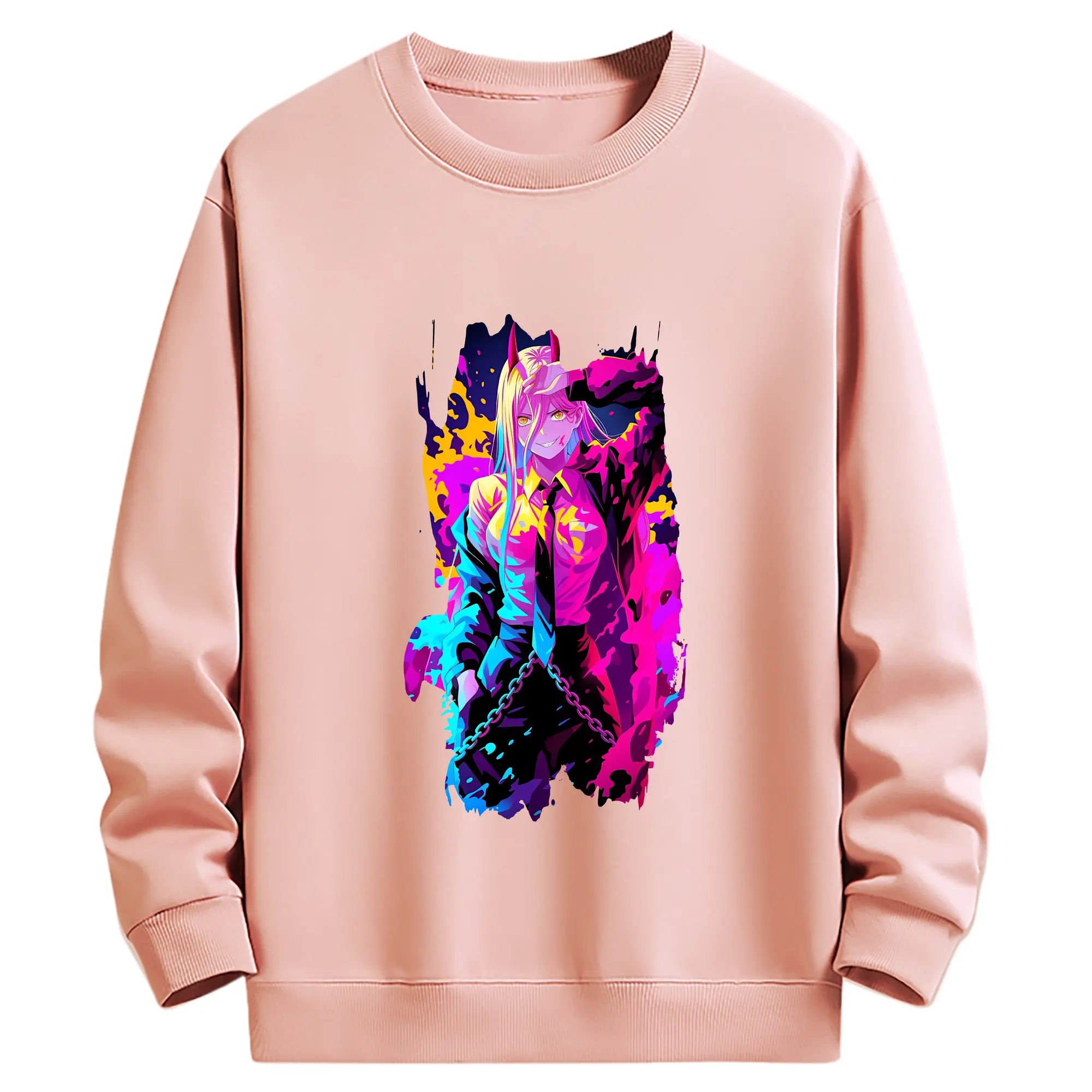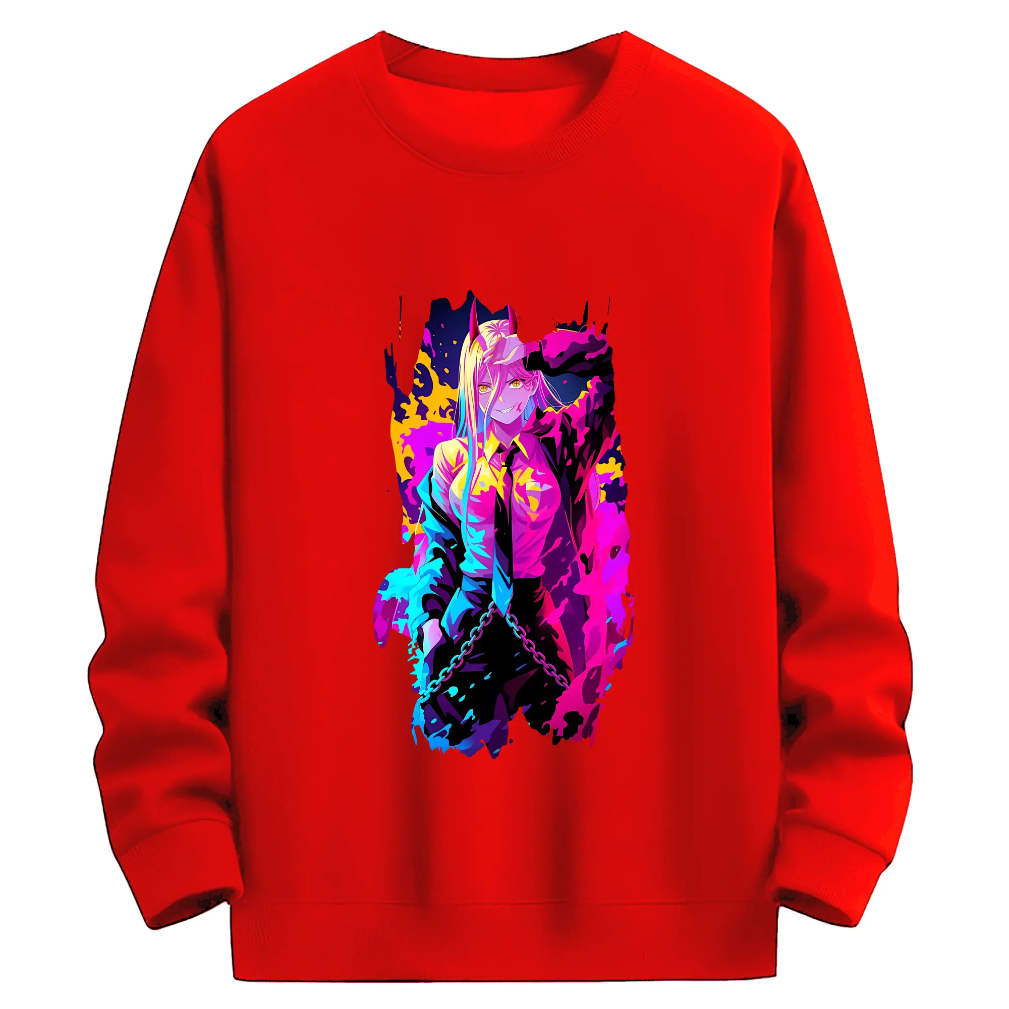 チェンソーマン グッズ,パワー - 薄手 クルーネック スウェット 裏毛260g · ポリエステル 春秋向け カジュアル 男女兼用 · トレーナー デイリー スポーツ 散歩に最適