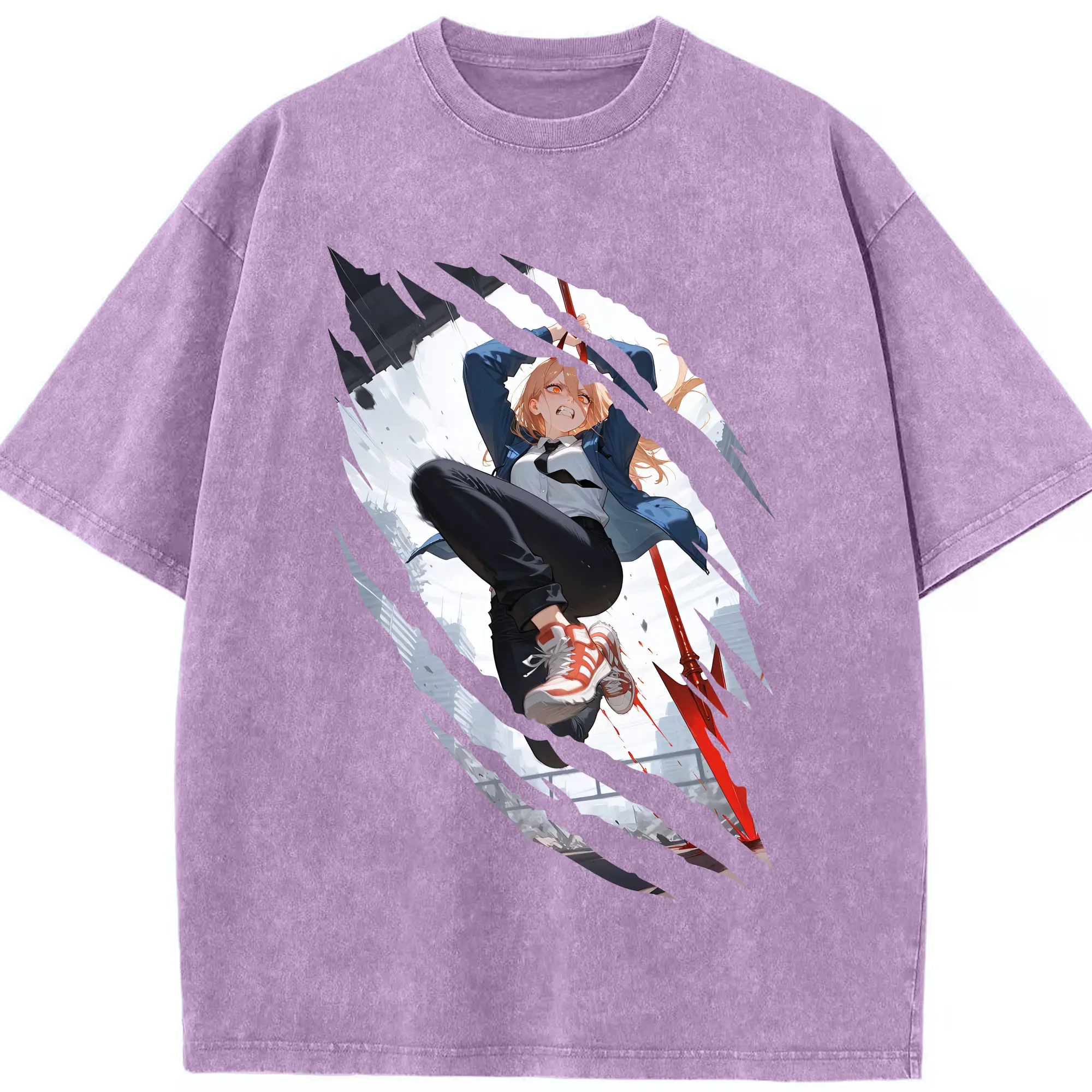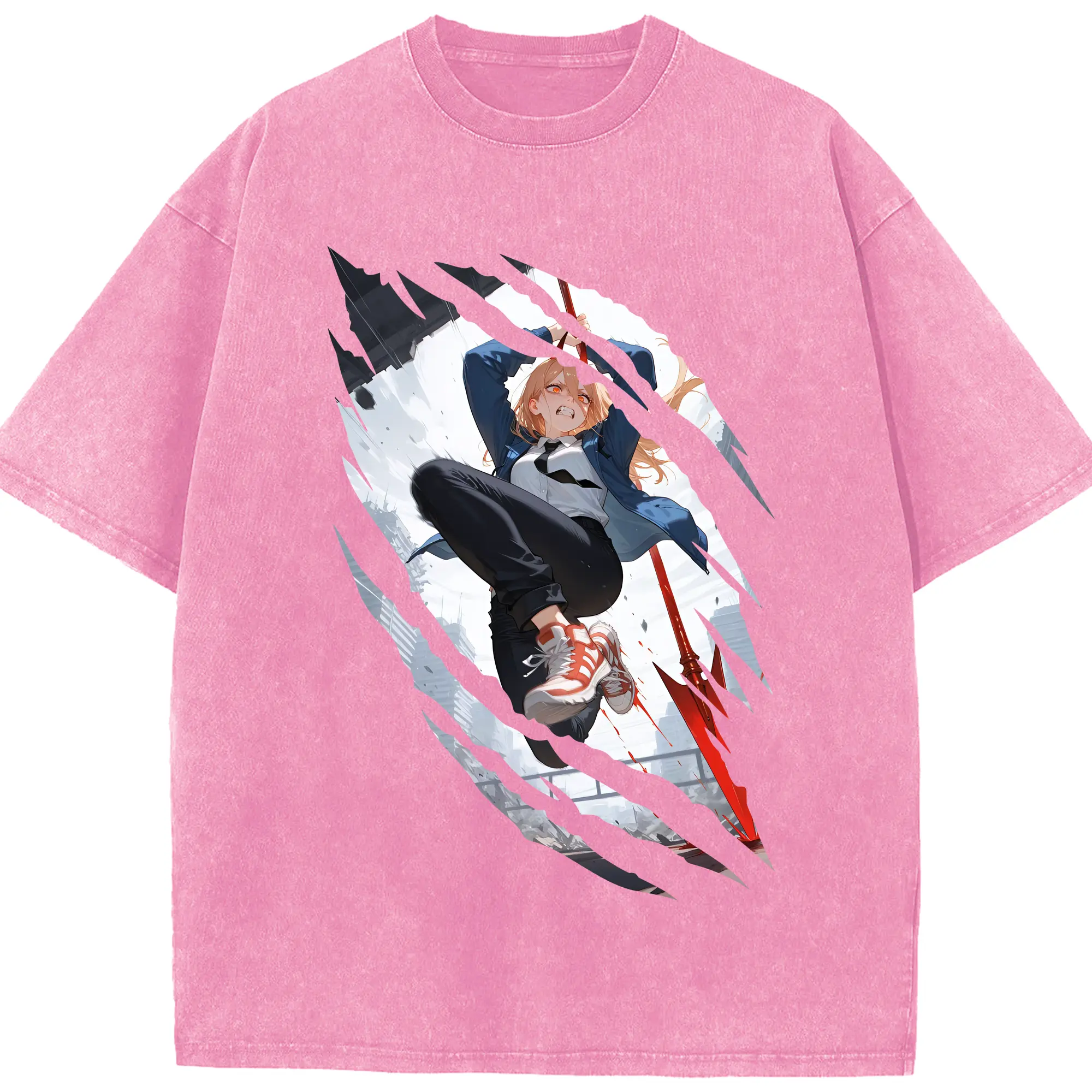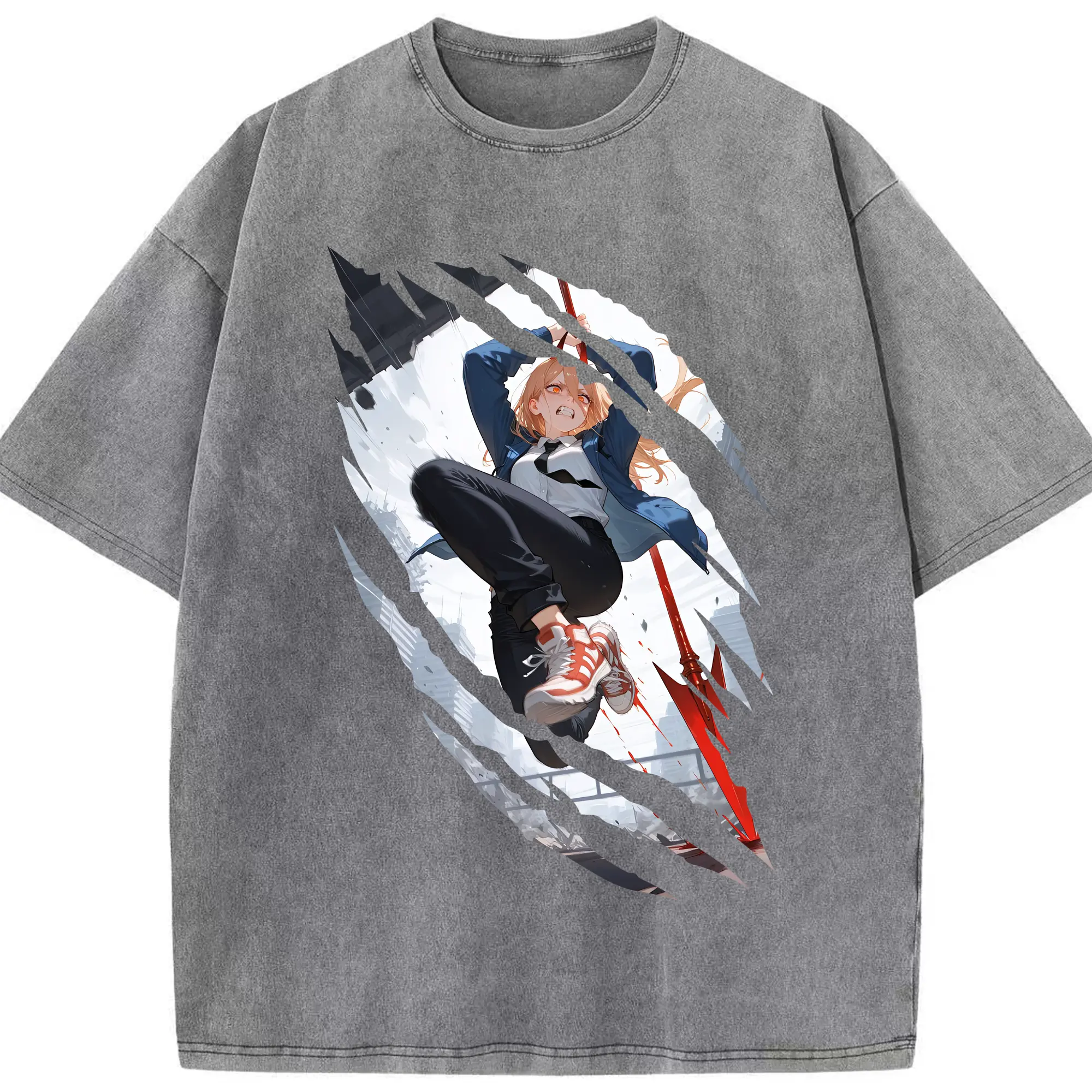 チェンソーマン グッズ,パワー - 綿100% ヴィンテージ風 半袖Tシャツ ・ 背面プリント ・ 柔らか肌触り ・ 通気性 快適 ・ スポーツ カジュアル 外出用