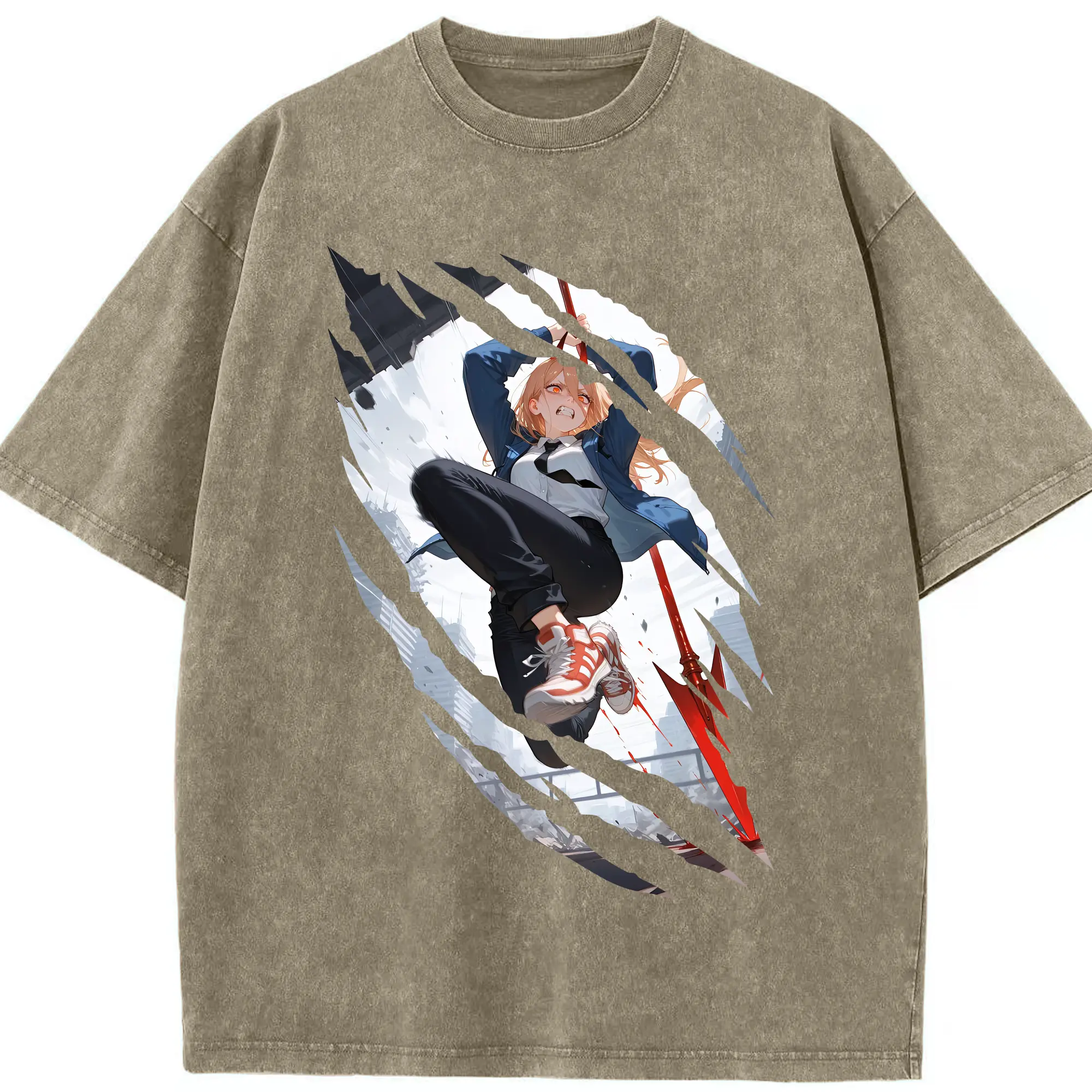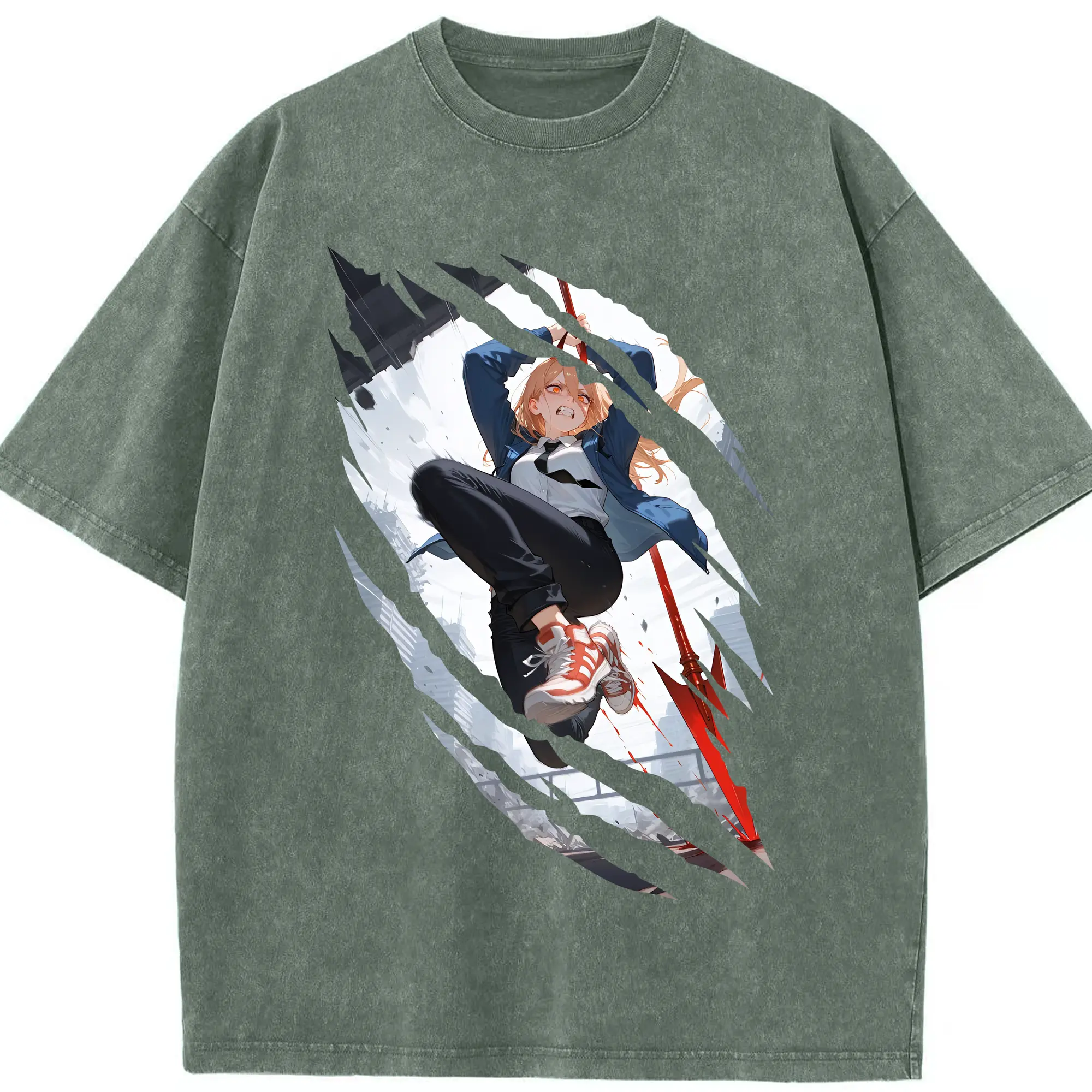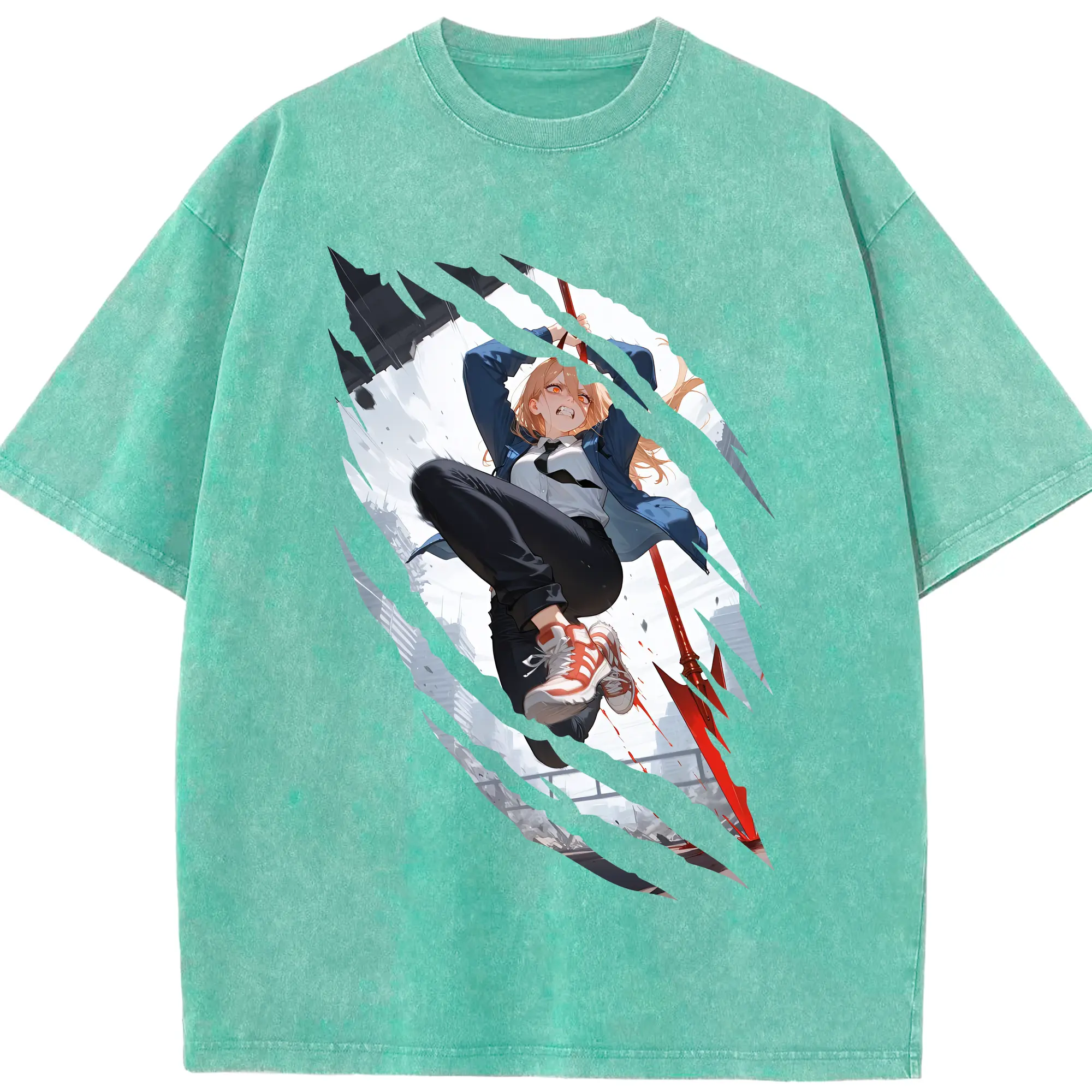 チェンソーマン グッズ,パワー - 綿100% ヴィンテージ風 半袖Tシャツ ・ 背面プリント ・ 柔らか肌触り ・ 通気性 快適 ・ スポーツ カジュアル 外出用