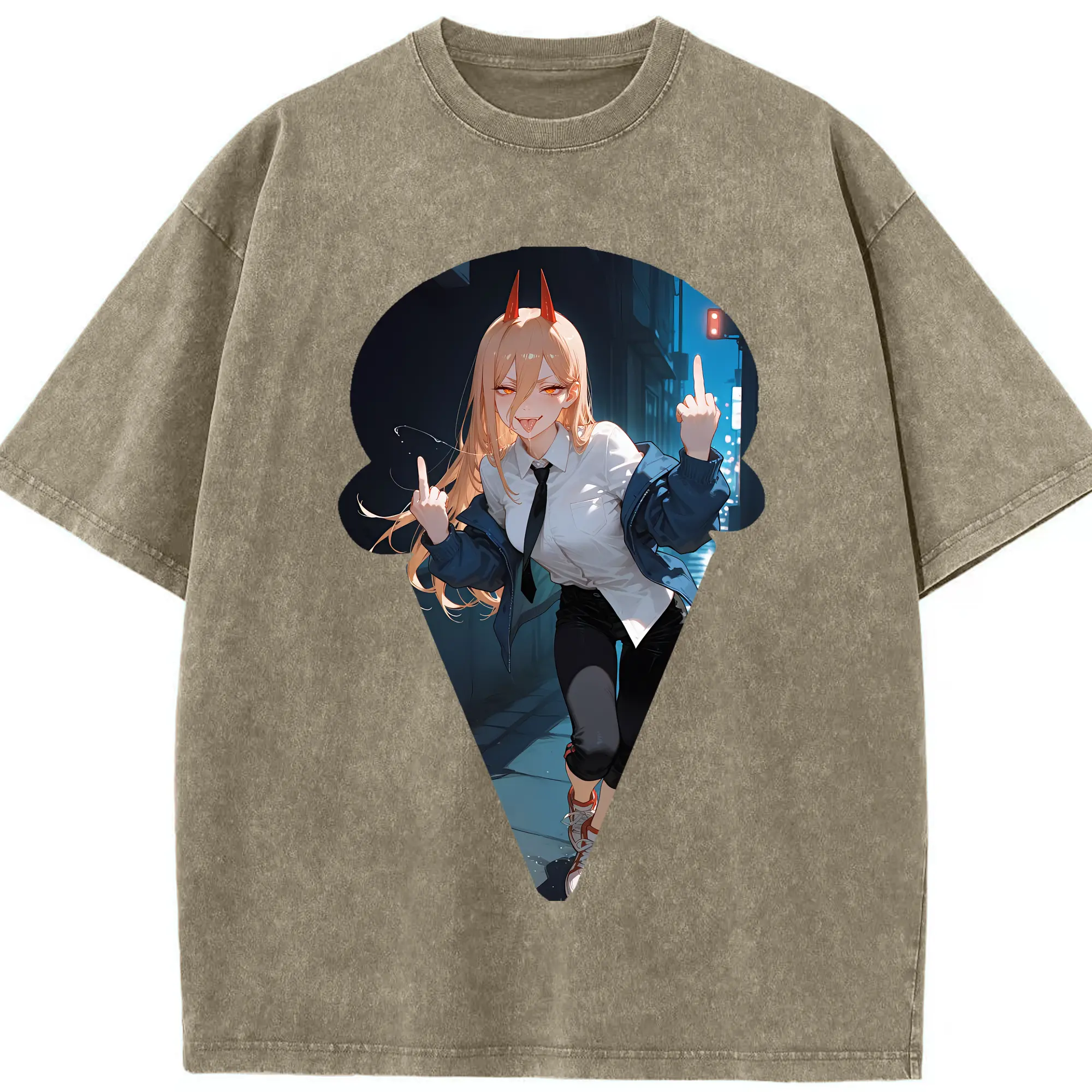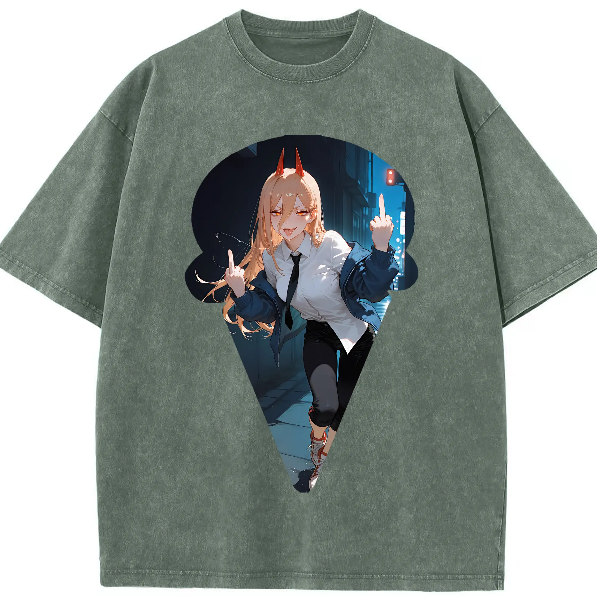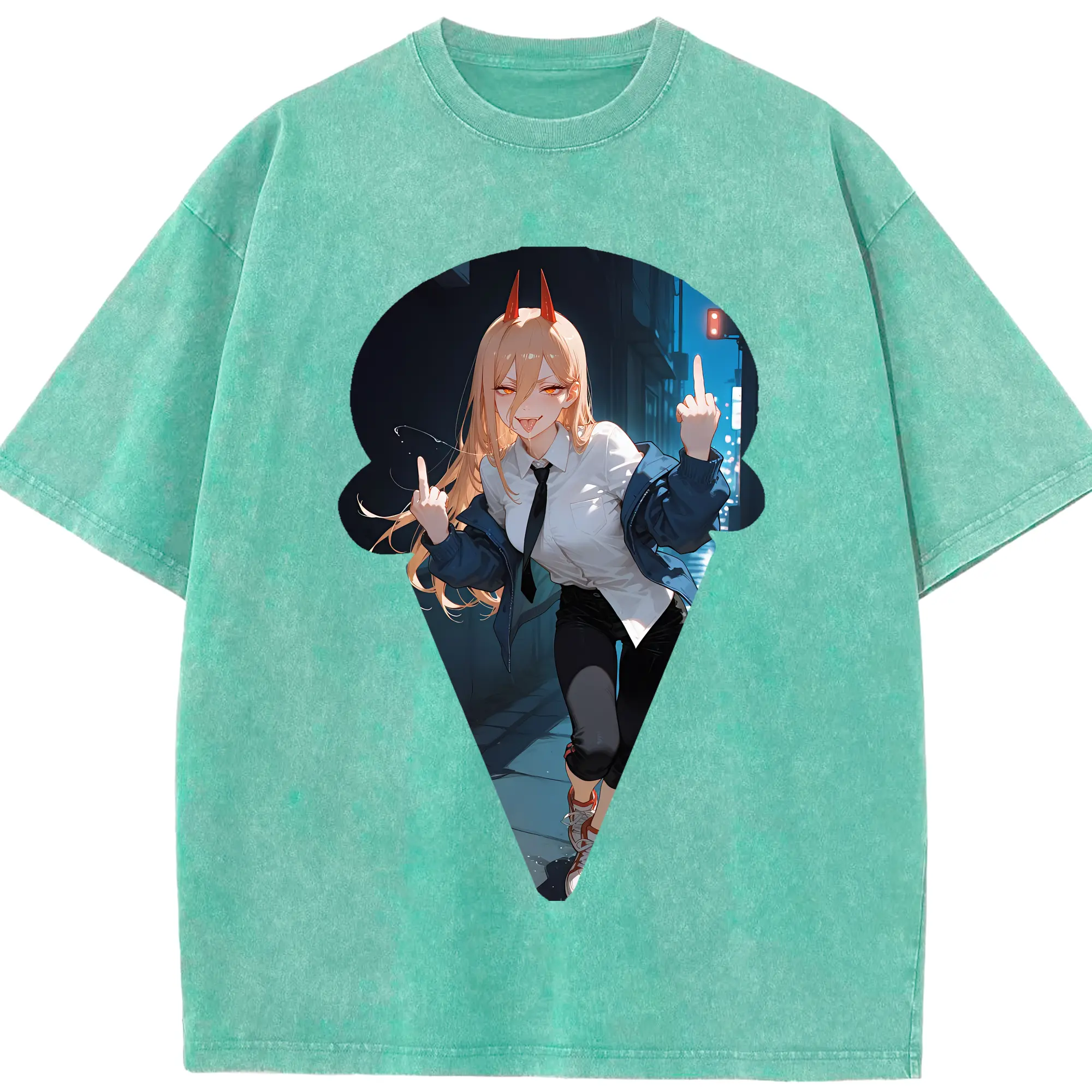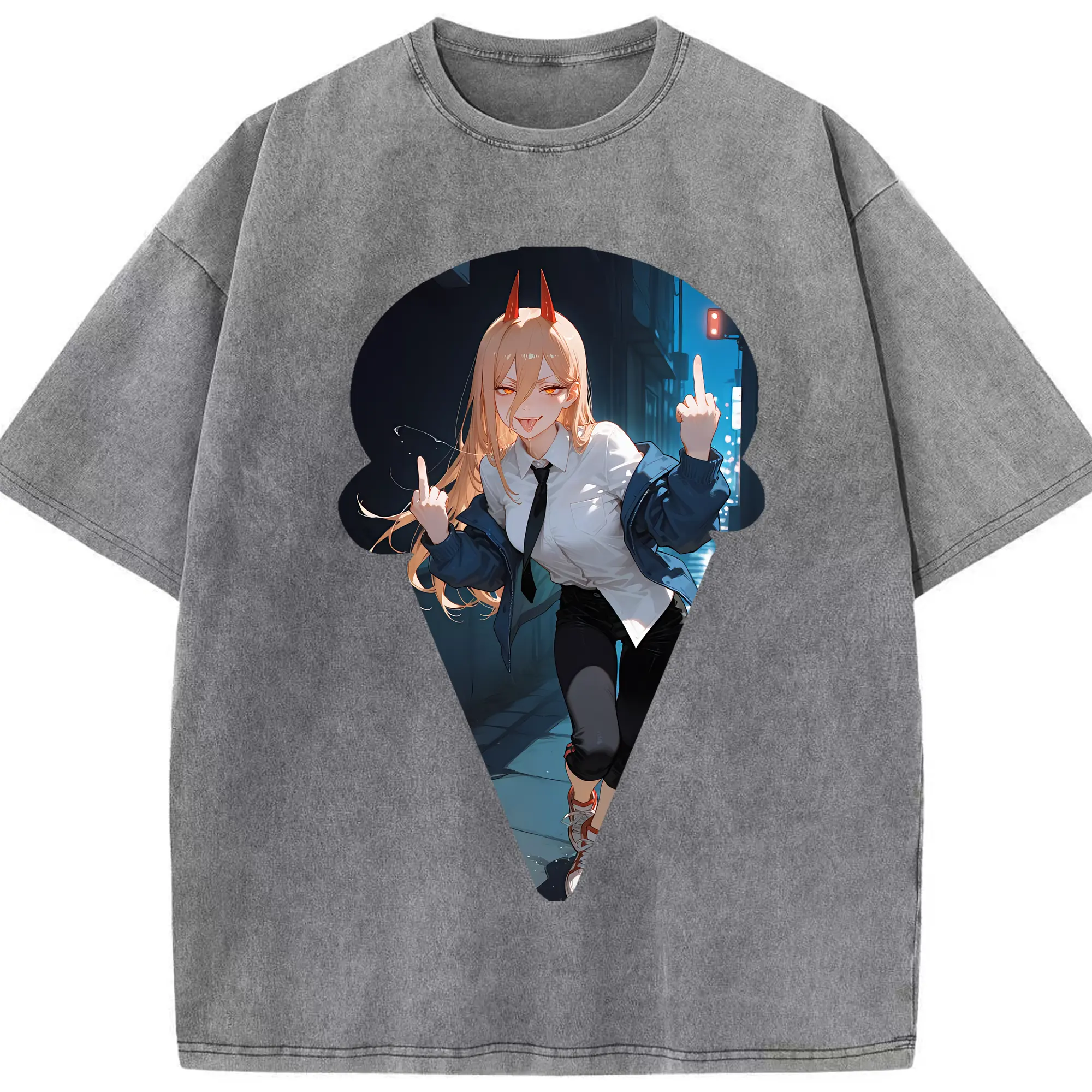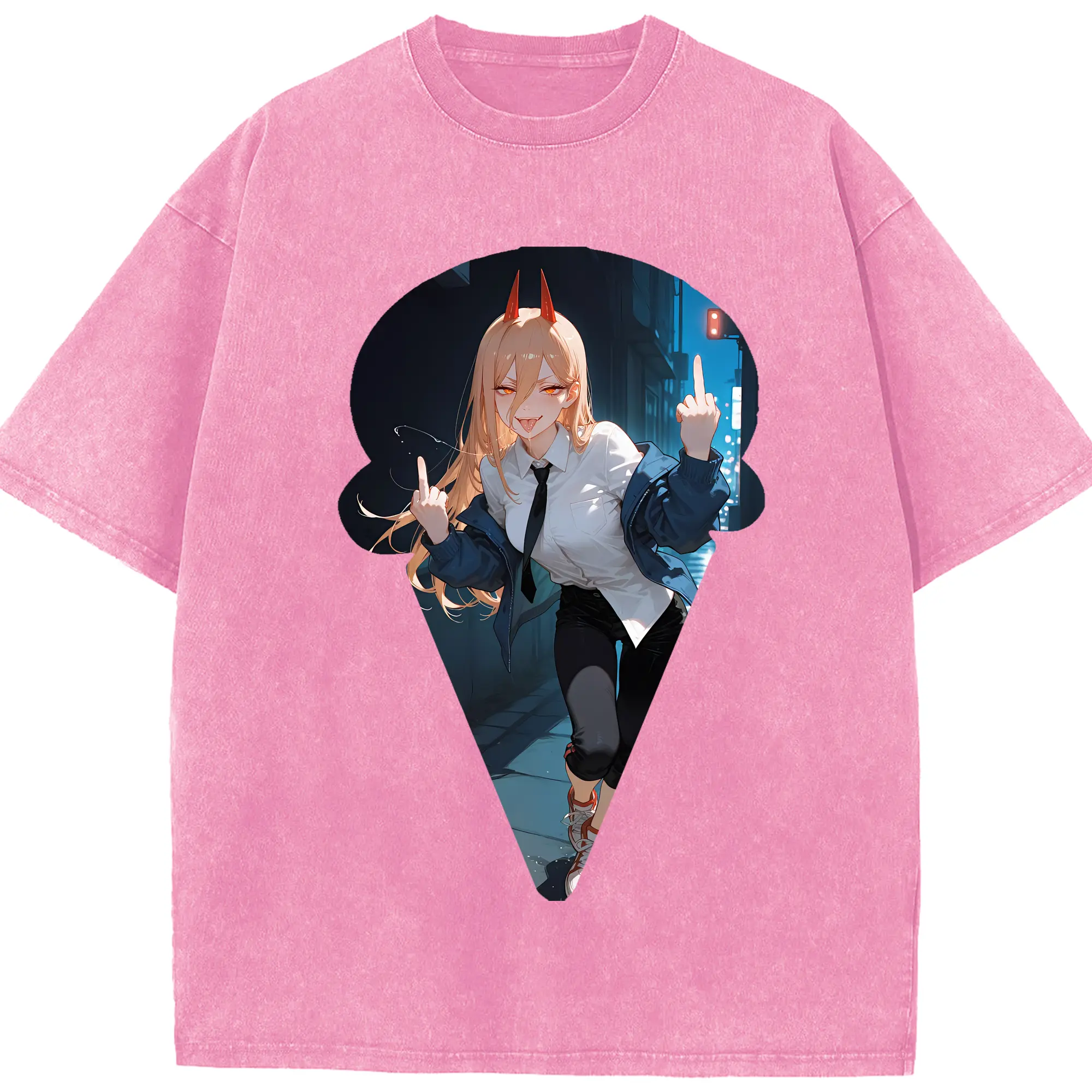 チェンソーマン グッズ,パワー - 綿100% ヴィンテージ風 半袖Tシャツ ・ 背面プリント ・ 柔らか肌触り ・ 通気性 快適 ・ スポーツ カジュアル 外出用