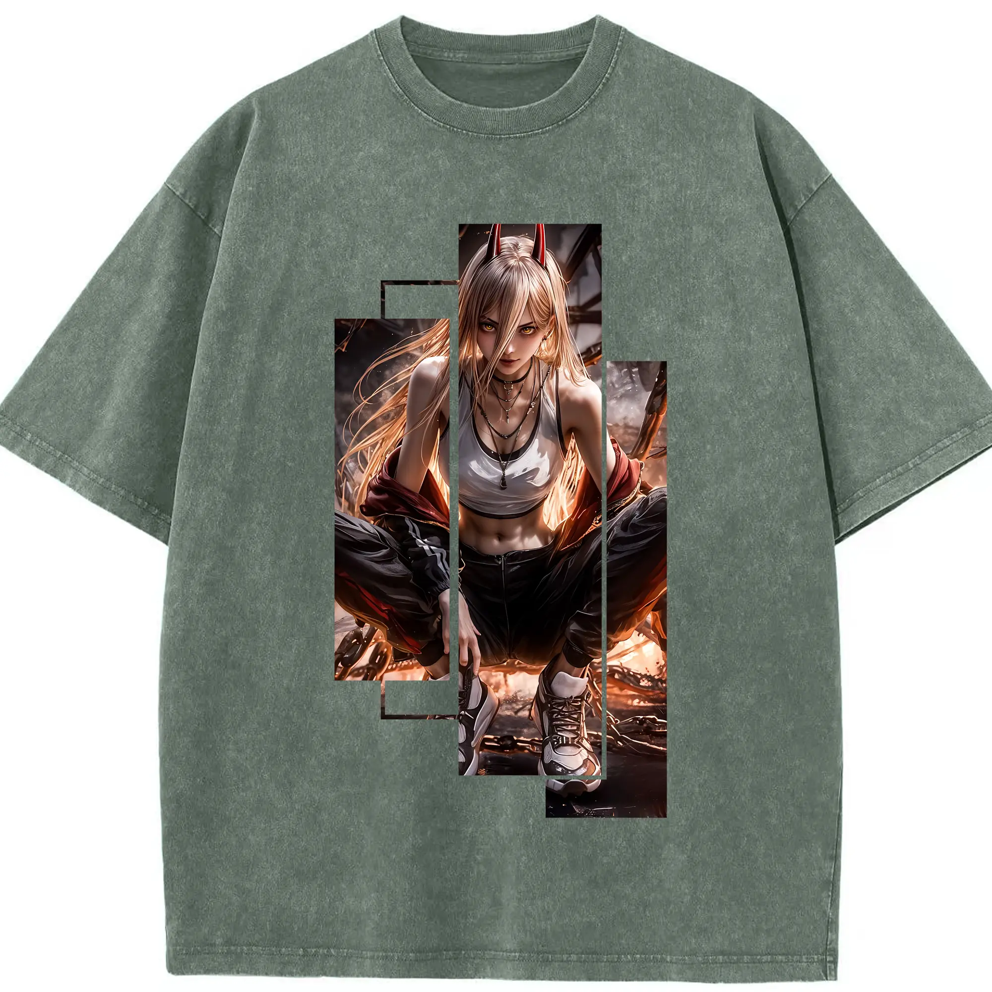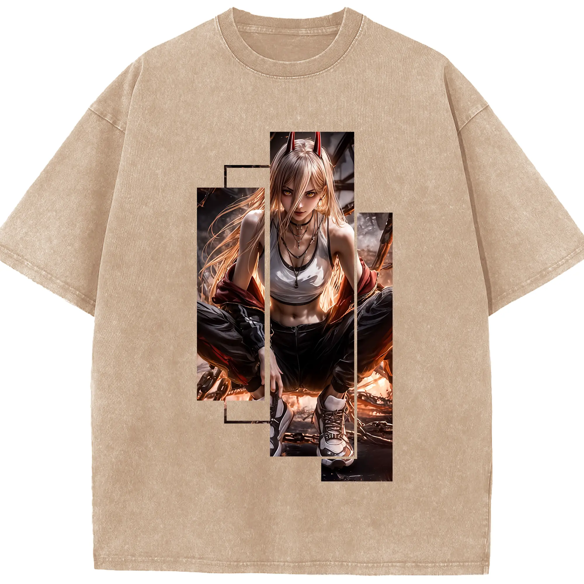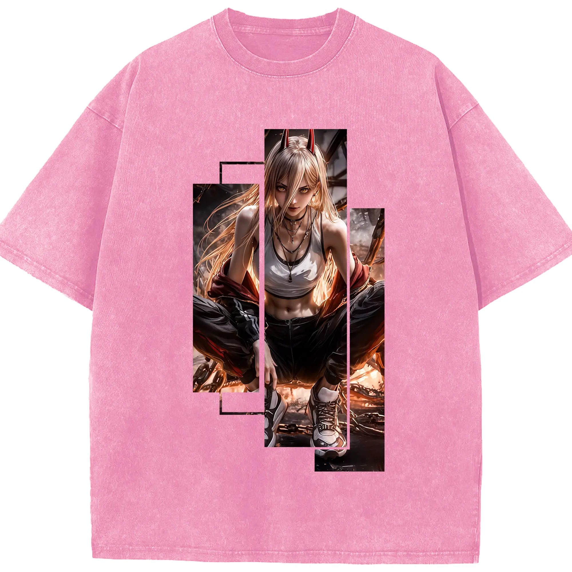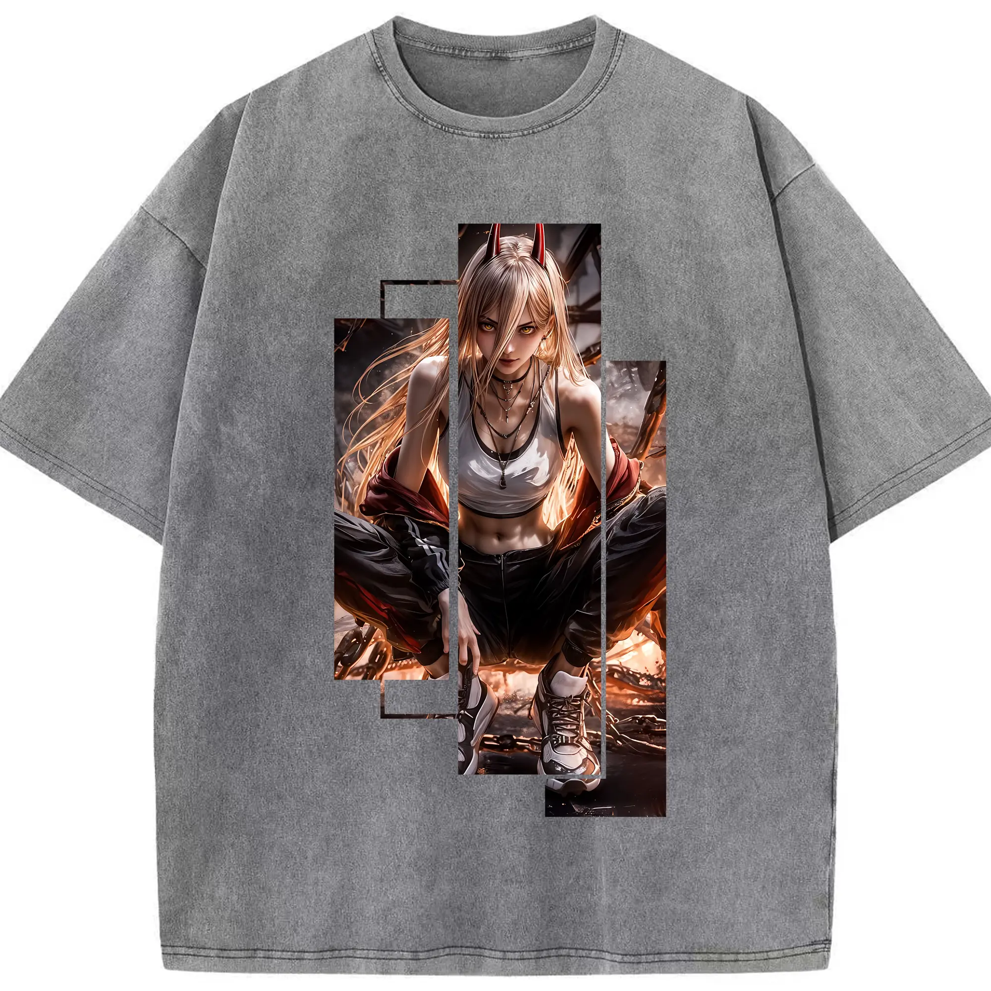 チェンソーマン グッズ,パワー - 綿100% ヴィンテージ風 半袖Tシャツ ・ 背面プリント ・ 柔らか肌触り ・ 通気性 快適 ・ スポーツ カジュアル 外出用