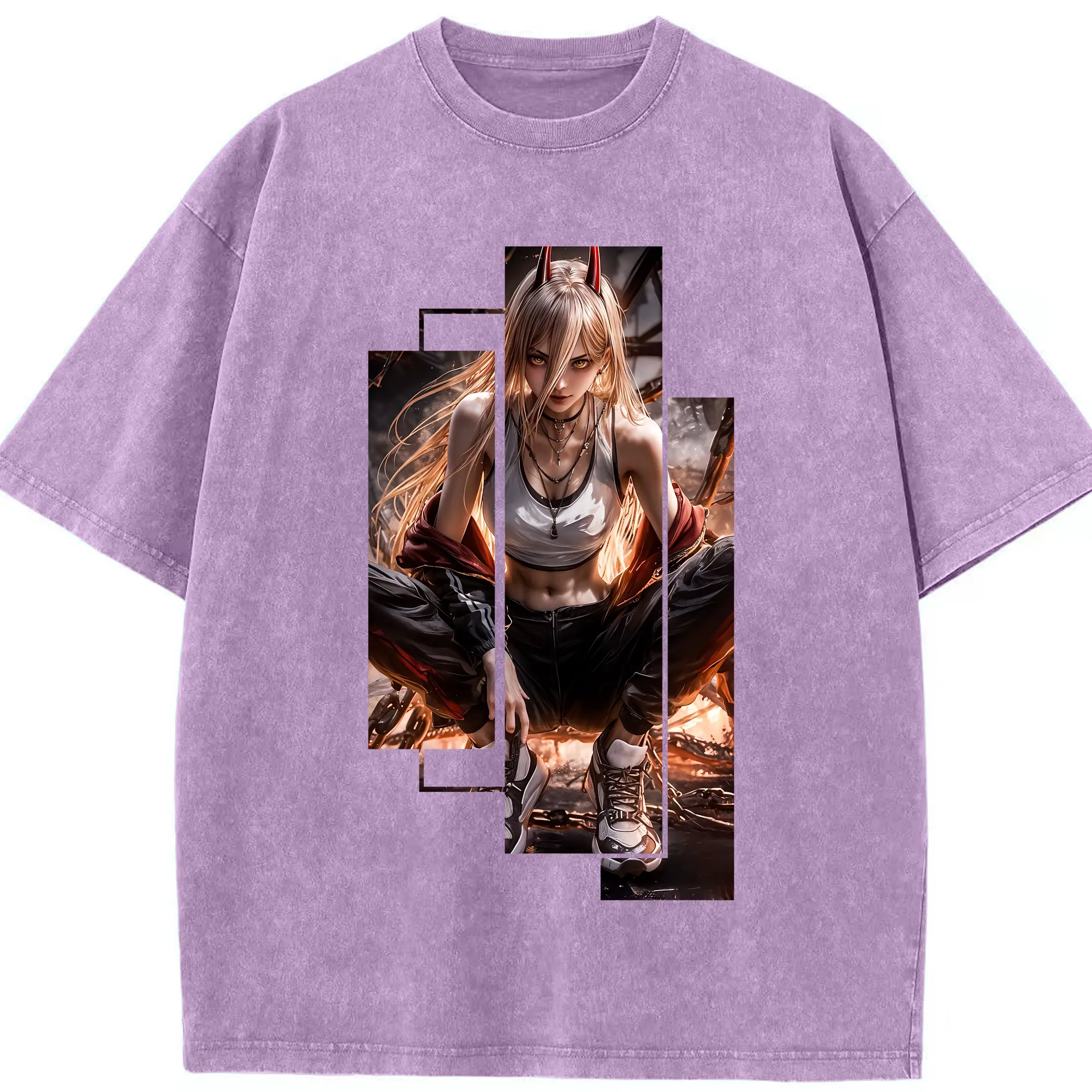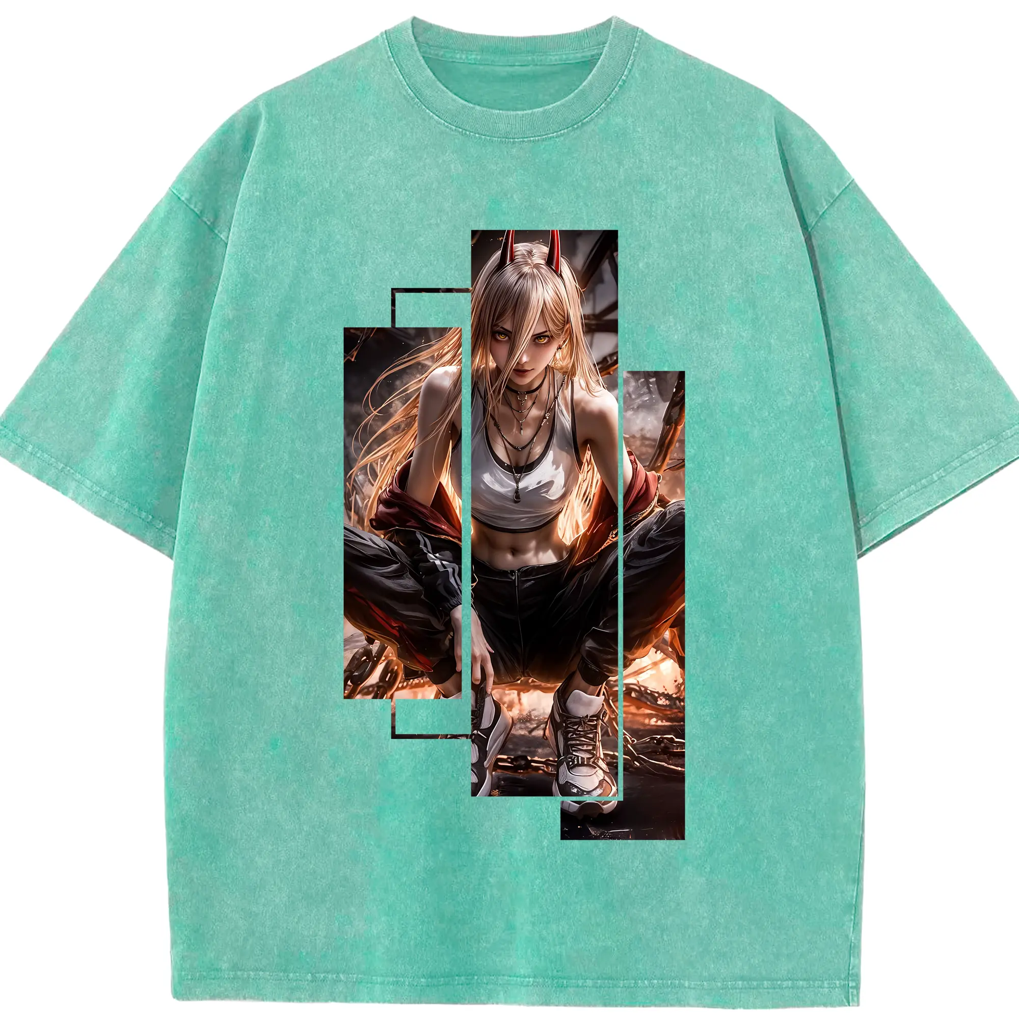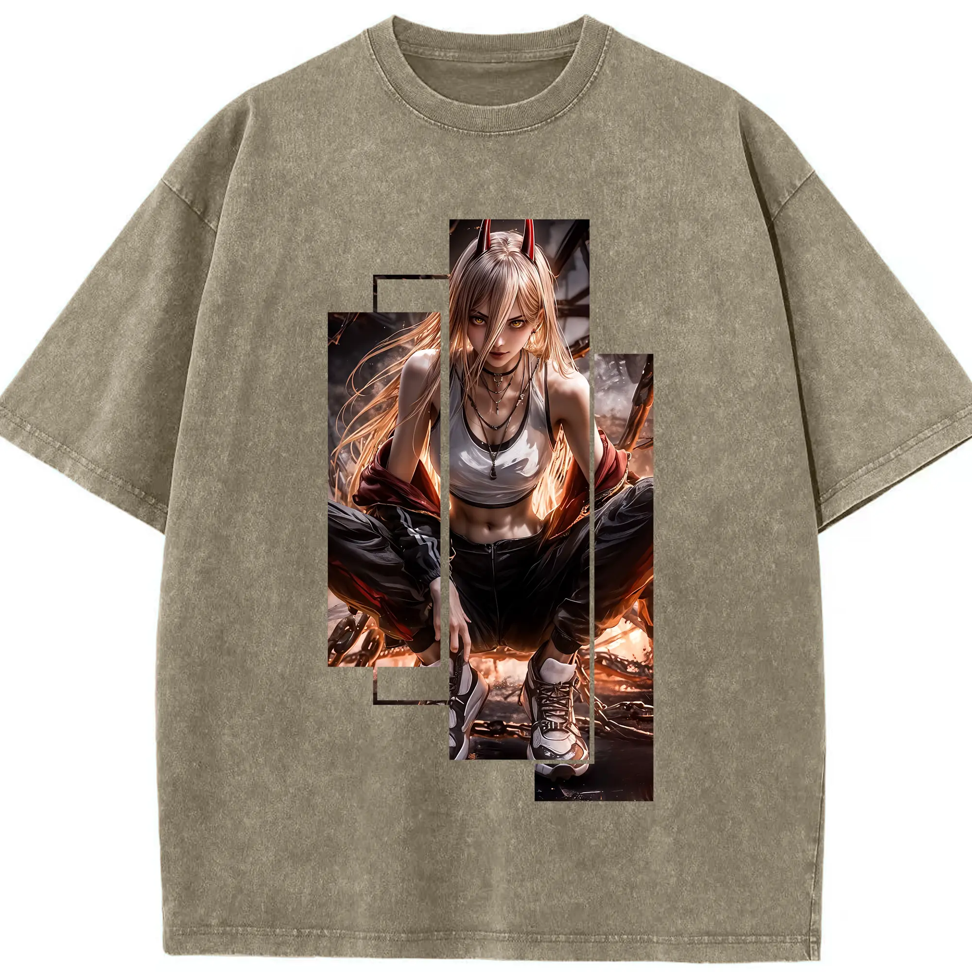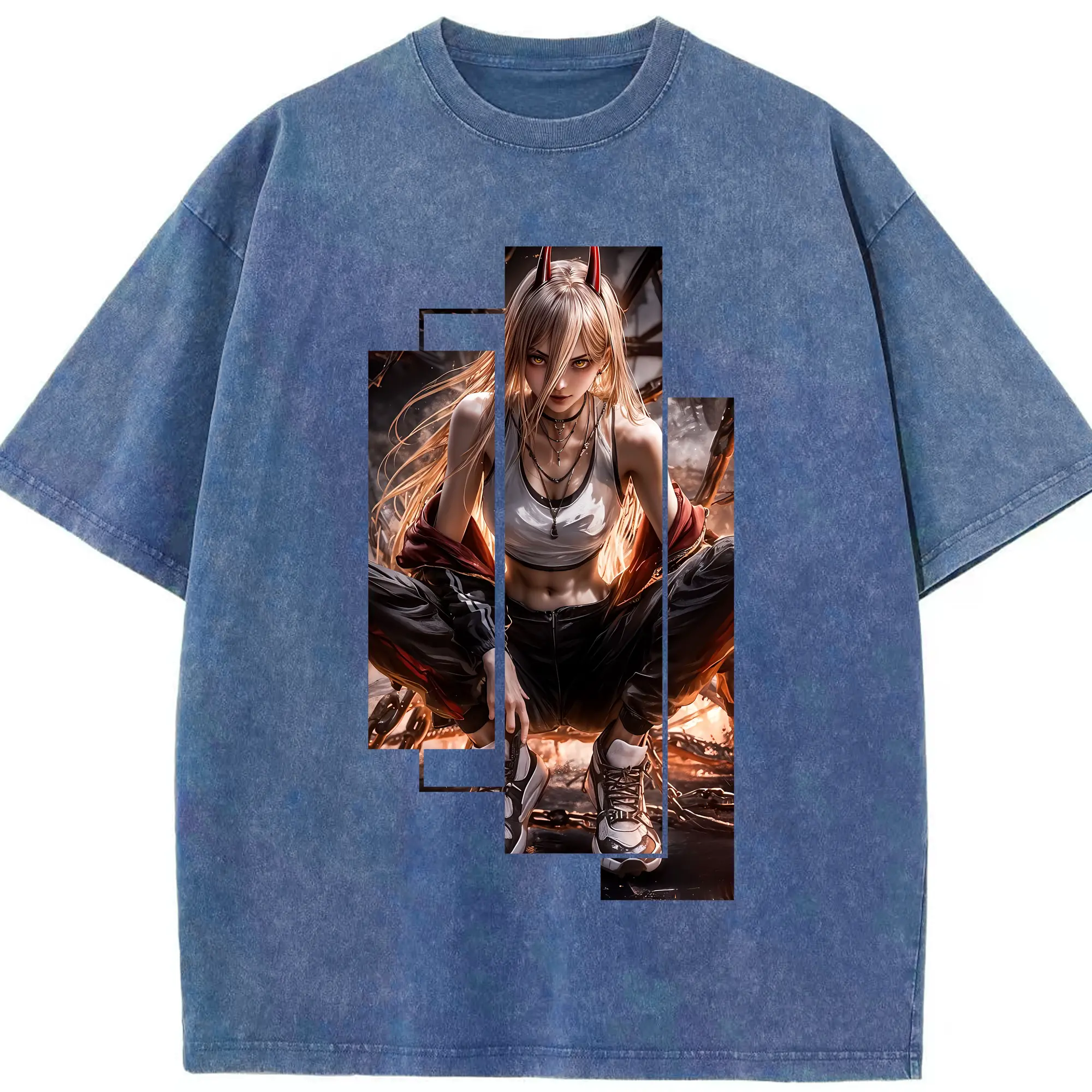 チェンソーマン グッズ,パワー - 綿100% ヴィンテージ風 半袖Tシャツ ・ 背面プリント ・ 柔らか肌触り ・ 通気性 快適 ・ スポーツ カジュアル 外出用