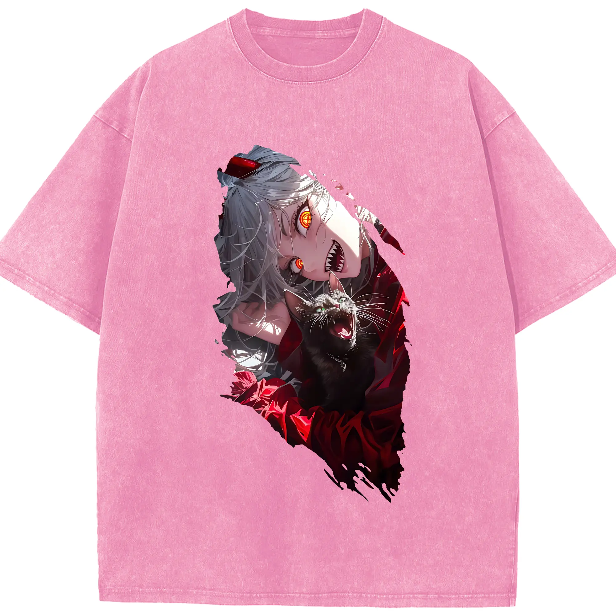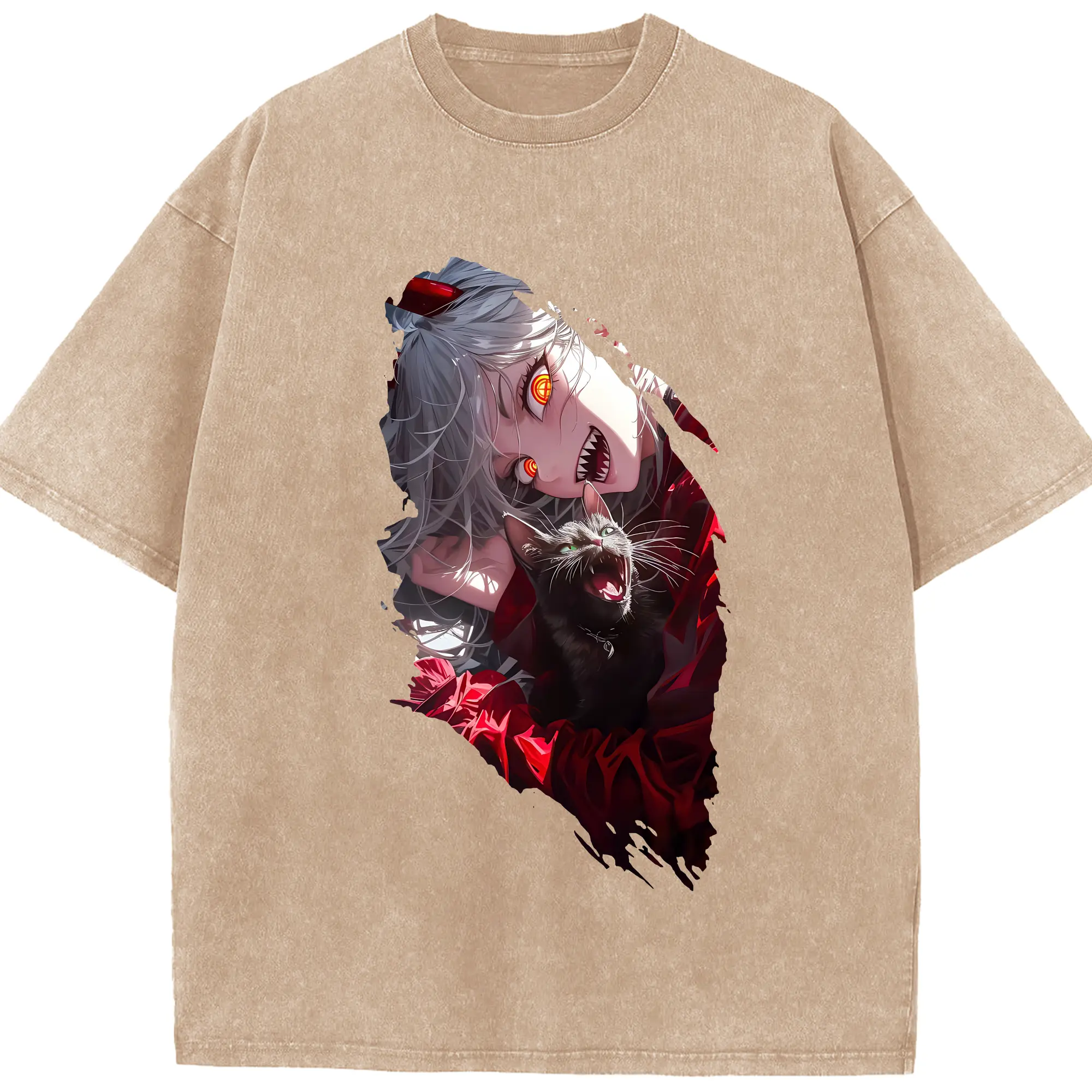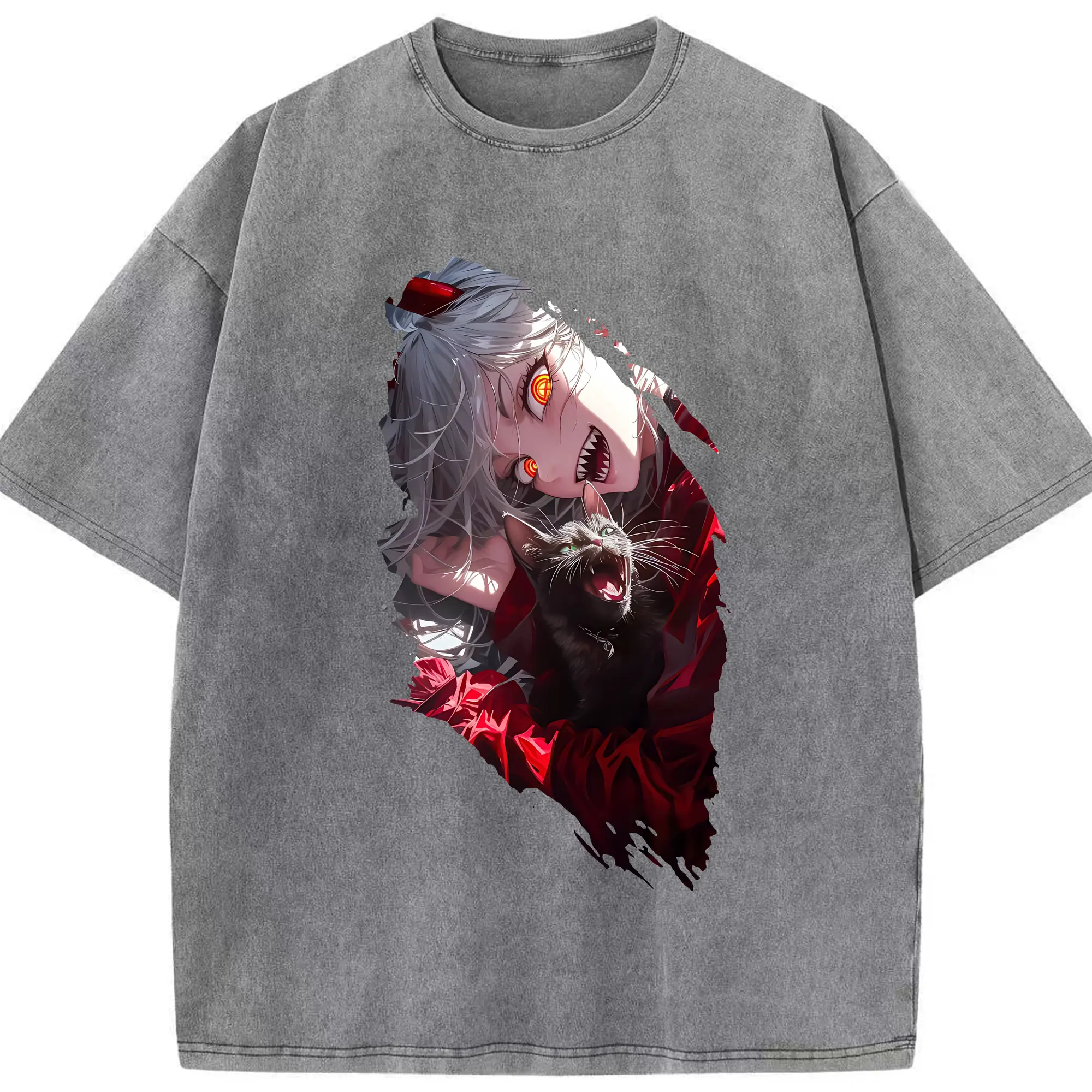 チェンソーマン グッズ,パワー - 綿100% ヴィンテージ風 半袖Tシャツ ・ 背面プリント ・ 柔らか肌触り ・ 通気性 快適 ・ スポーツ カジュアル 外出用