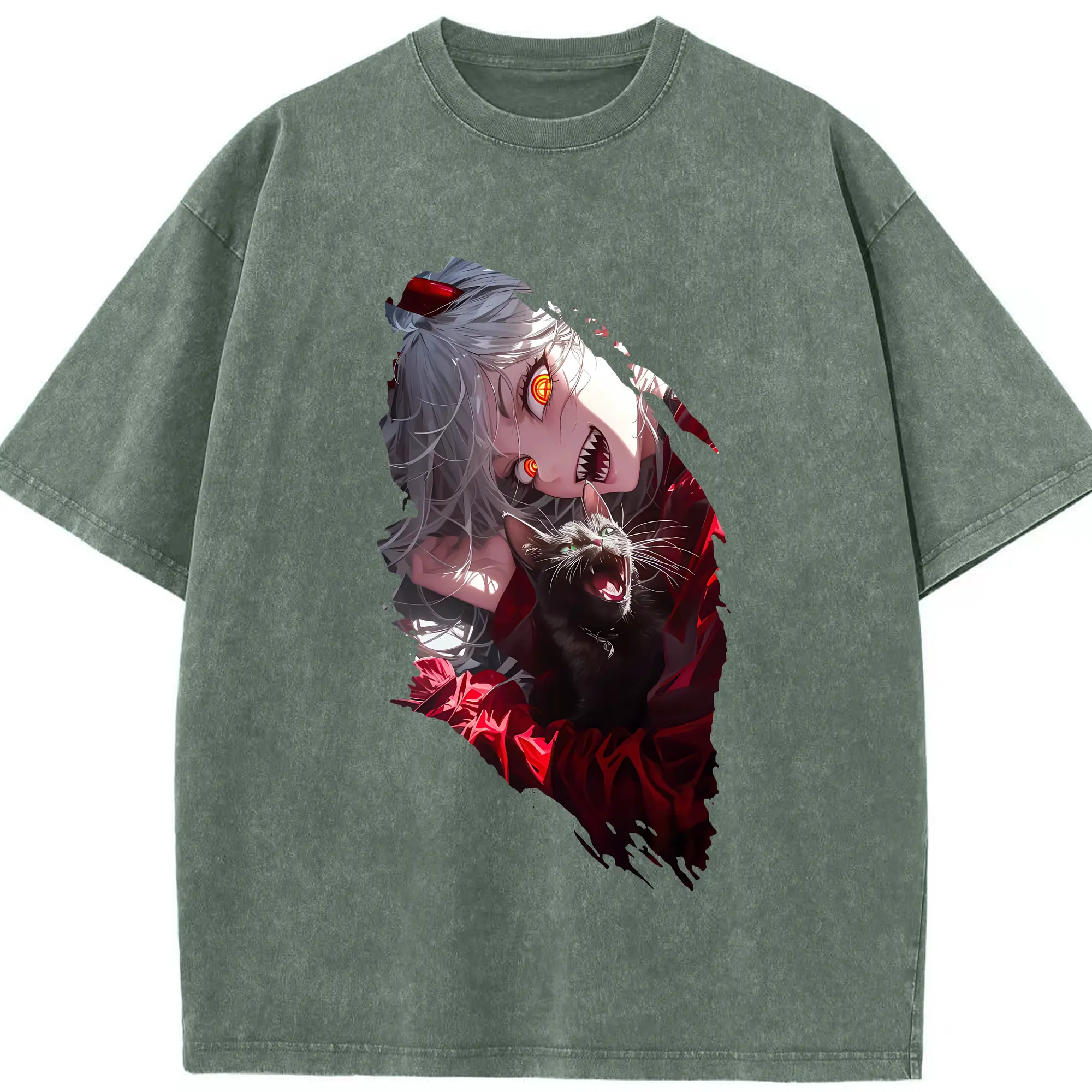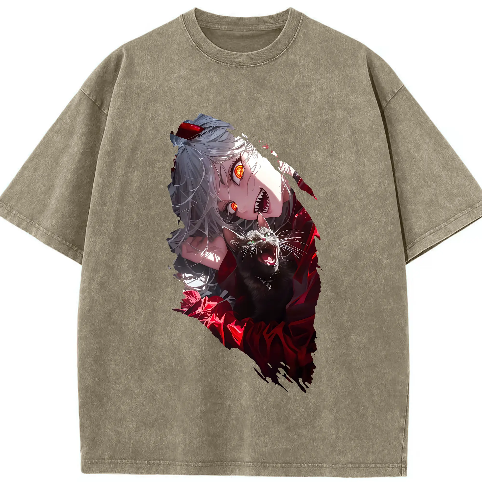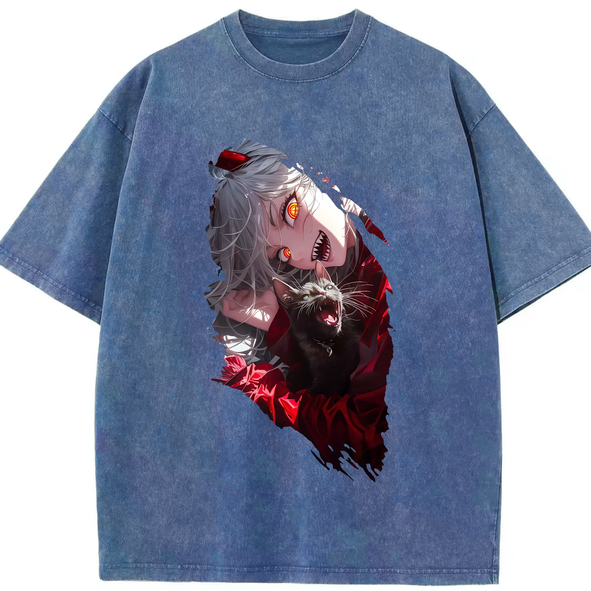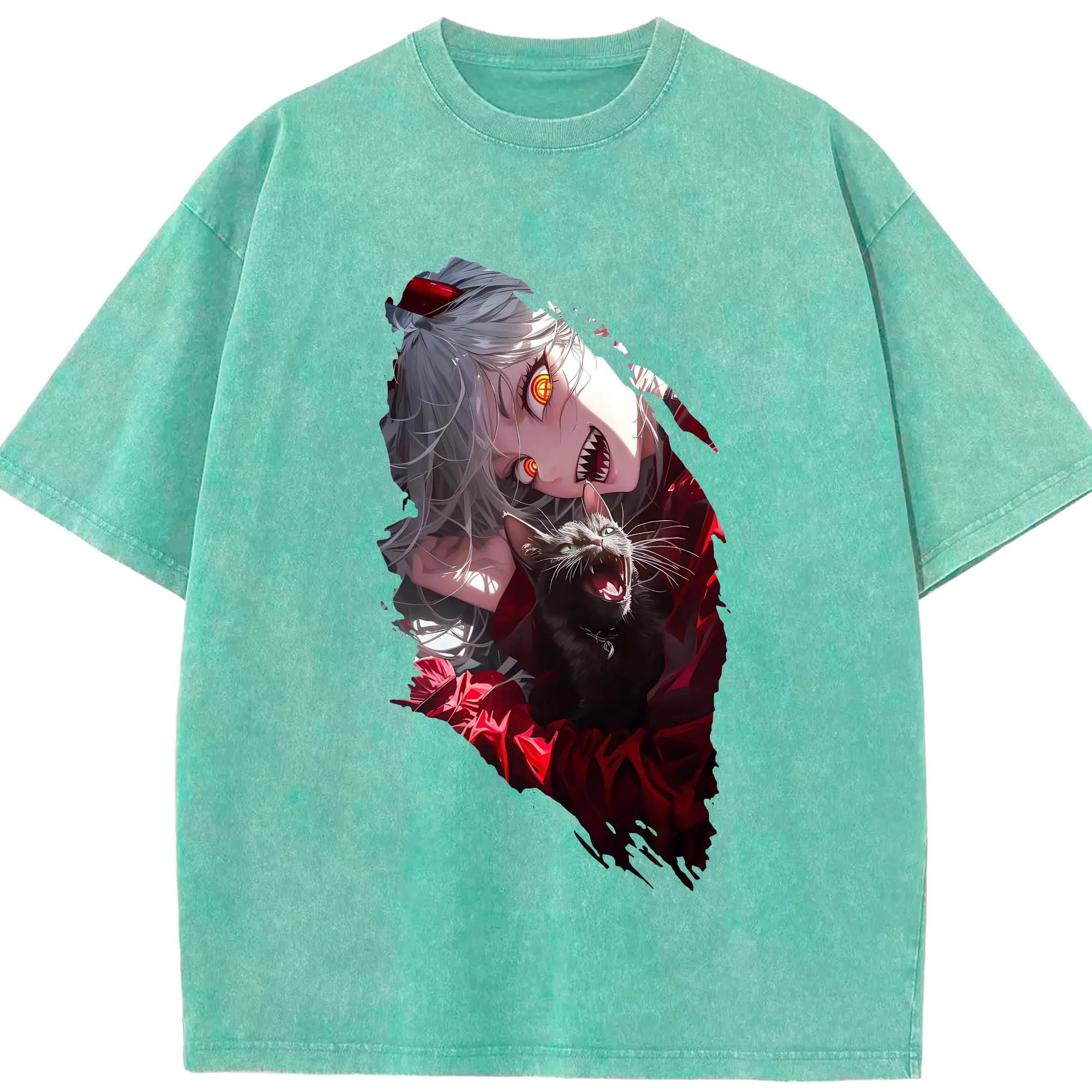 チェンソーマン グッズ,パワー - 綿100% ヴィンテージ風 半袖Tシャツ ・ 背面プリント ・ 柔らか肌触り ・ 通気性 快適 ・ スポーツ カジュアル 外出用
