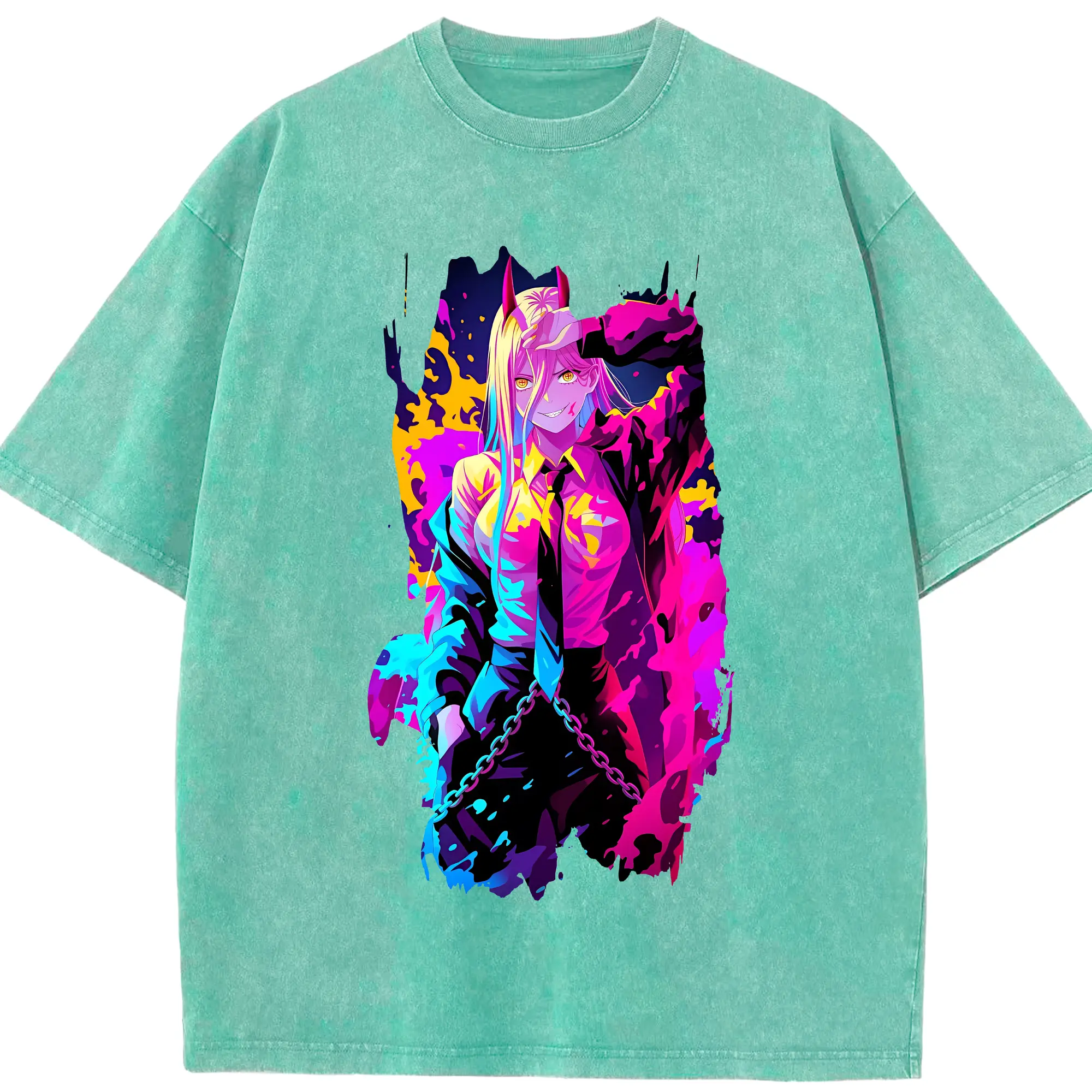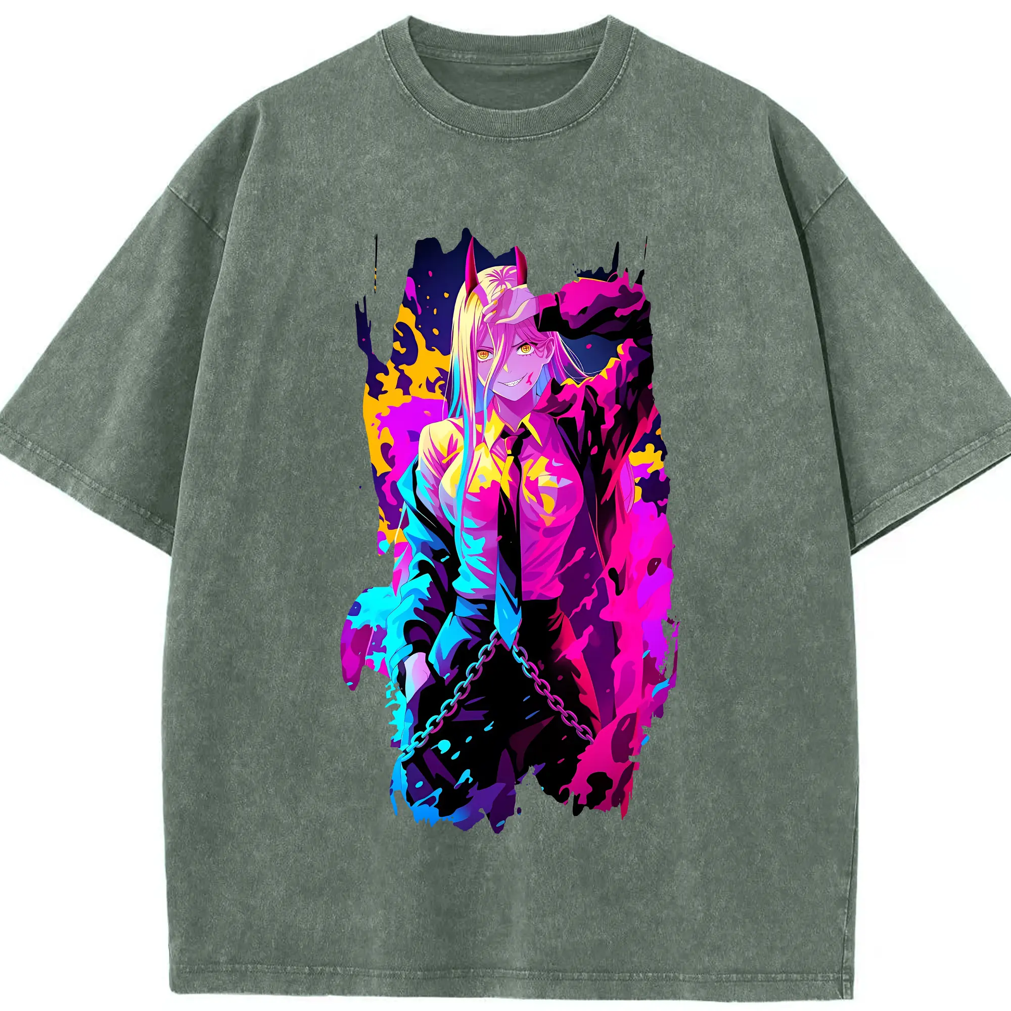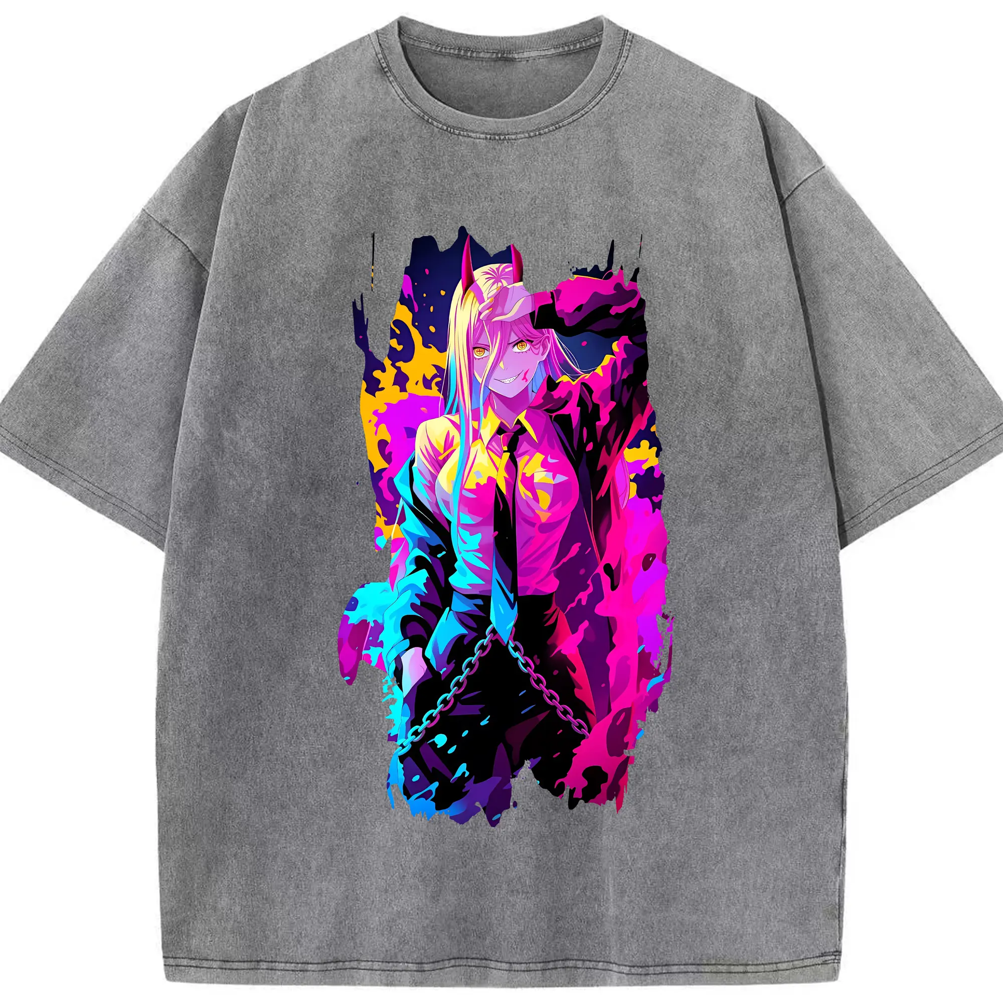 チェンソーマン グッズ,パワー - 綿100% ヴィンテージ風 半袖Tシャツ ・ 背面プリント ・ 柔らか肌触り ・ 通気性 快適 ・ スポーツ カジュアル 外出用