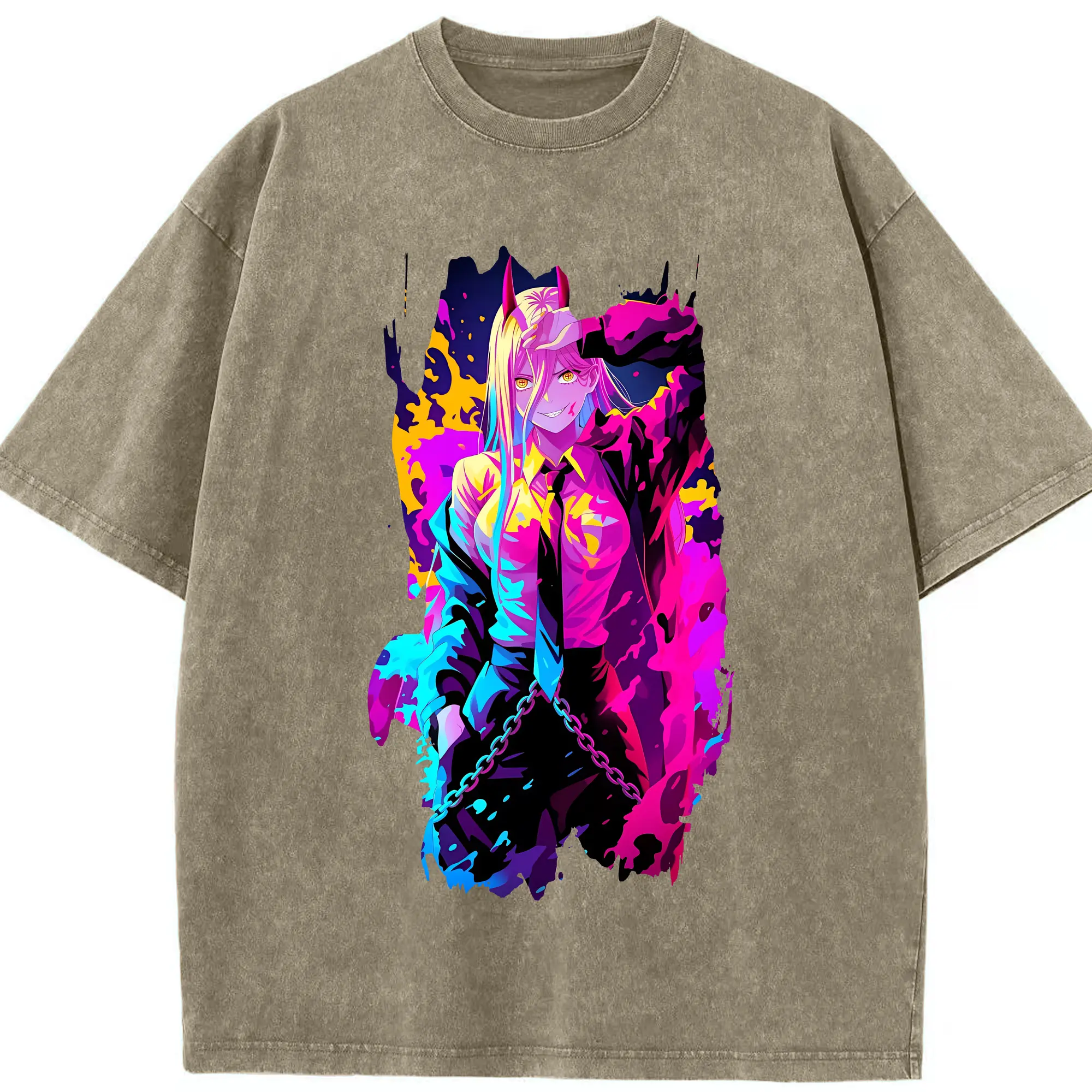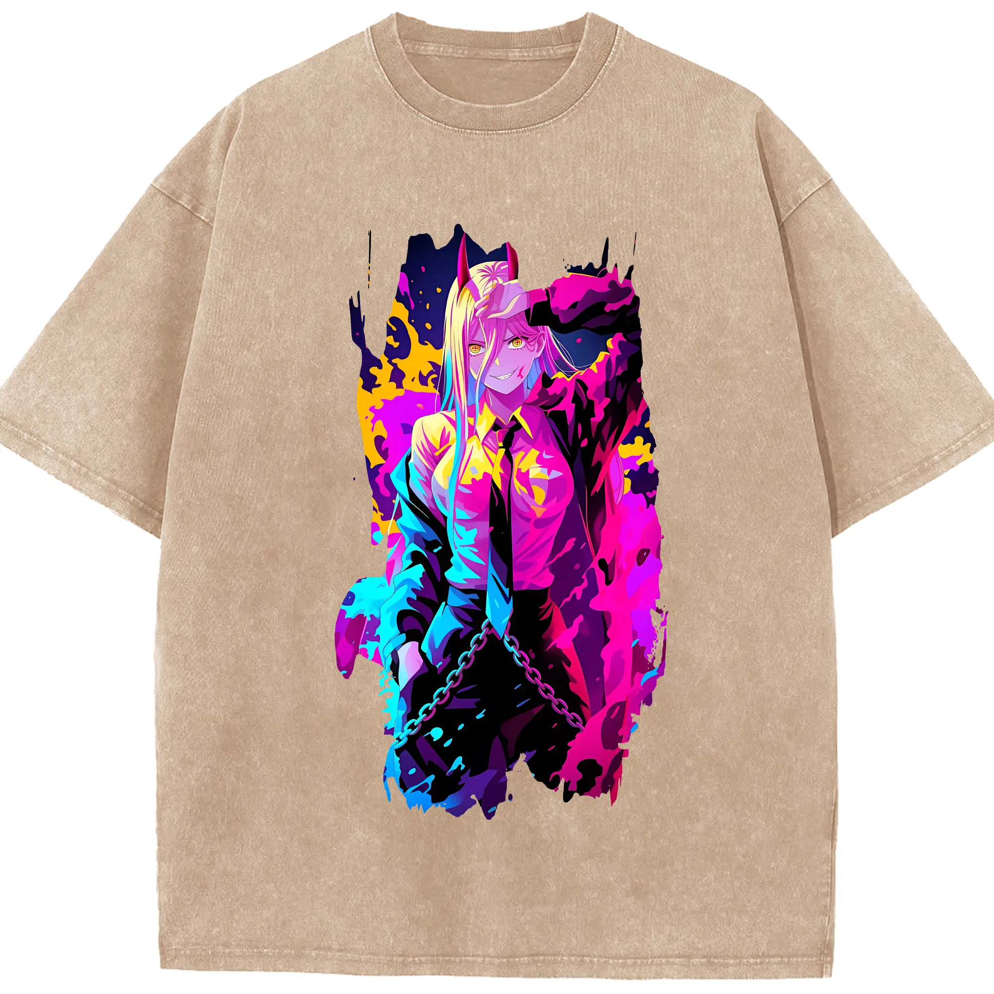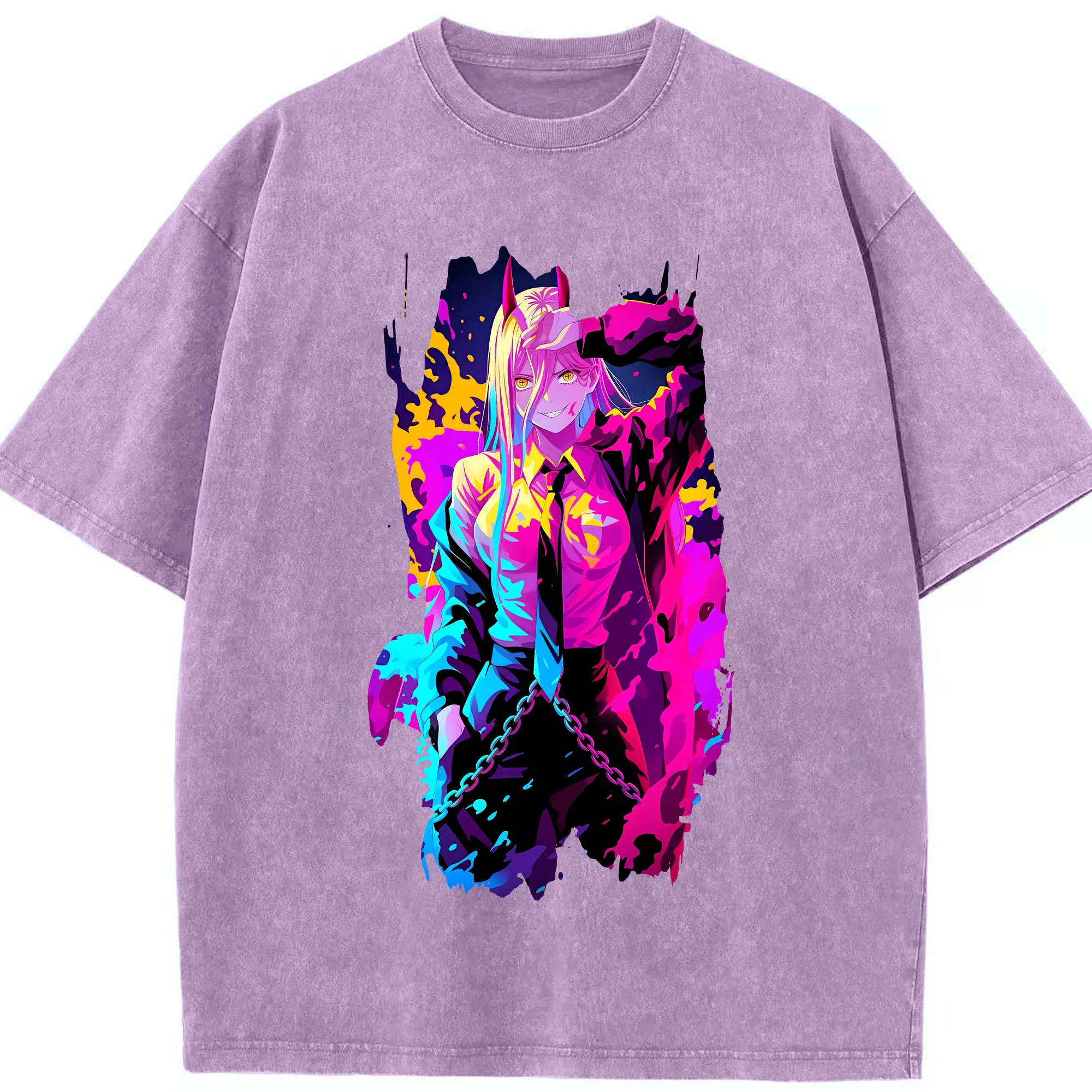 チェンソーマン グッズ,パワー - 綿100% ヴィンテージ風 半袖Tシャツ ・ 背面プリント ・ 柔らか肌触り ・ 通気性 快適 ・ スポーツ カジュアル 外出用