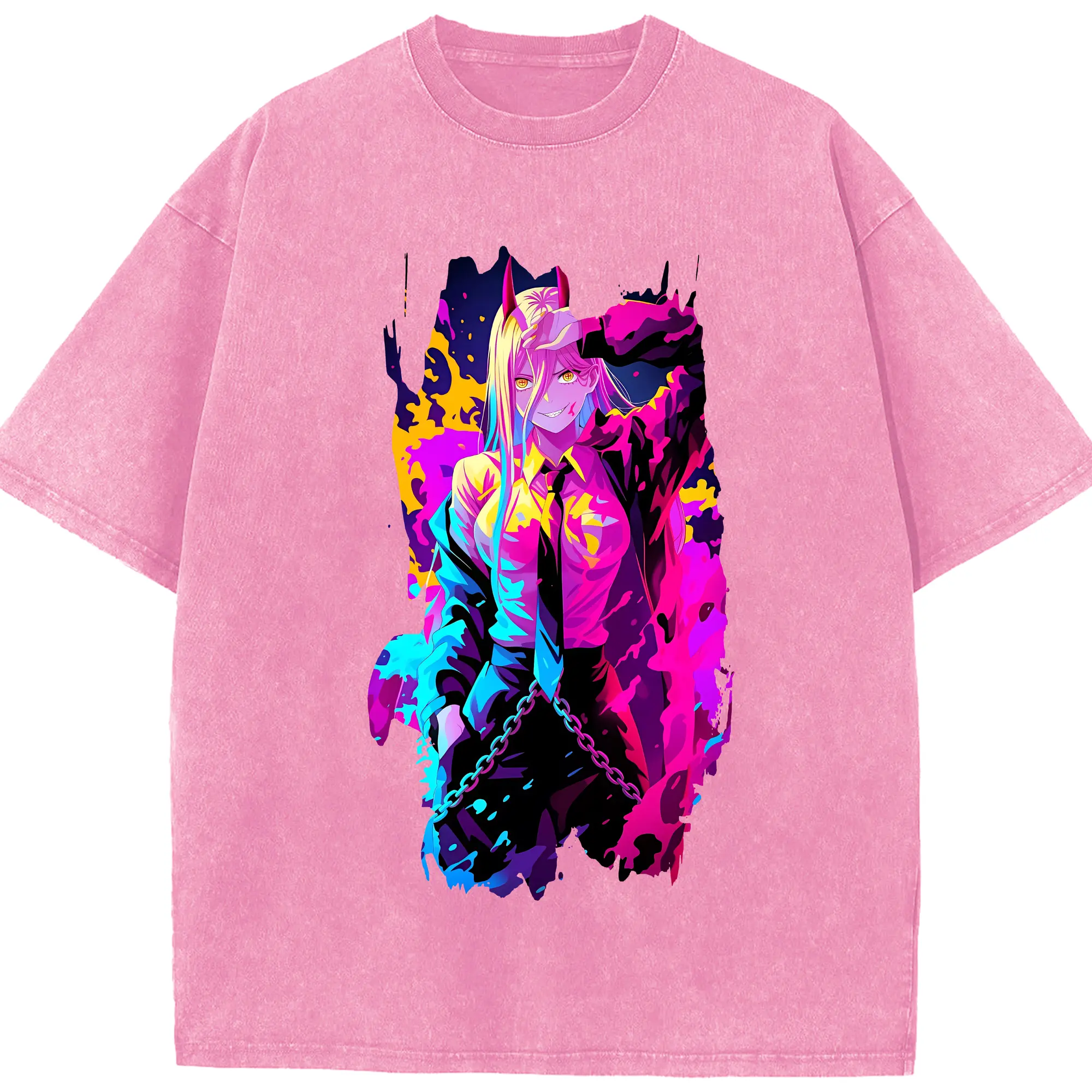 チェンソーマン グッズ,パワー - 綿100% 半袖Tシャツ ・ フロントプリント ・ 快適 通気性 ・ 日常使い 散歩 スポーツ用