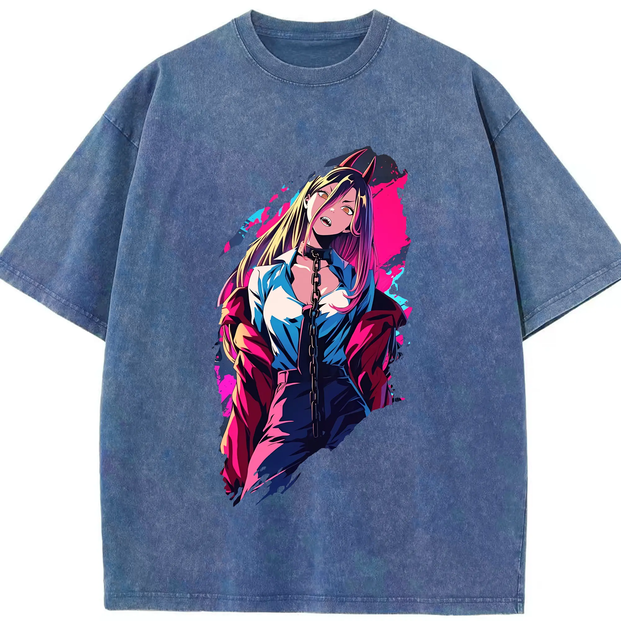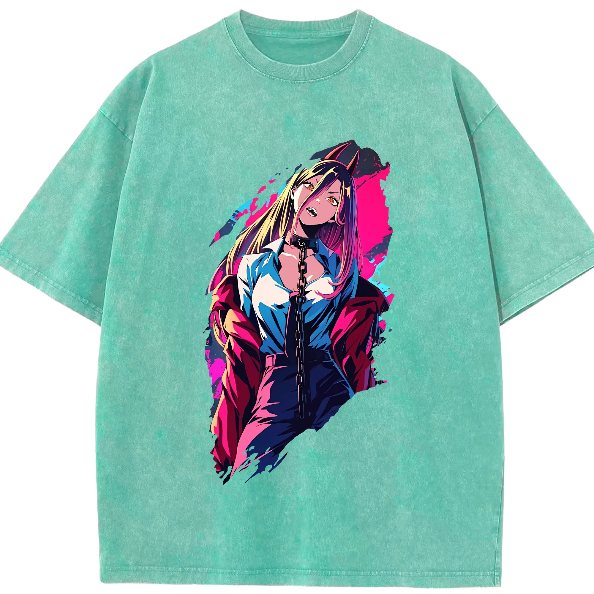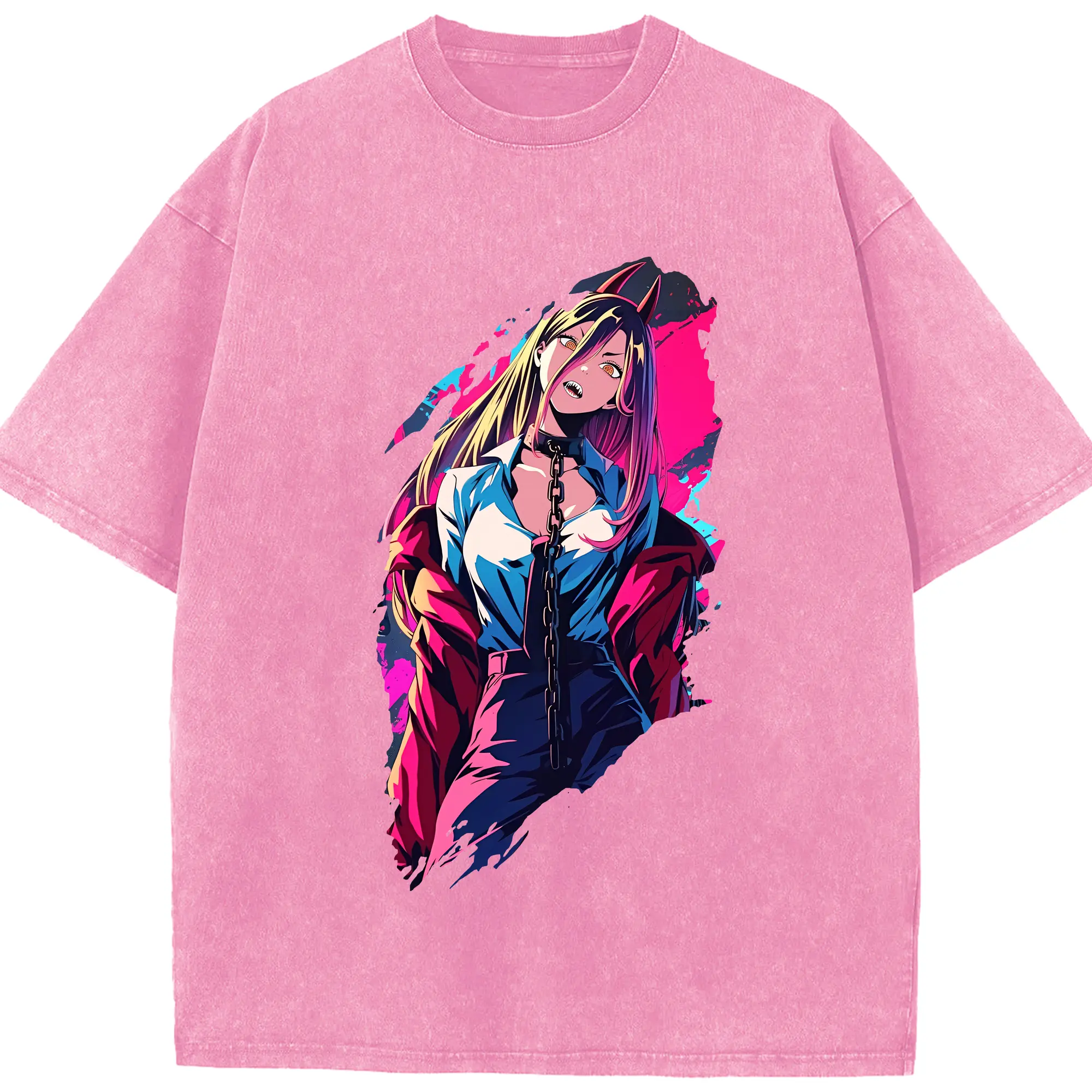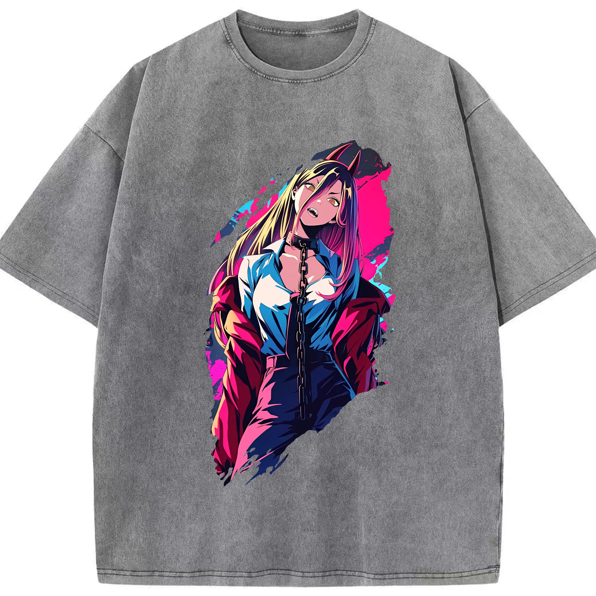 チェンソーマン グッズ,パワー - 綿100% ヴィンテージ風 半袖Tシャツ ・ 背面プリント ・ 柔らか肌触り ・ 通気性 快適 ・ スポーツ カジュアル 外出用