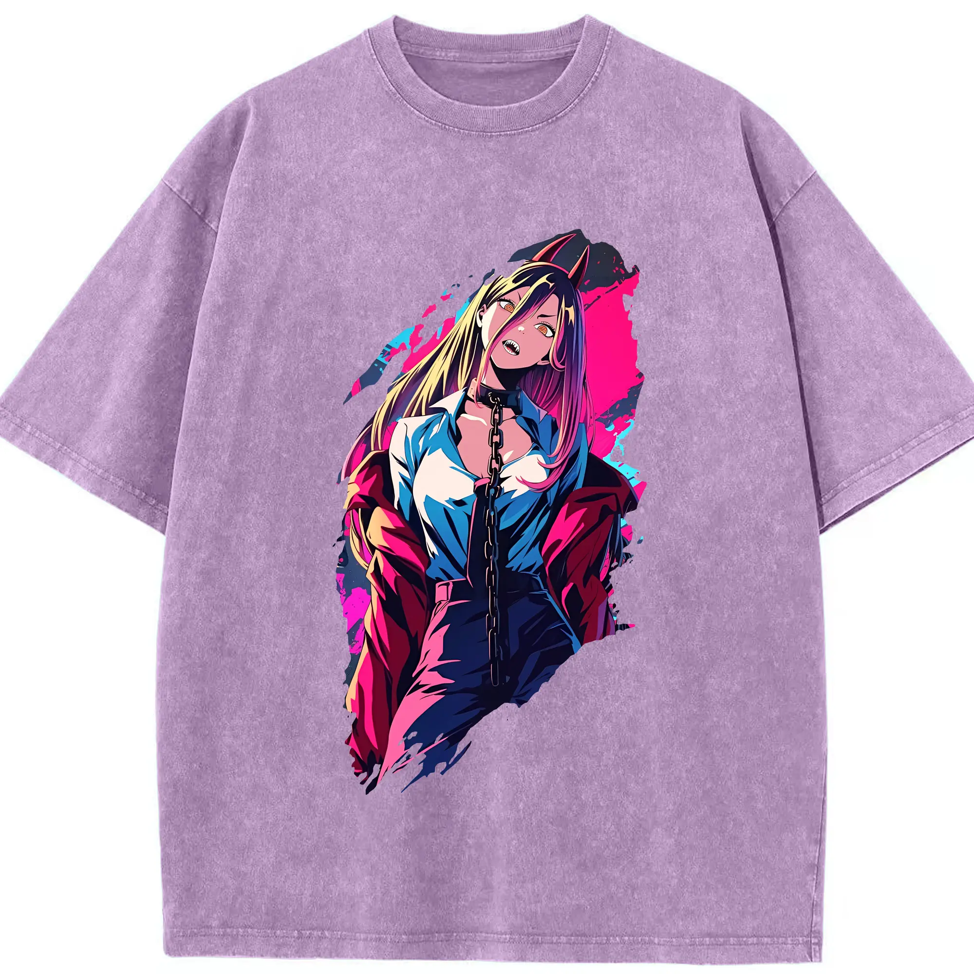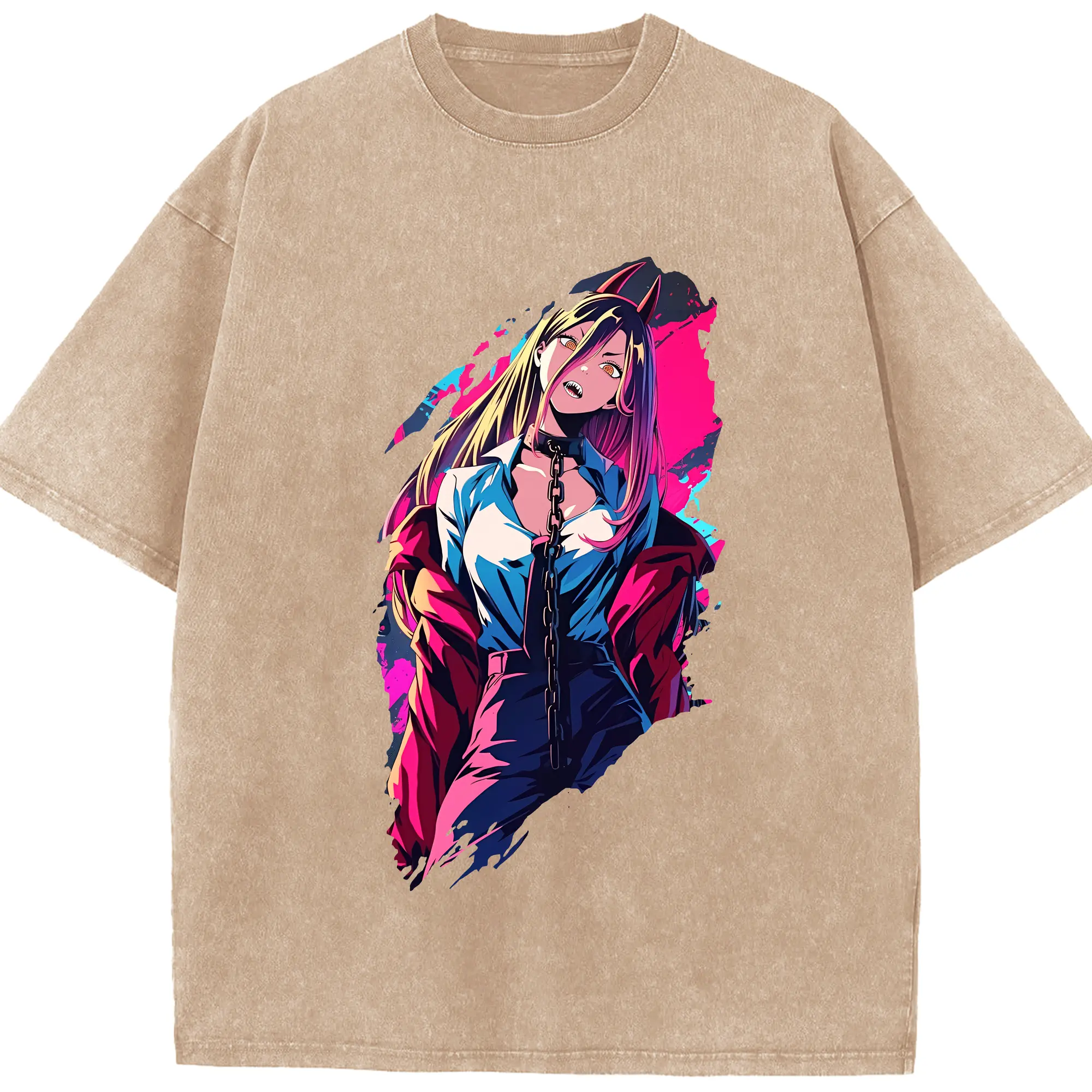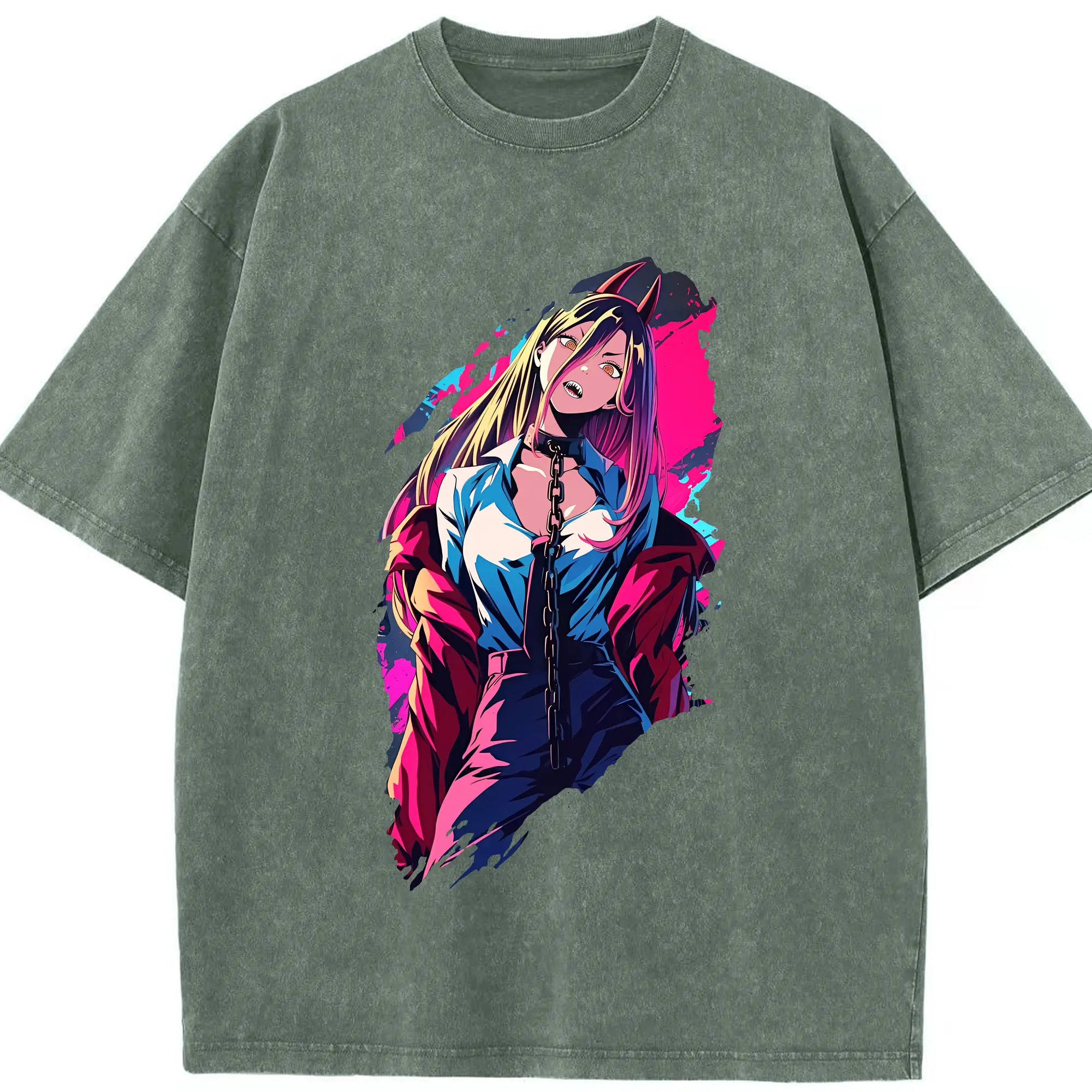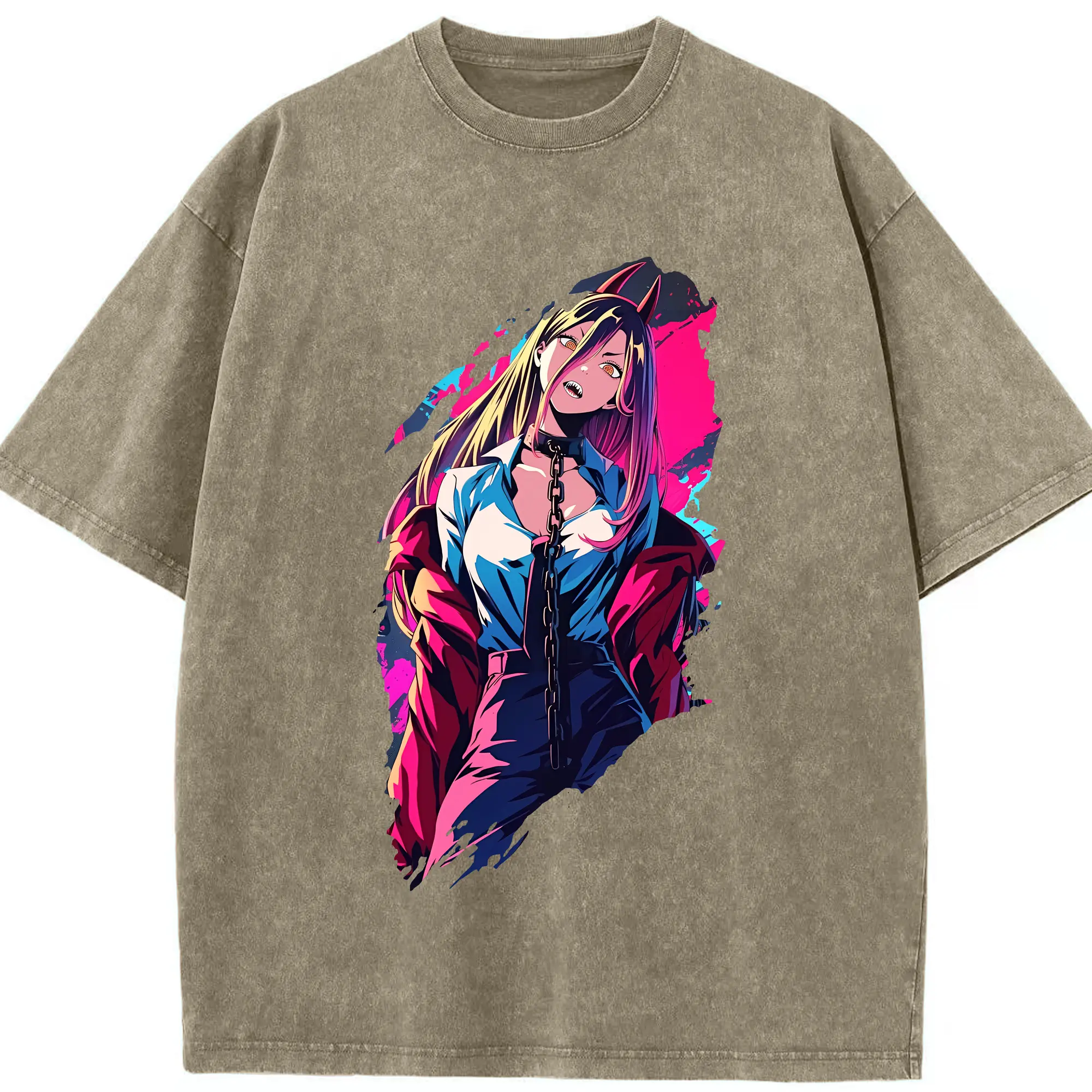 チェンソーマン グッズ,パワー - 綿100% ヴィンテージ風 半袖Tシャツ ・ 背面プリント ・ 柔らか肌触り ・ 通気性 快適 ・ スポーツ カジュアル 外出用