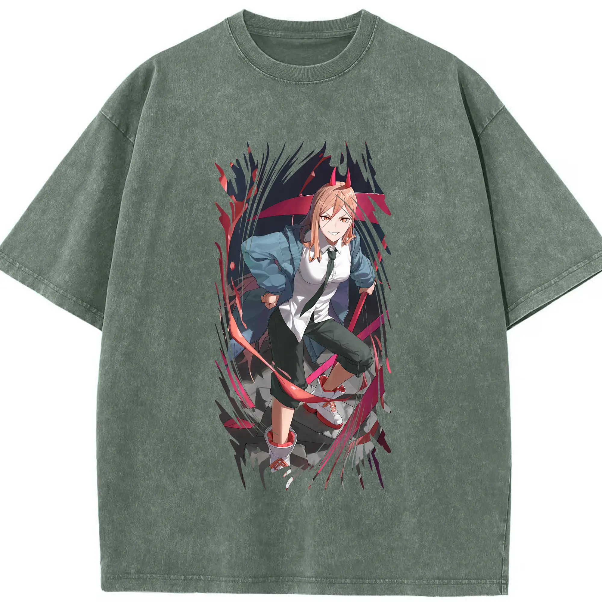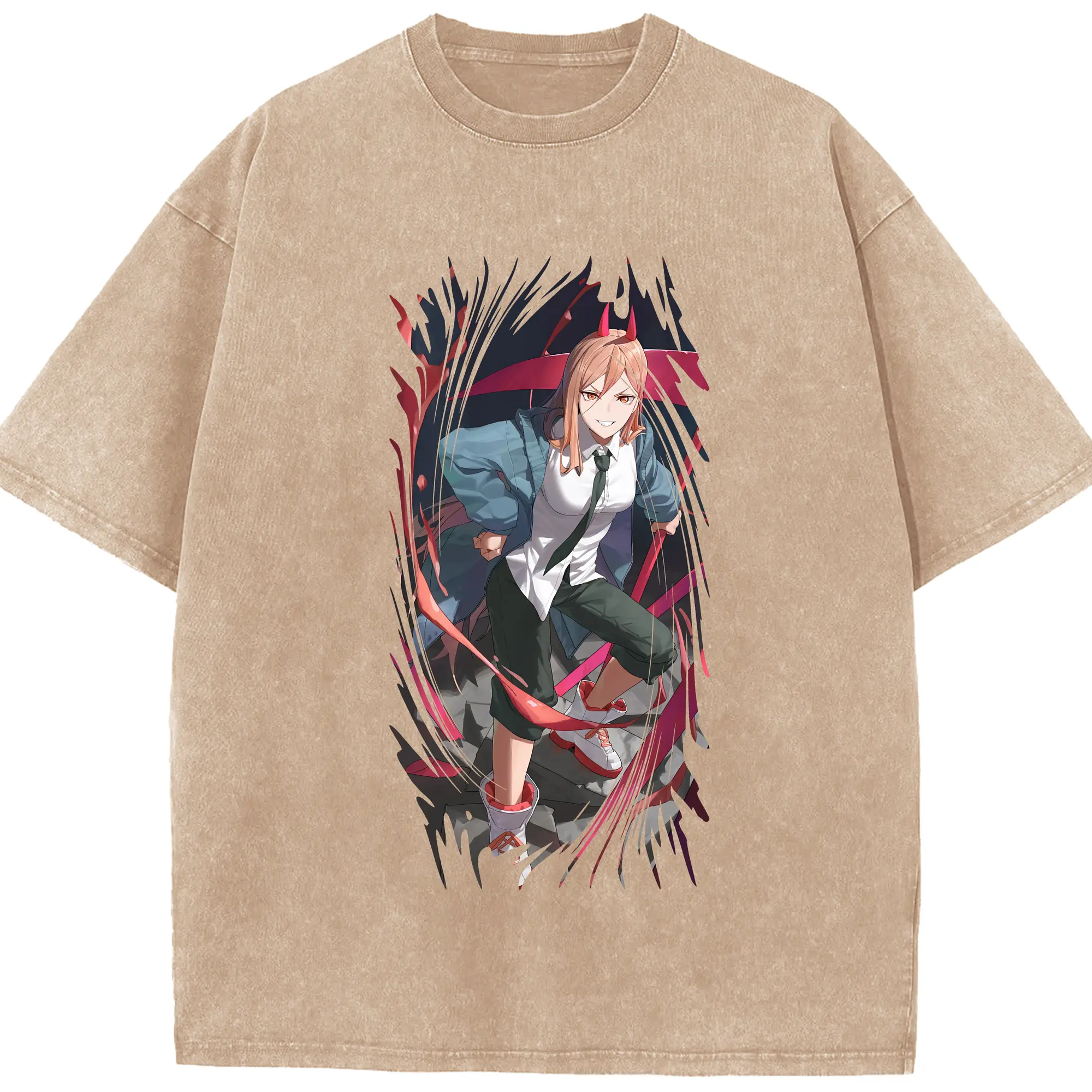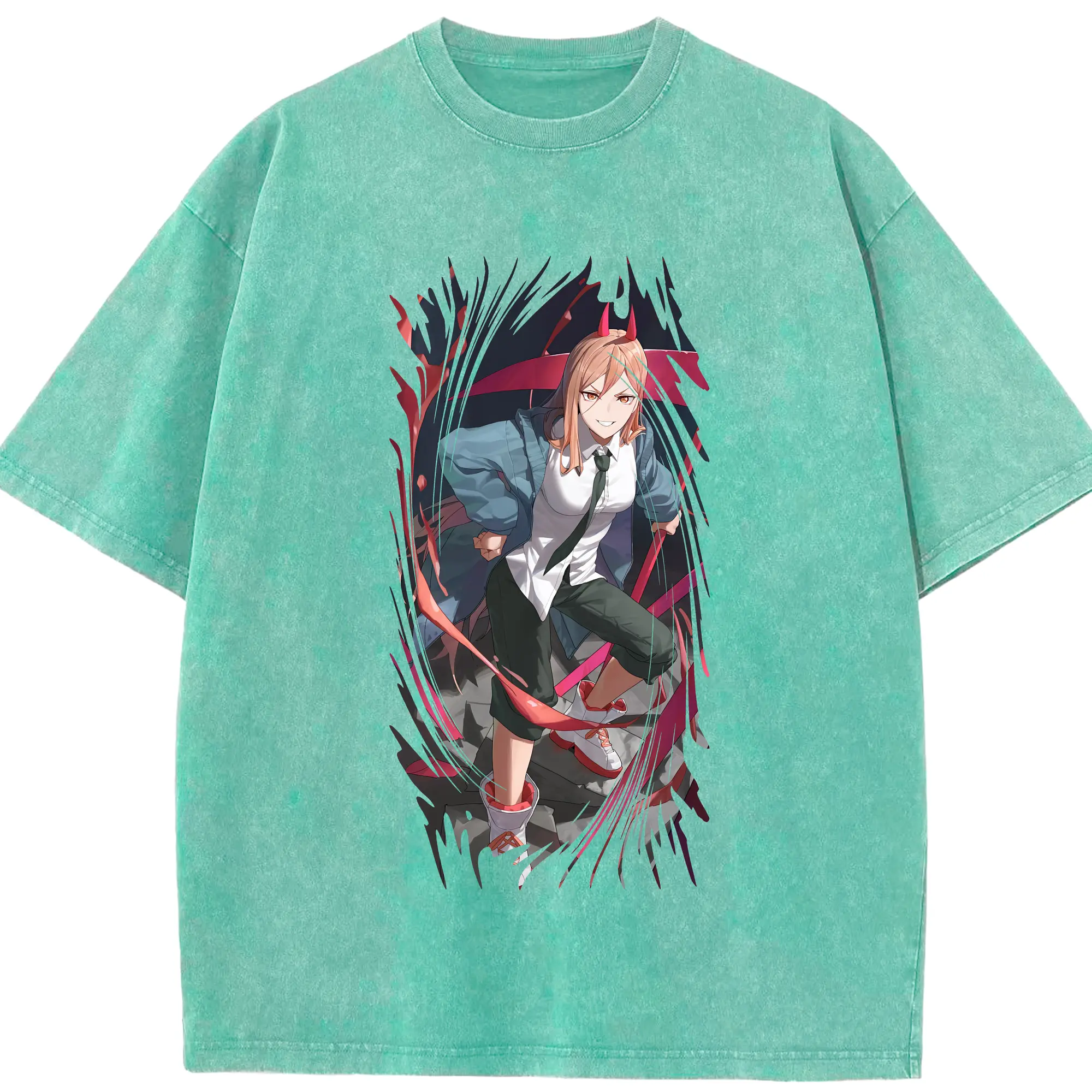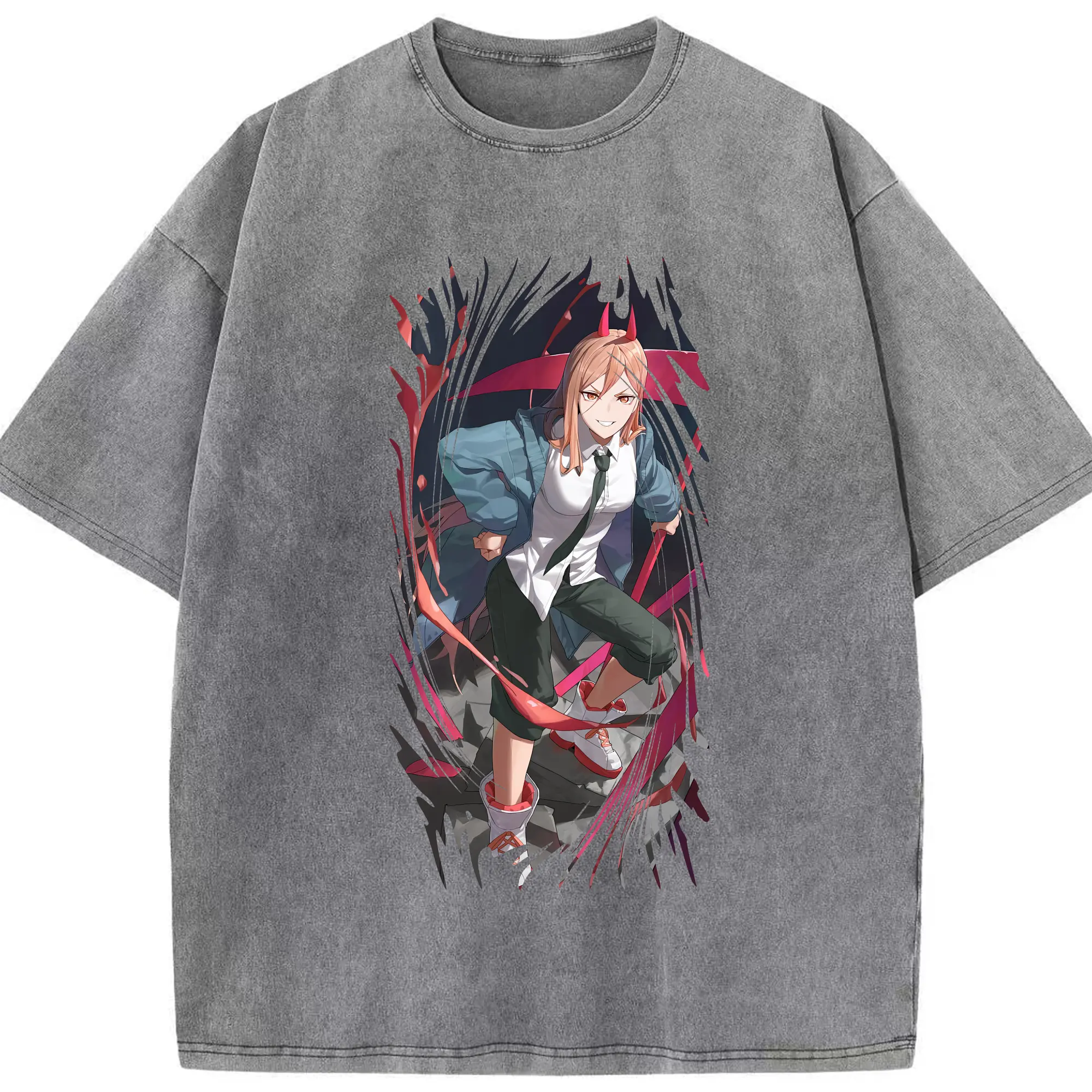 チェンソーマン グッズ,パワー - 綿100% ヴィンテージ風 半袖Tシャツ ・ 背面プリント ・ 柔らか肌触り ・ 通気性 快適 ・ スポーツ カジュアル 外出用