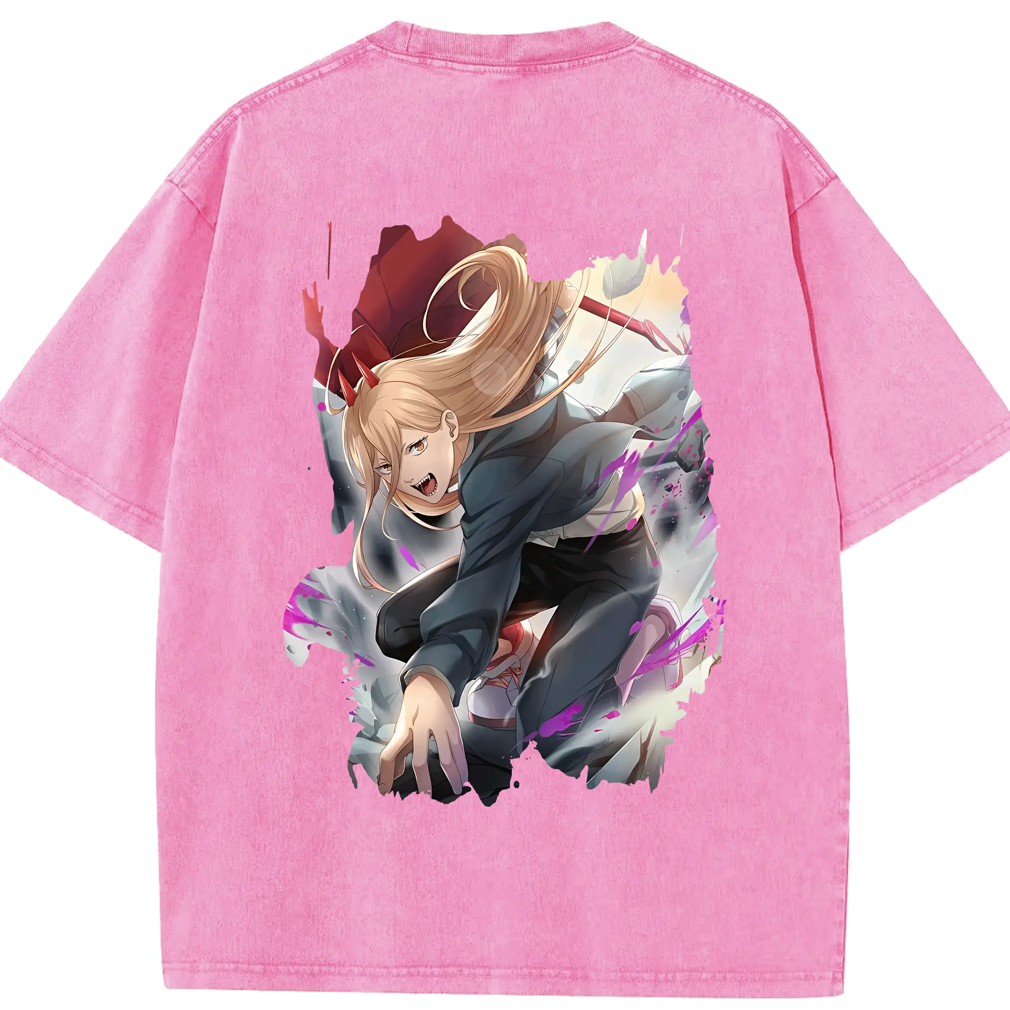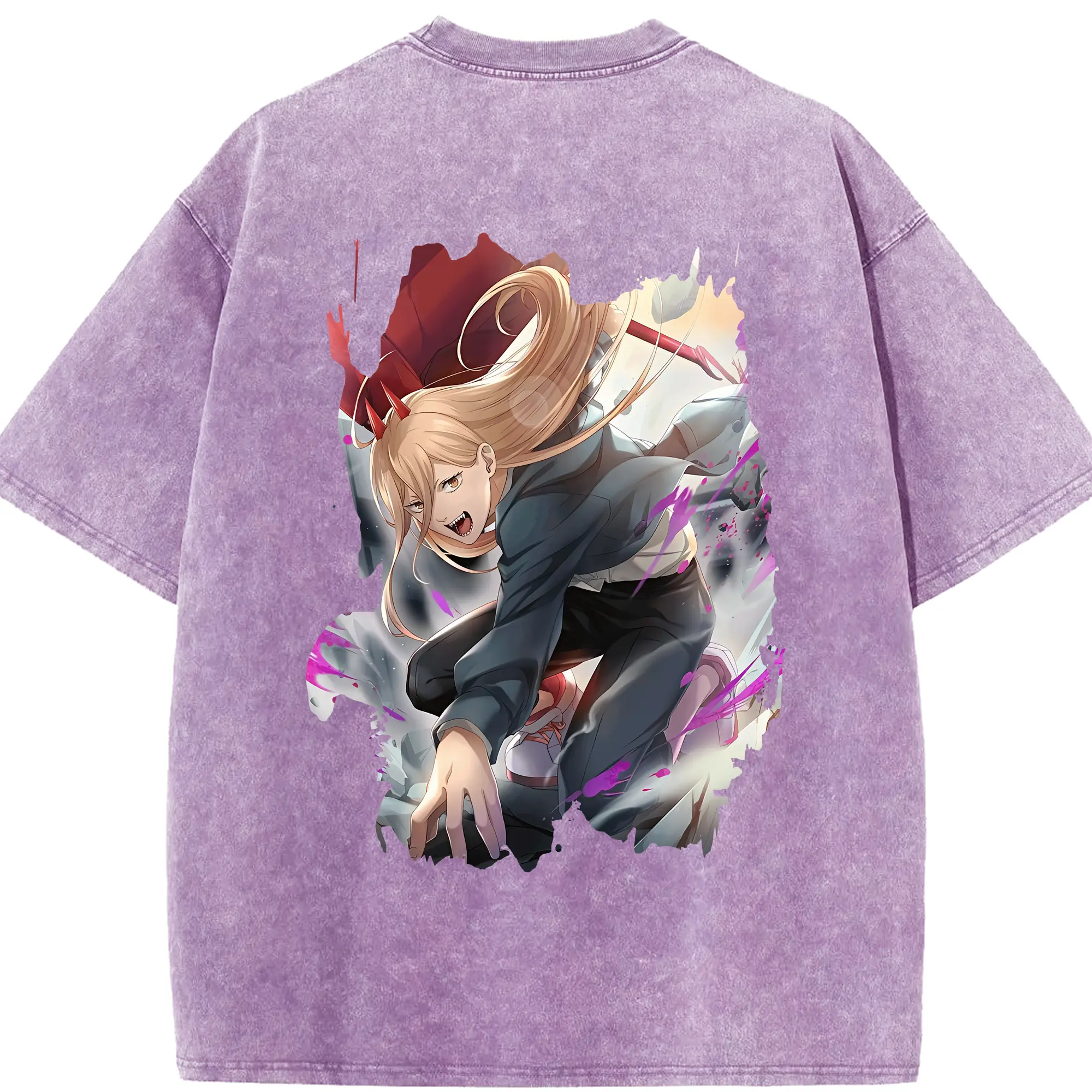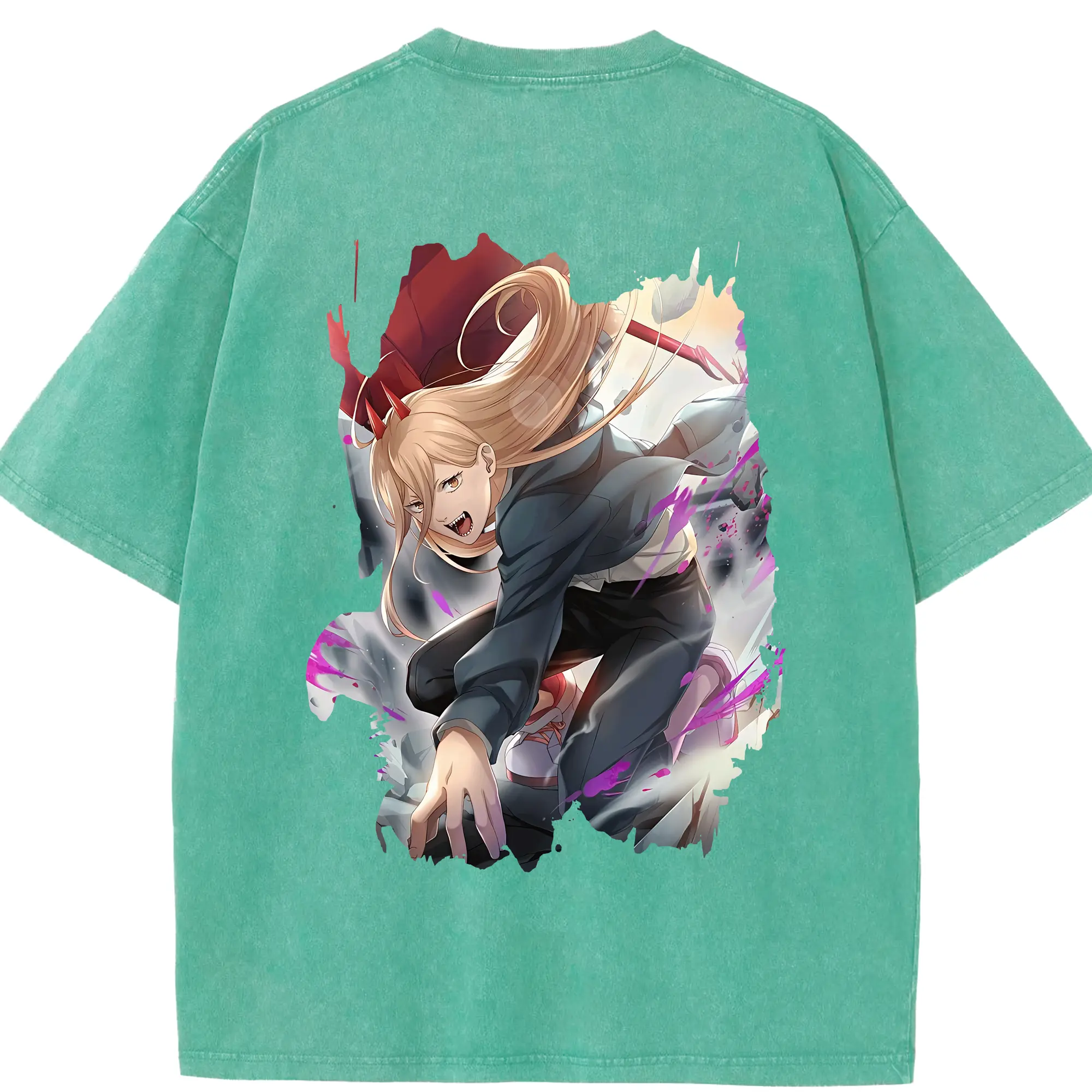 チェンソーマン グッズ,パワー - 綿100% ヴィンテージ風 半袖Tシャツ ・ フロントプリント ・ 柔らか肌触り ・ 通気性 快適 ・ スポーツ カジュアル 外出用