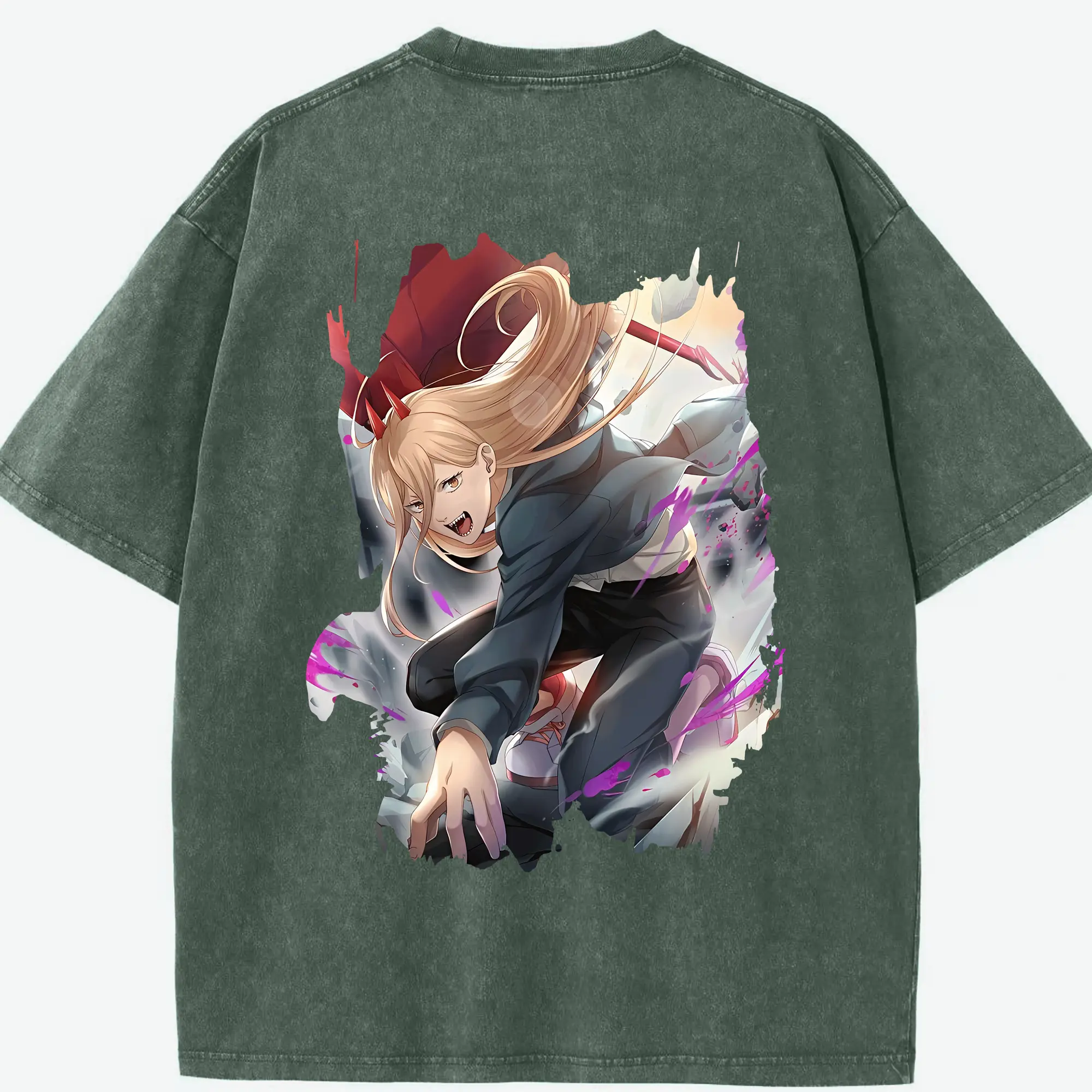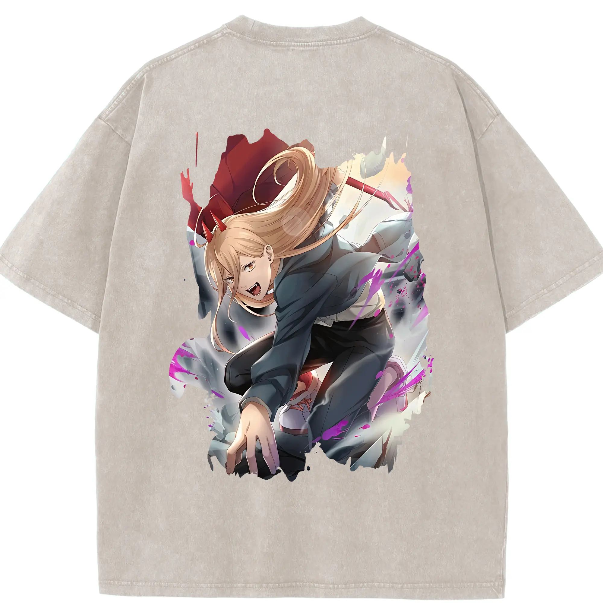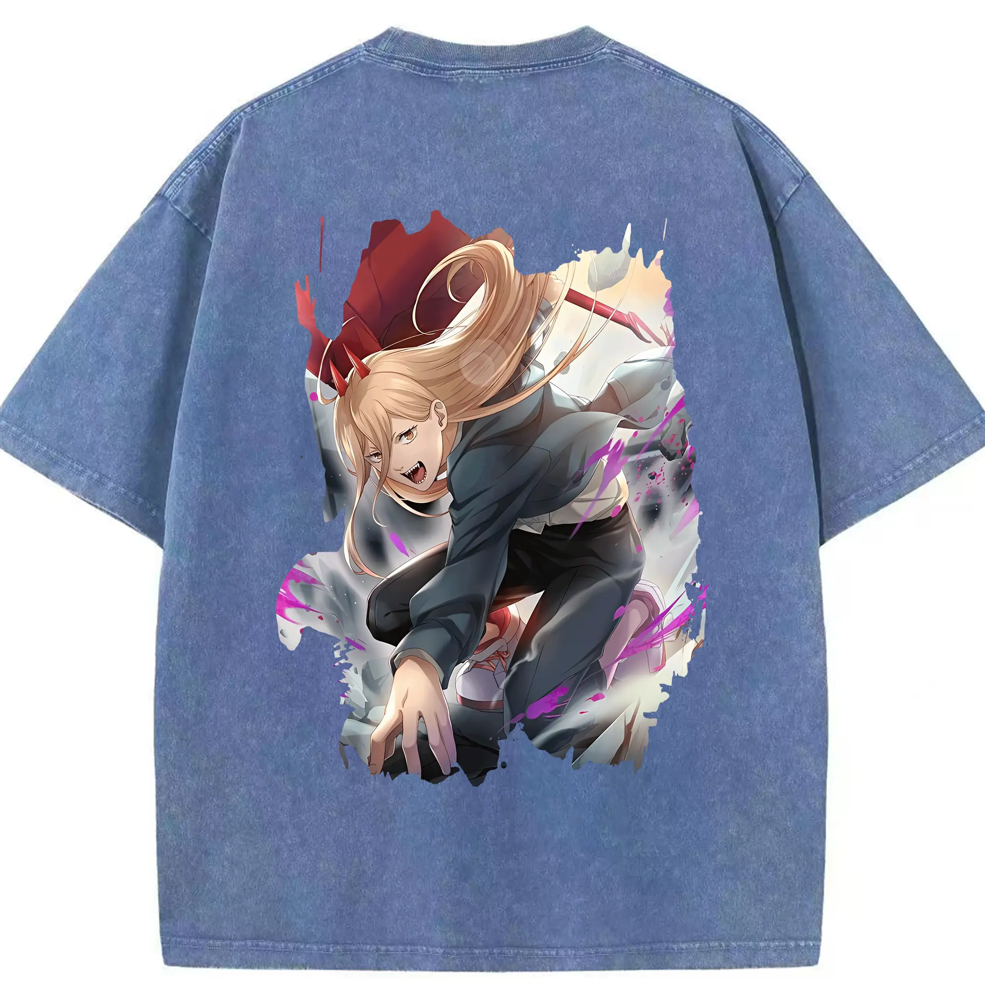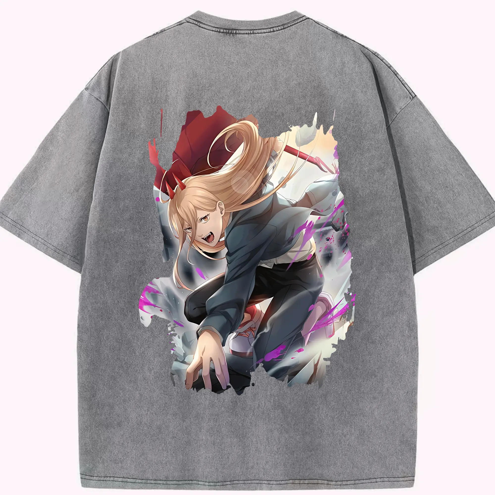 チェンソーマン グッズ,パワー - 綿100% ヴィンテージ風 半袖Tシャツ ・ フロントプリント ・ 柔らか肌触り ・ 通気性 快適 ・ スポーツ カジュアル 外出用